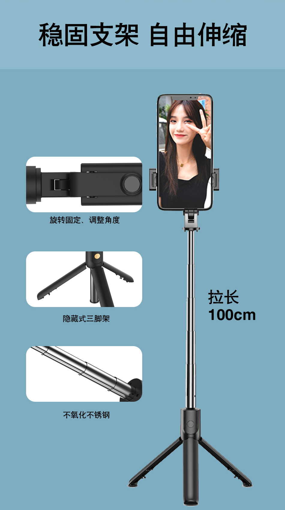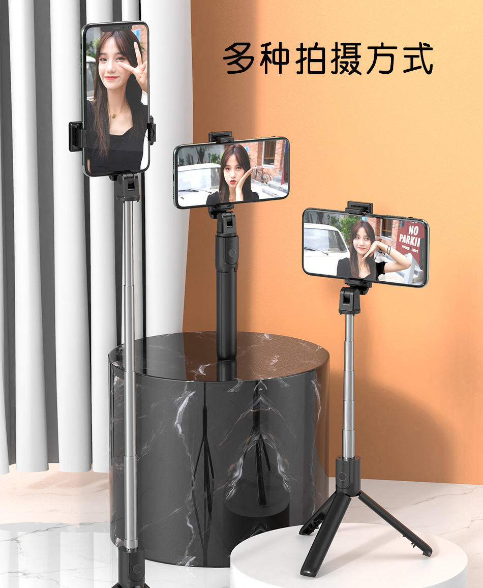 야외 블루투스 셀카봉 휴대폰 리모컨 삼각대 휴대용 일체형 라이브 방송 사진 촬영 스탠드 범용 보조 조명