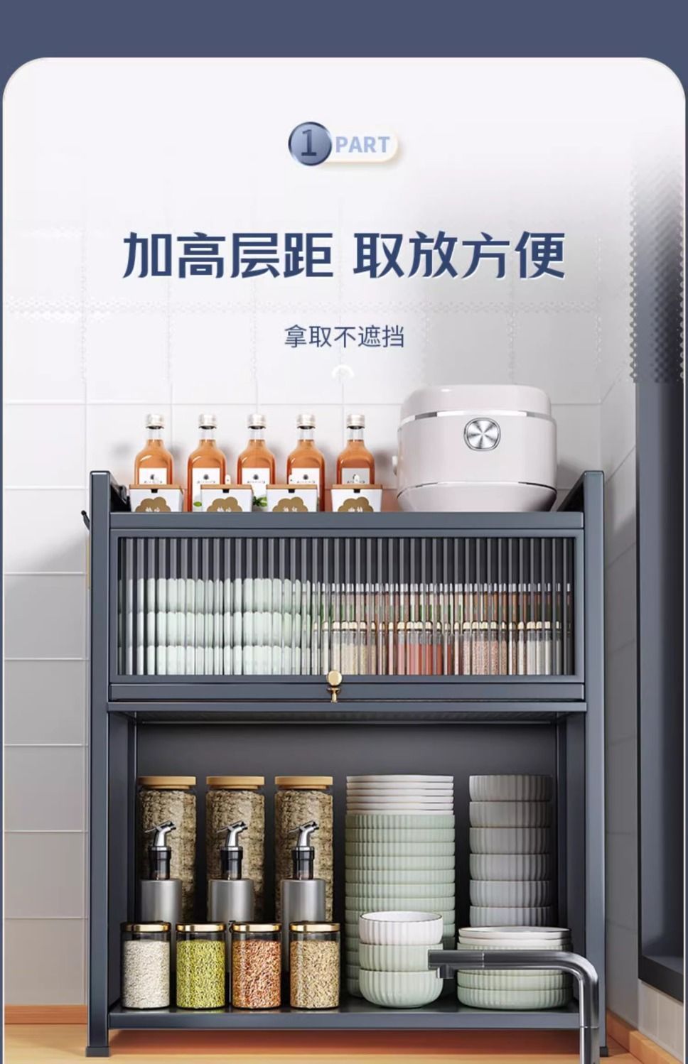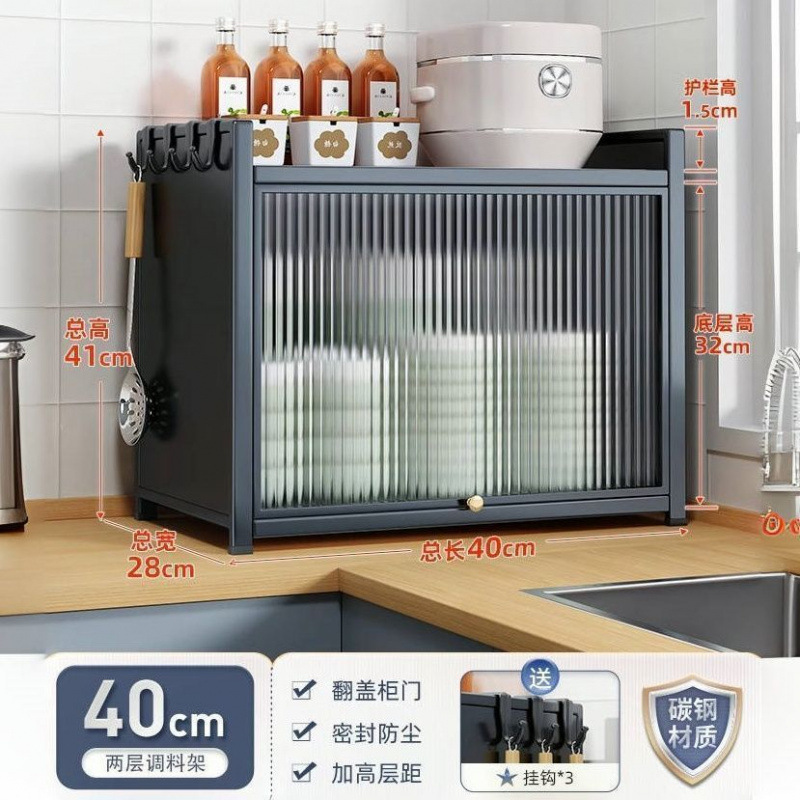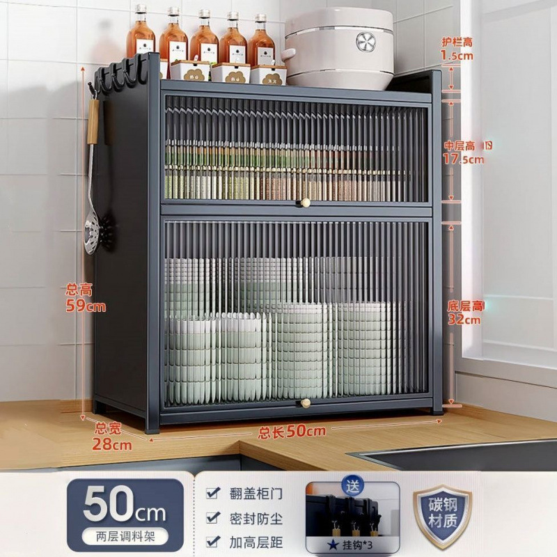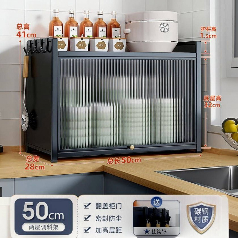 새로운 주방 보관 랙 다기능 조미료 간단한 보관 랙 가정용 조리대 다층 방진 완전 밀폐형 찬장