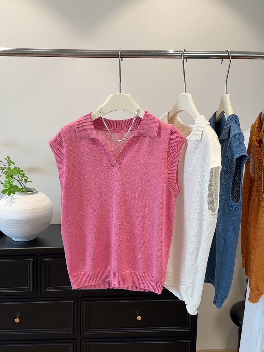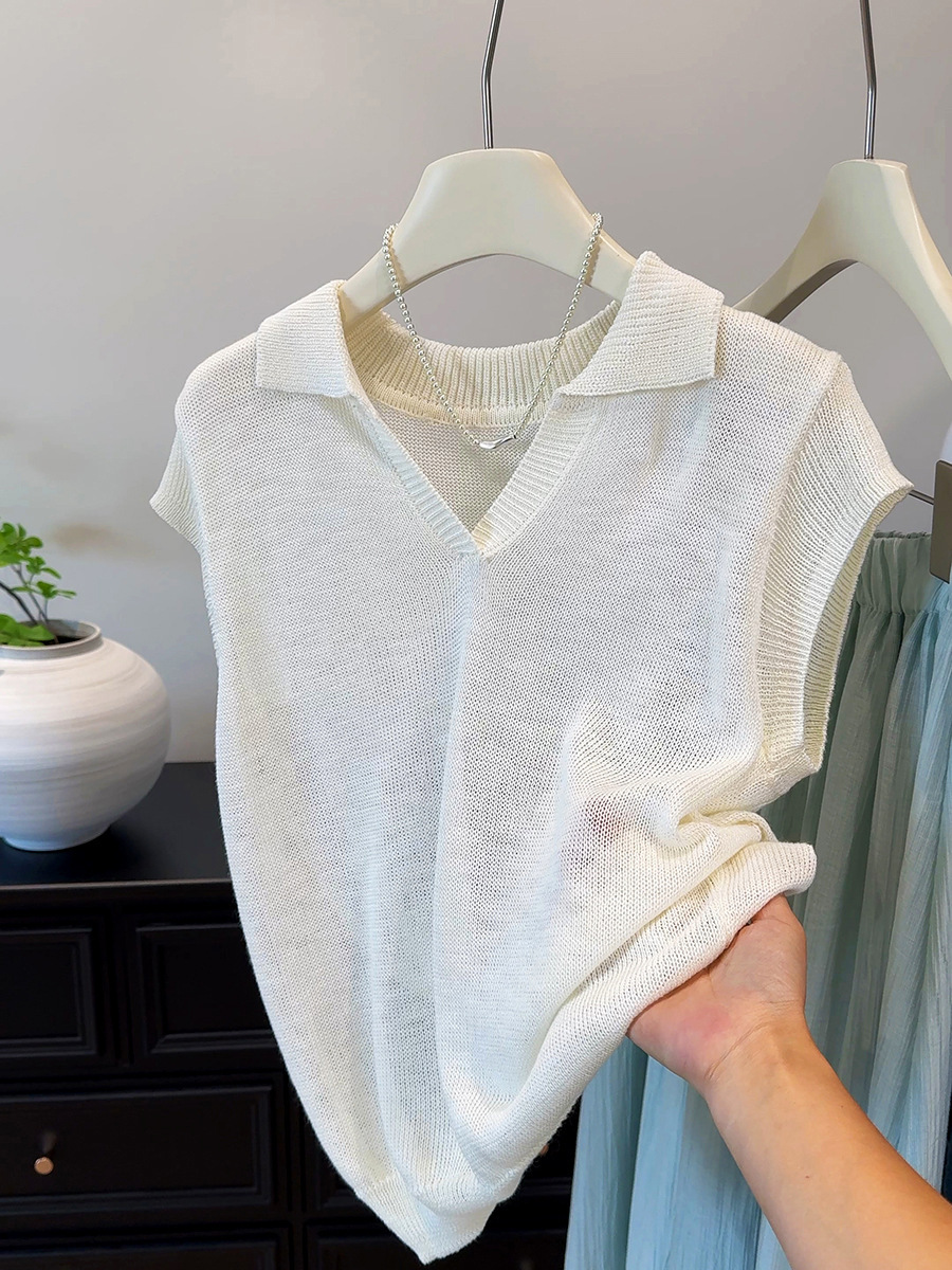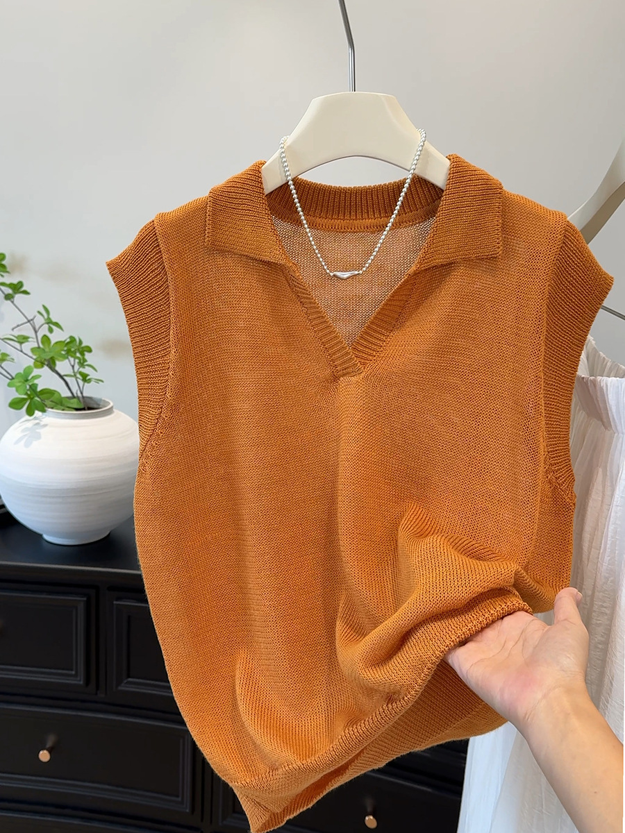 여름 독특하고 매우 멋진 루즈하고 아름다운 니트 얇은 탑 하이 엔드 디자인 오렌지 플라잉 반팔 티셔츠 여성용스토어 가기