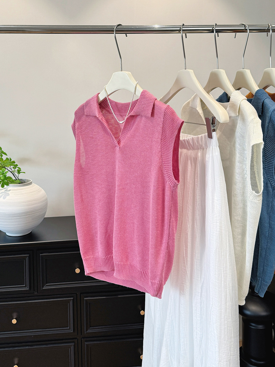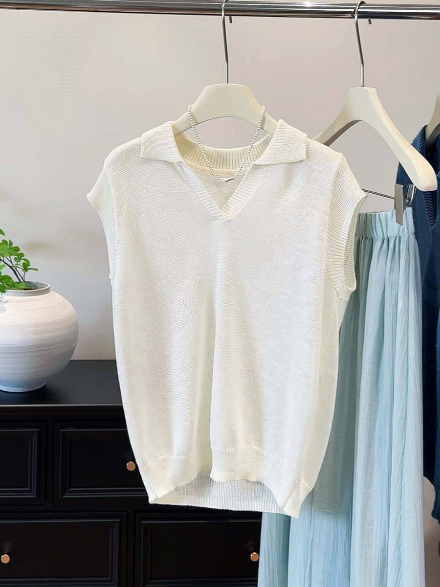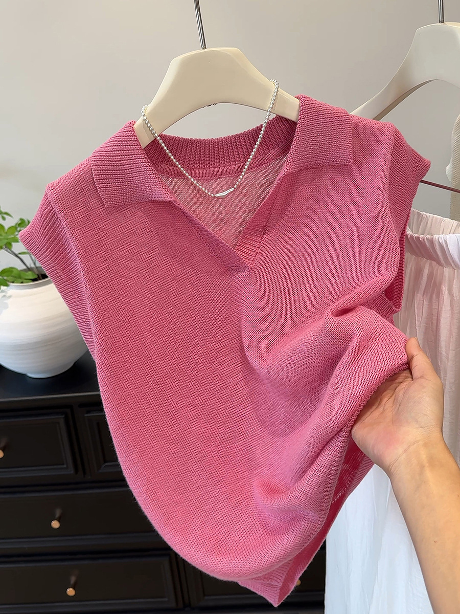 여름 독특하고 매우 멋진 루즈하고 아름다운 니트 얇은 탑 하이 엔드 디자인 오렌지 플라잉 반팔 티셔츠 여성용스토어 가기