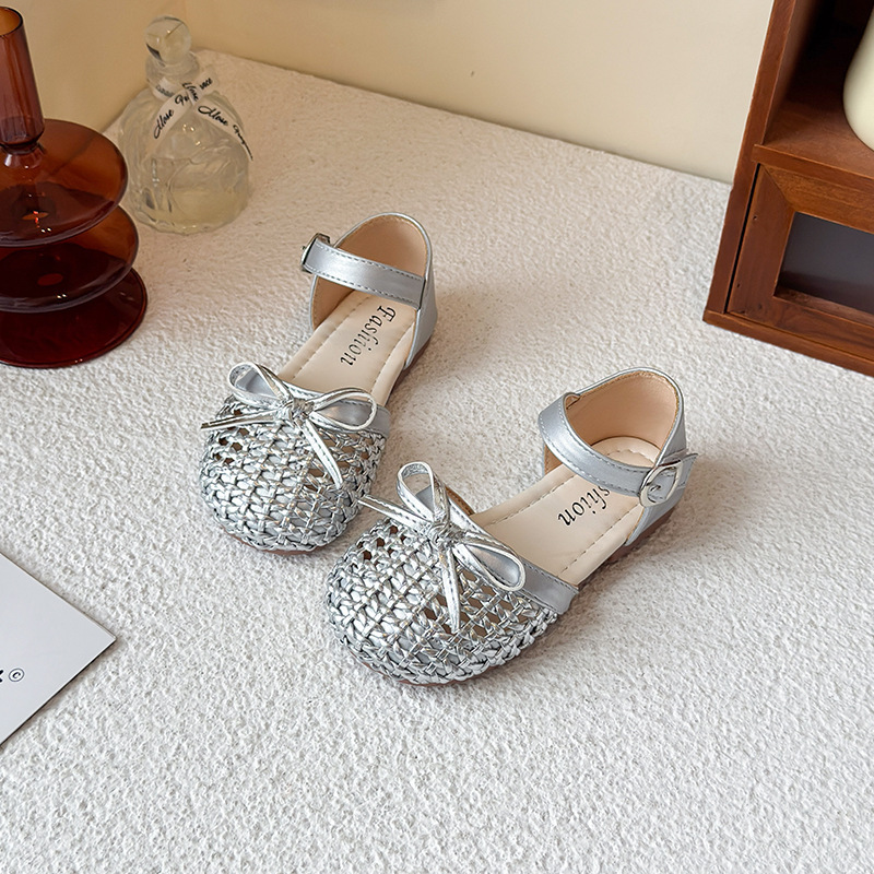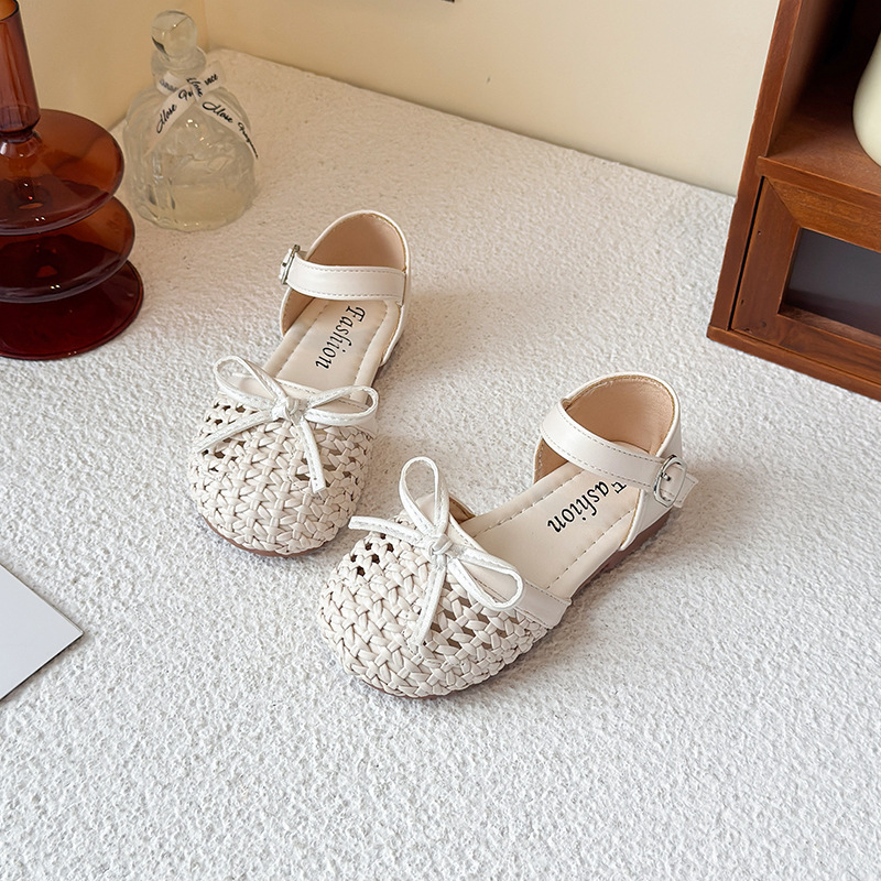 여자 샌들 공주 신발 여름 새로운 Baotou 비치 신발 짠 여자 부드러운 바닥 중공 아기 샌들
