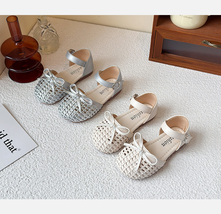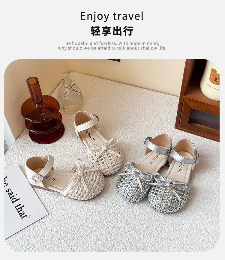 여자 샌들 공주 신발 여름 새로운 Baotou 비치 신발 짠 여자 부드러운 바닥 중공 아기 샌들스토어 가기