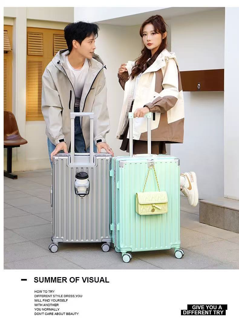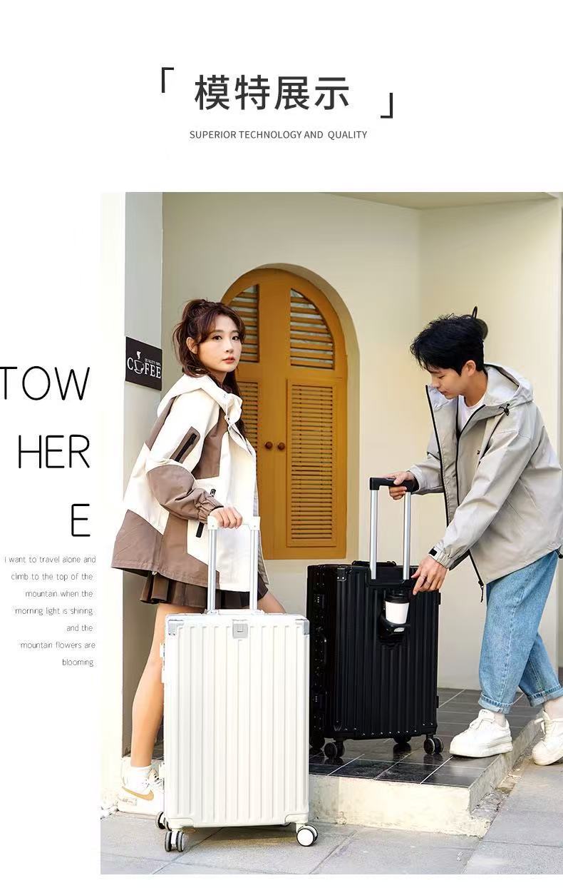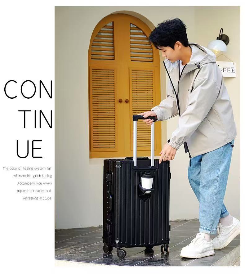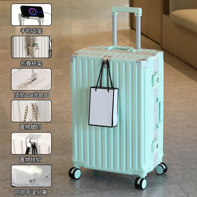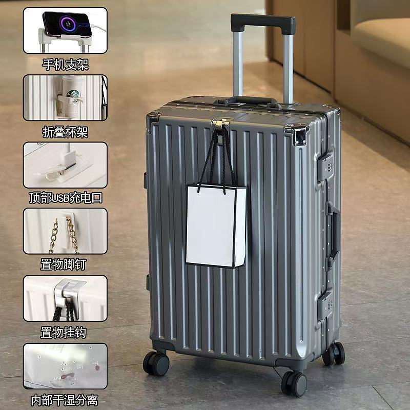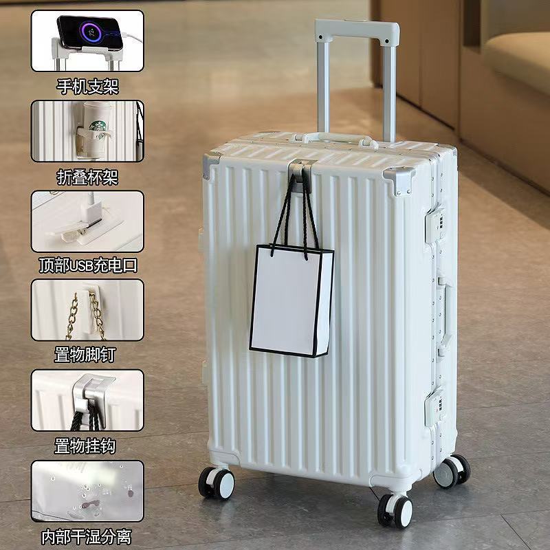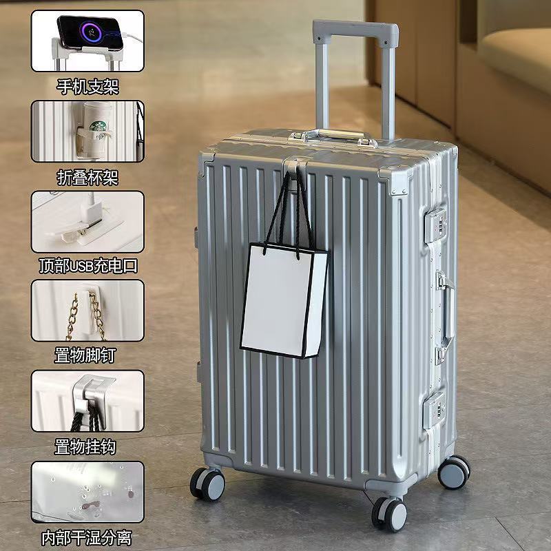 충전 알루미늄 프레임 트롤리 케이스 학생 다기능 가방 여성 후크 가방 컵 홀더 남성 비밀번호 상자스토어 가기
