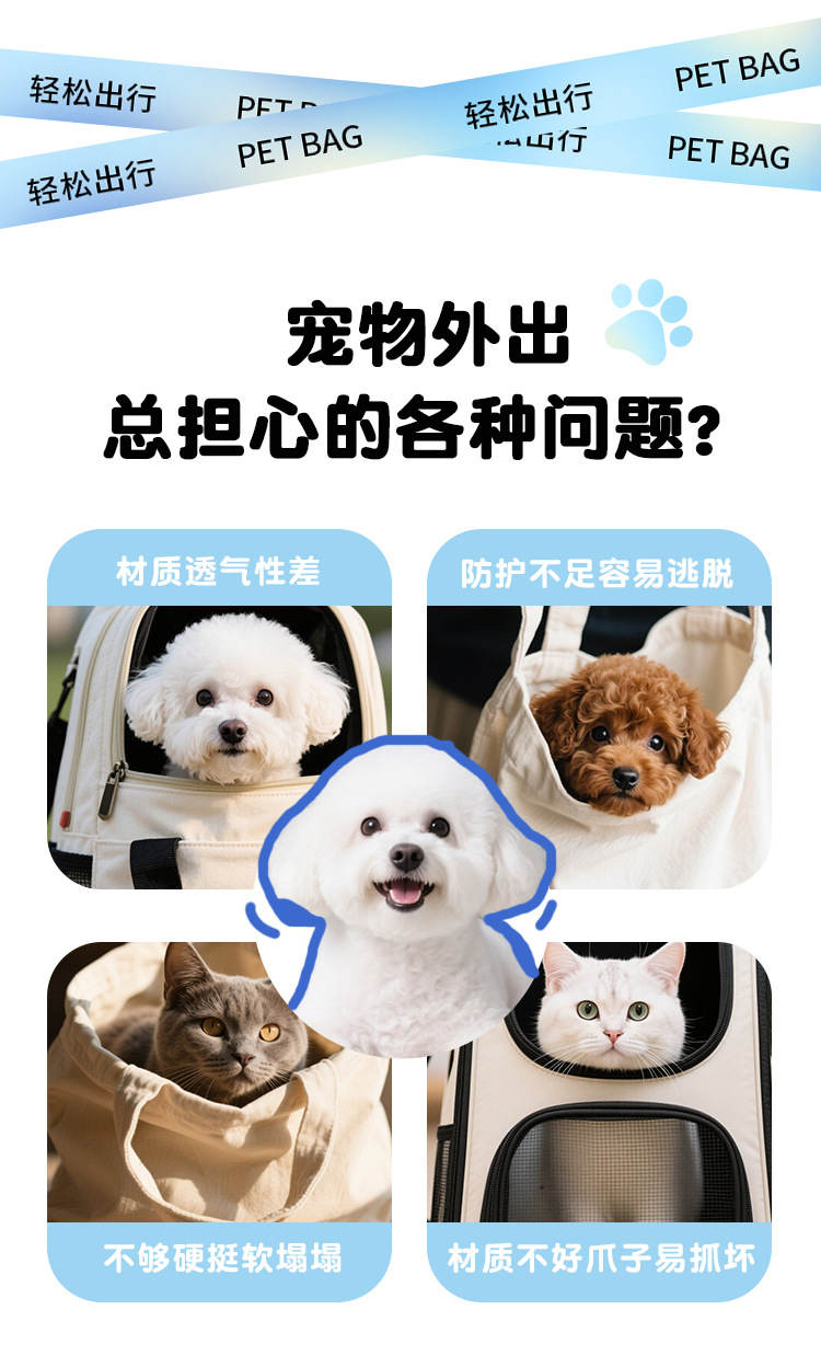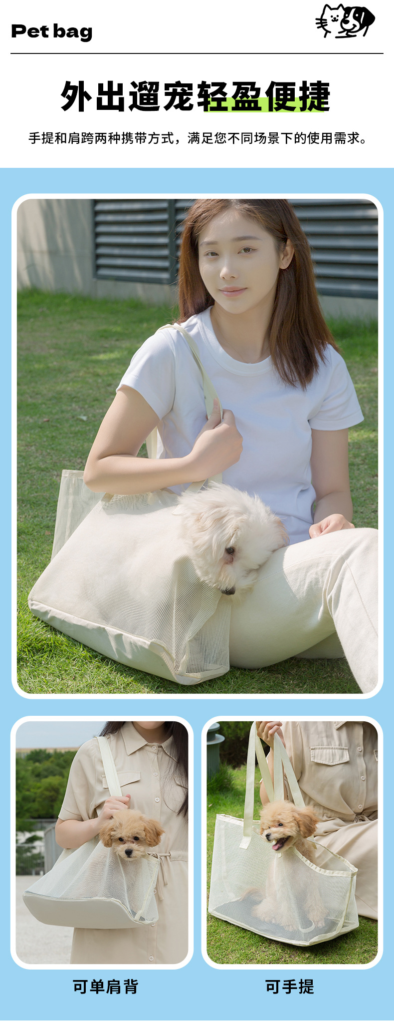 여름 휴대용 애완 동물 가방, 접이식 개 오픈 토트 백, 통기성 애완 동물 어깨 크로스 바디 백, 편안한 고양이 배낭