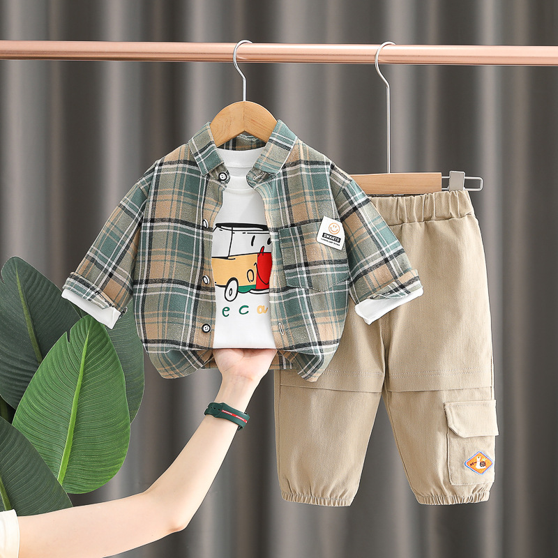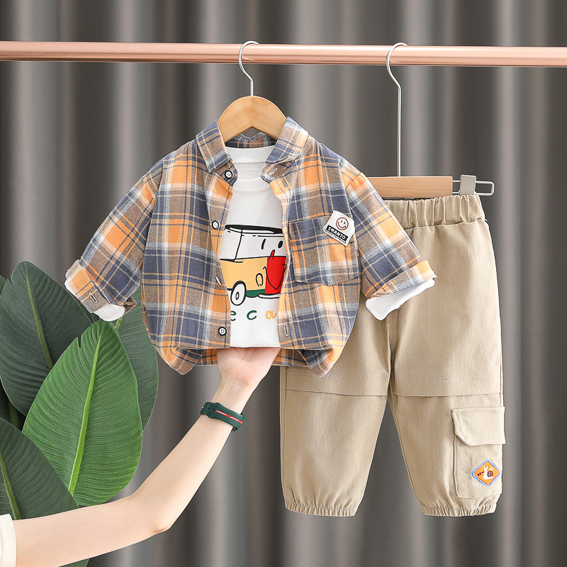 아동 의류 소년 가을 셔츠 정장 2025 새로운 한국어 스타일 아동 가을 긴팔 캐주얼 3 피스 유행 의류스토어 가기