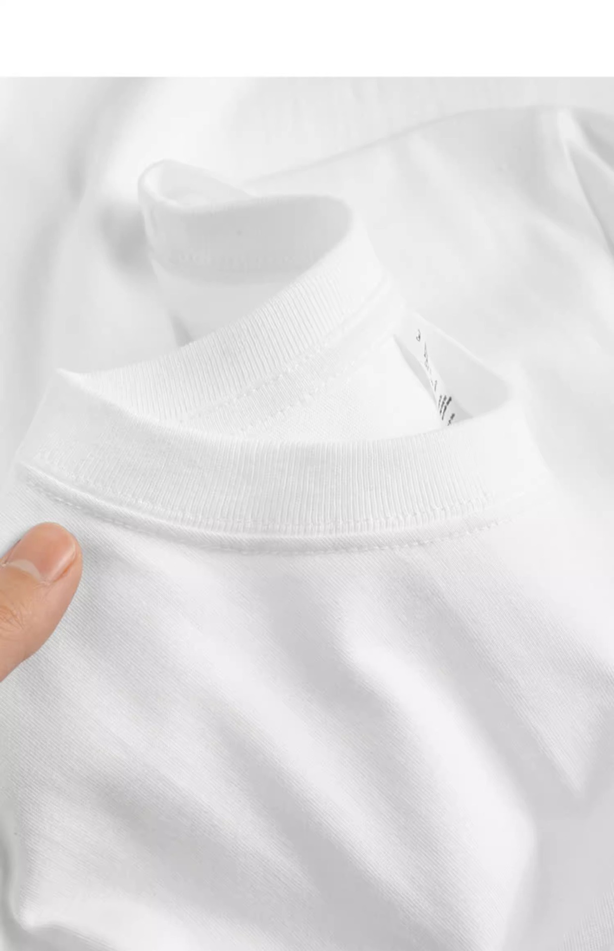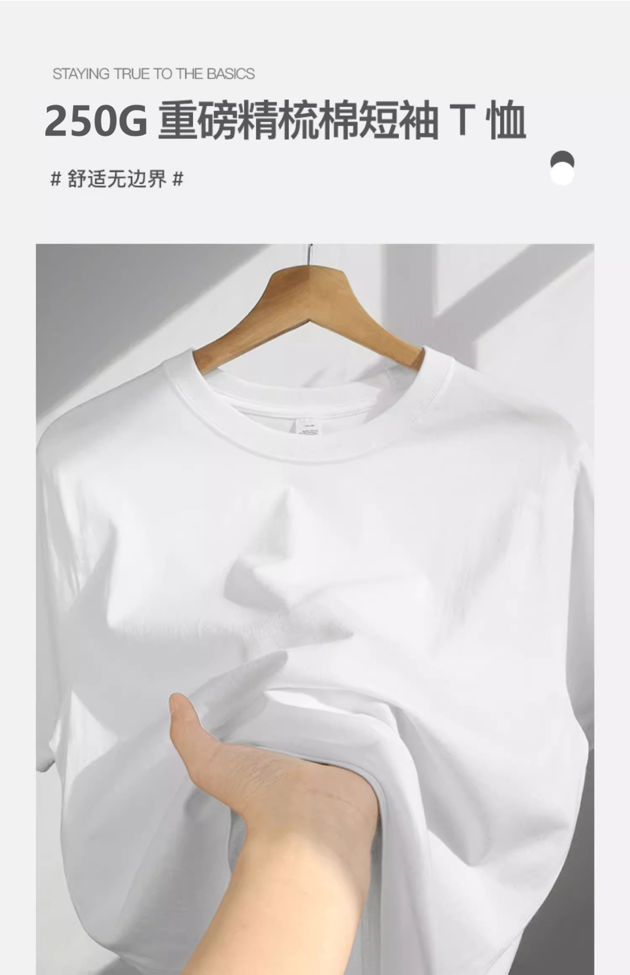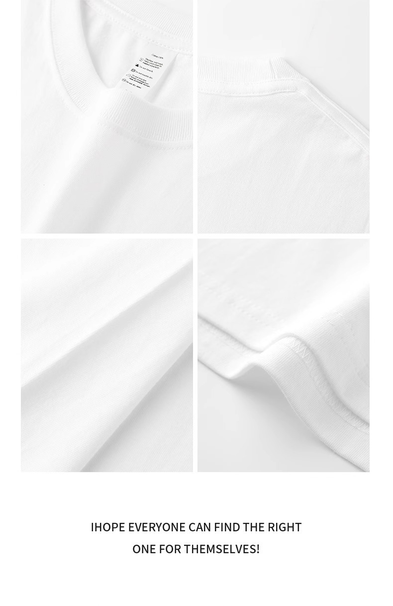 고품질 신장 면 헤비급 250g 순백색 불투명 반팔 티셔츠 남성용 루즈 캐주얼 바닥 셔츠 탑 여성용 여름