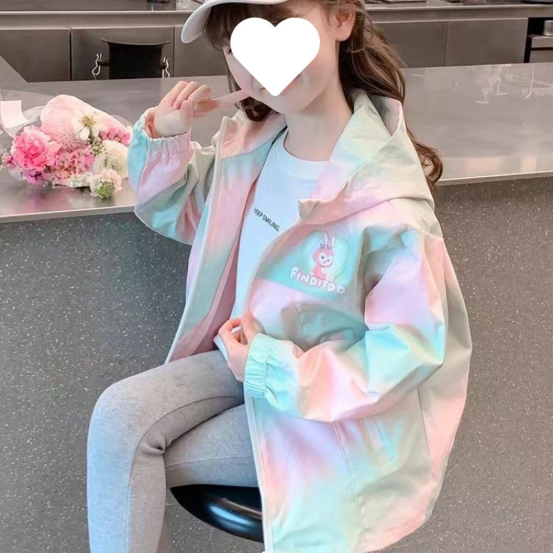 여아 2025 재킷, 패셔너블한 인터넷 연예인 아동용 후드 베이비 봄 스타일, 중대형 아동 가을스토어 가기