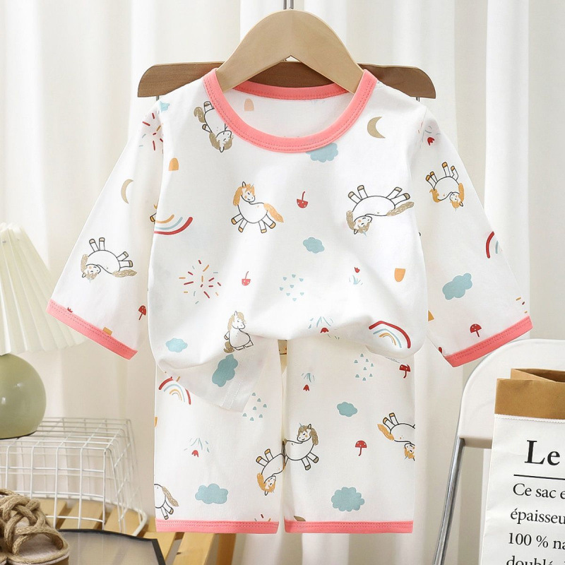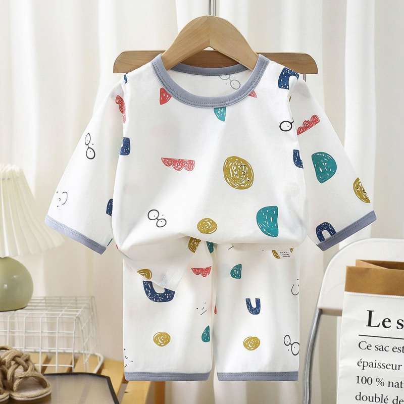 아동용 면 여름 에어컨 의류, 남아용 얼음 느낌의 얇은 7부 소매 양복, 여아용 가정복, 유아용 얇은 잠옷스토어 가기