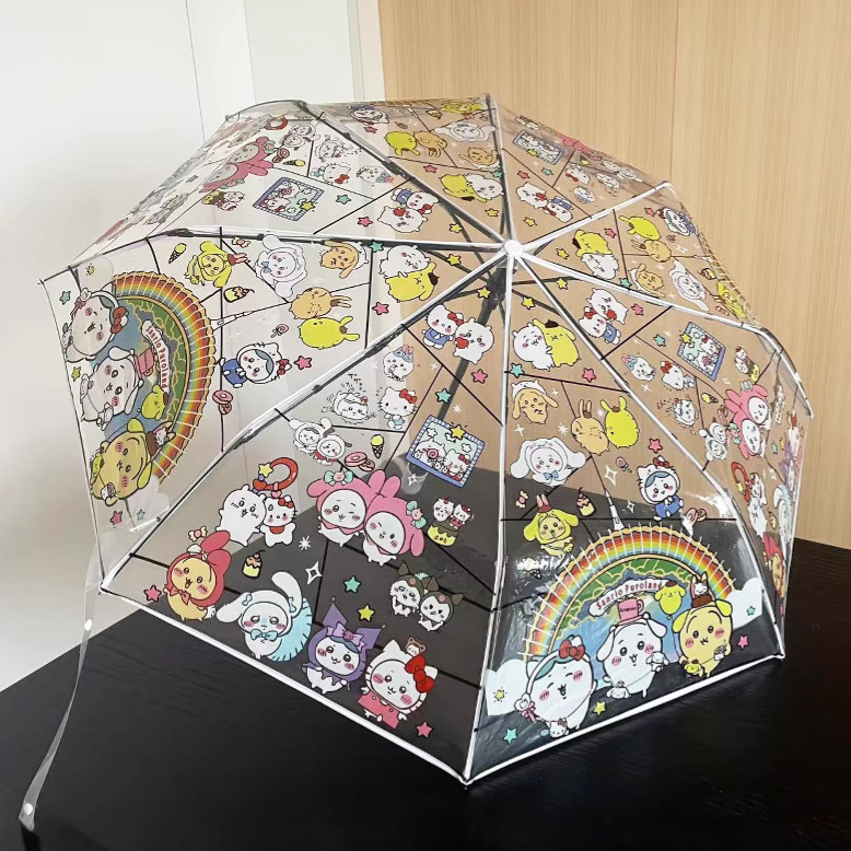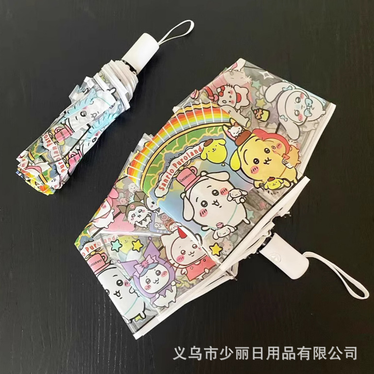 치이카와 투명 우산 고가치 만화 접이식 Chiikawa 어린이 인터넷 연예인 자동 우산 도매