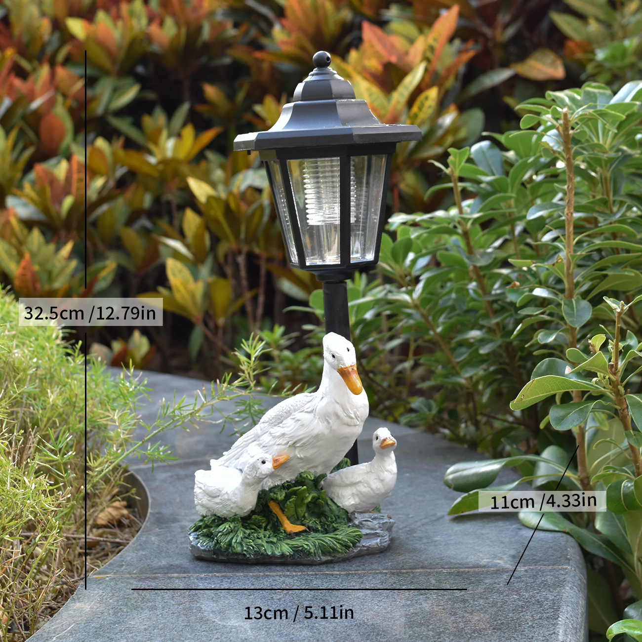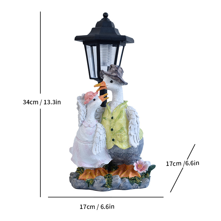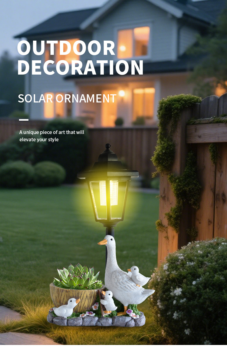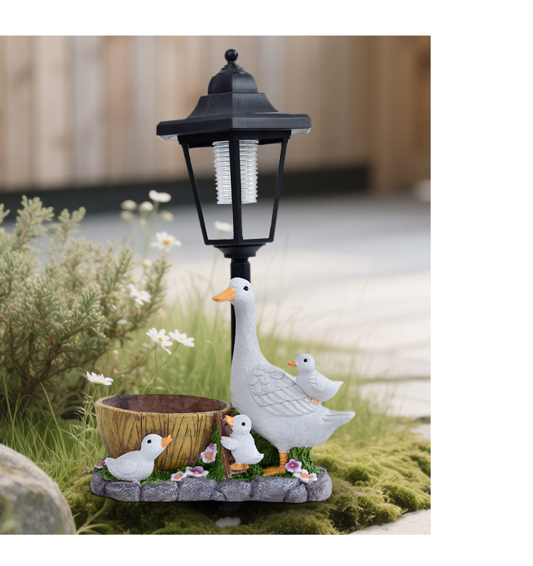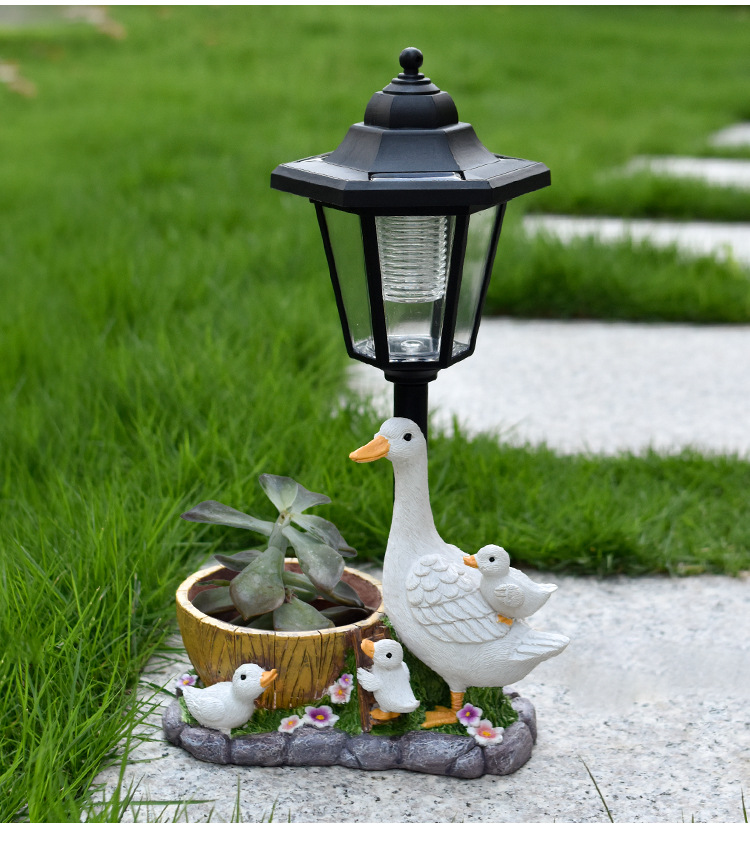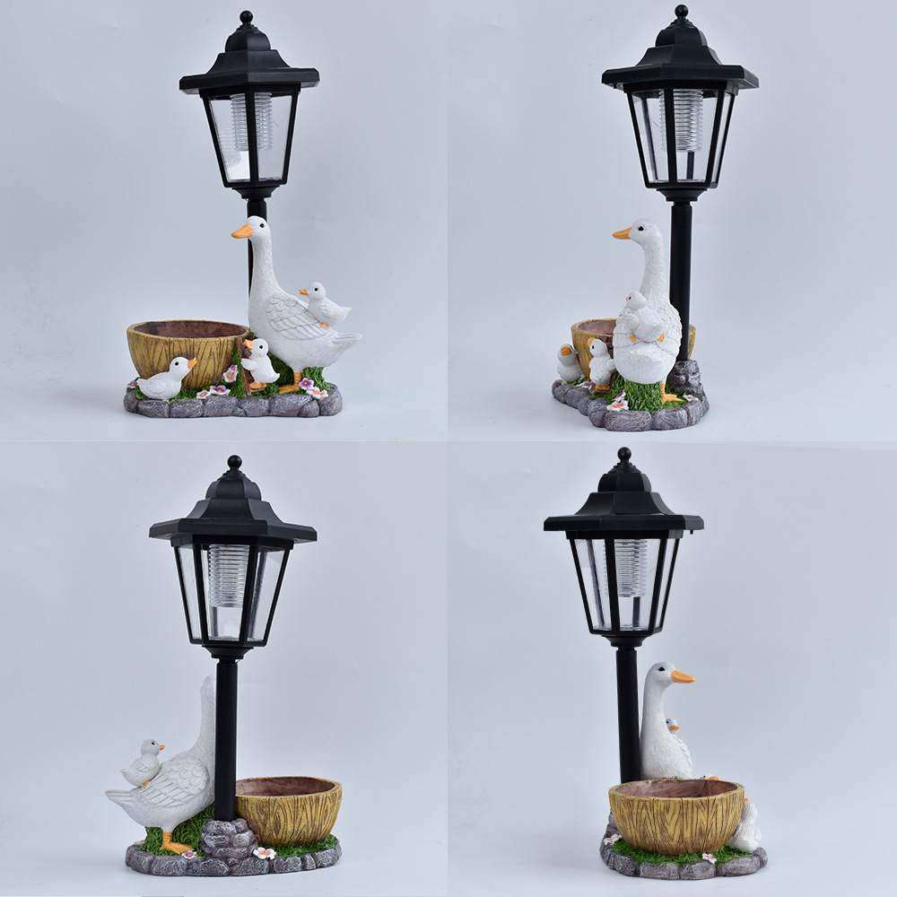 국경을 넘는 레진 화분 오리 조각상 태양광 야외 조명 장식품 오리 조각 조명 정원 장식 야간 조명
