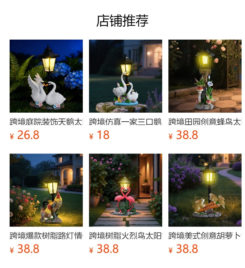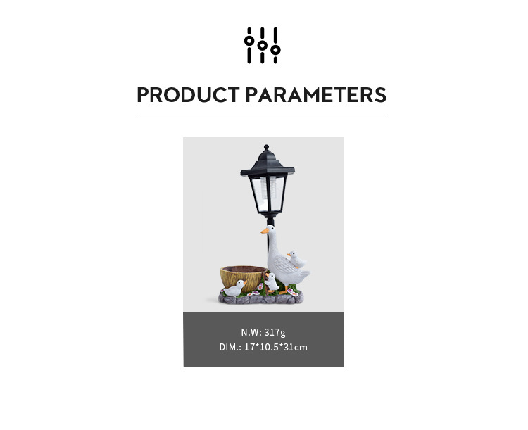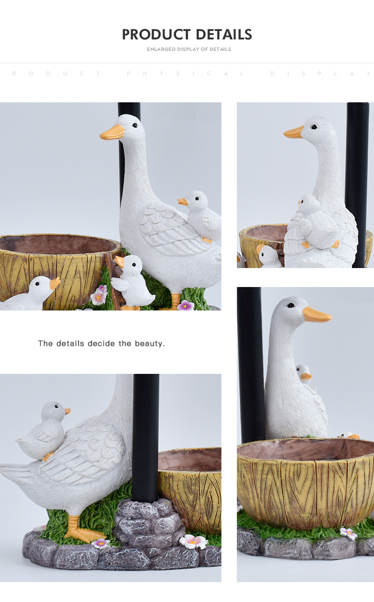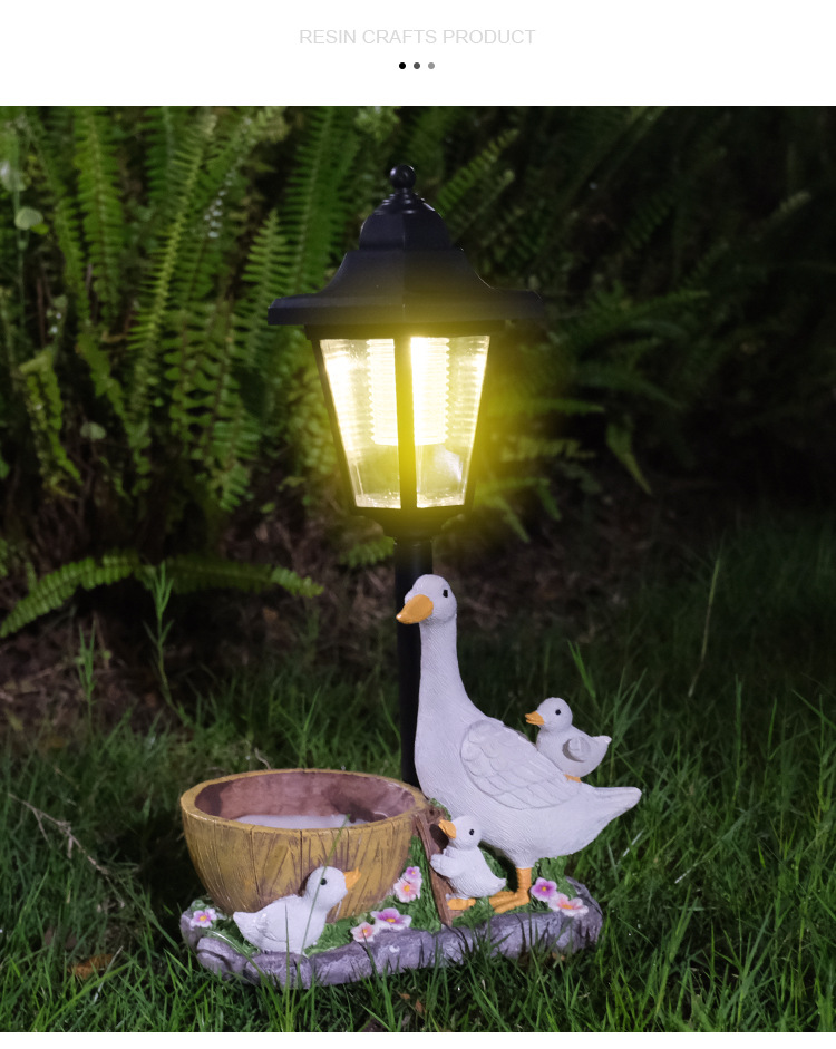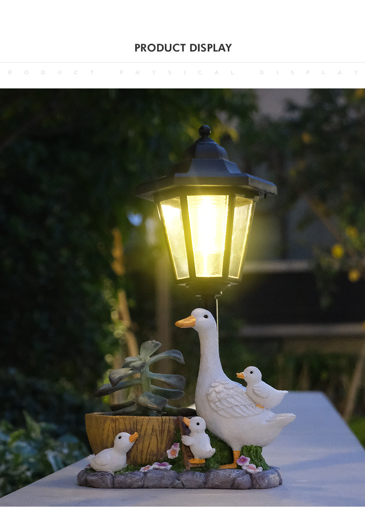국경을 넘는 레진 화분 오리 조각상 태양광 야외 조명 장식품 오리 조각 조명 정원 장식 야간 조명스토어 가기