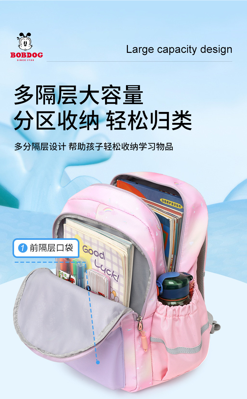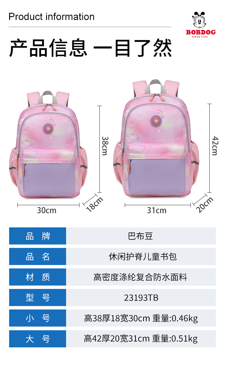 Babu Dou의 새로운 어린이 책가방 초등학생 1, 2, 3~6학년 소녀 귀여운 대용량 배낭스토어 가기