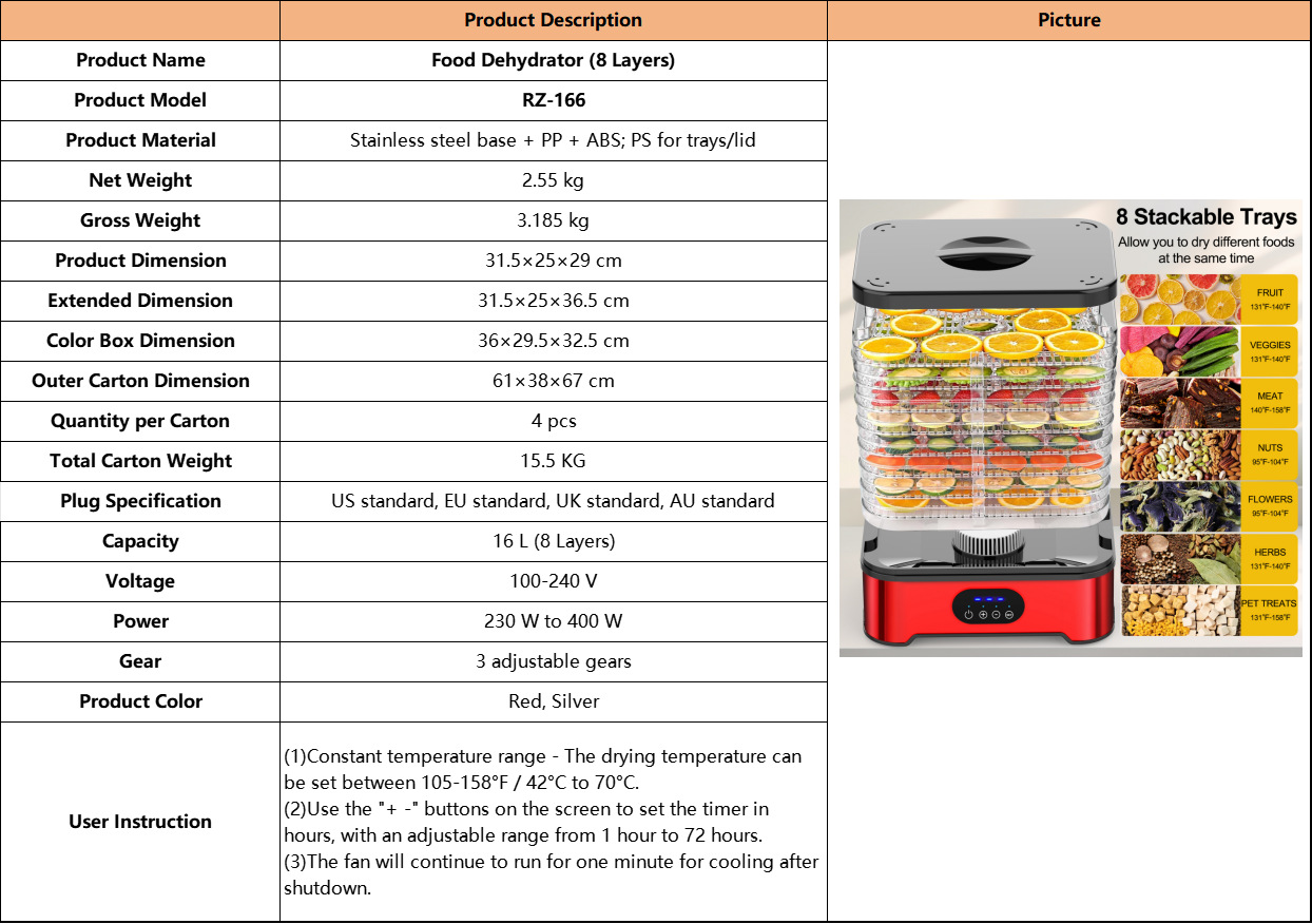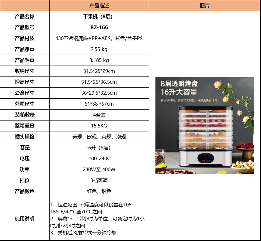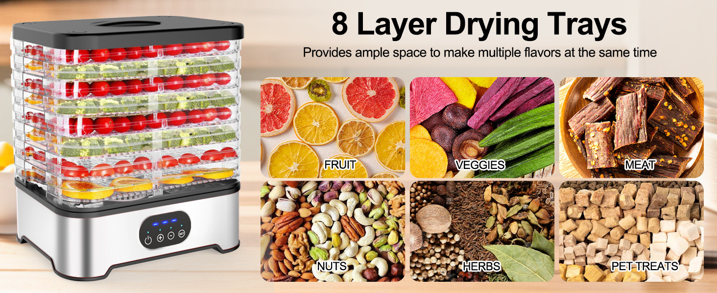 26년만에 새로 출시된 국경 간 식품 탈수기, 가정용 8단 대용량 지능형 식품 건조기, 건과일 제조기