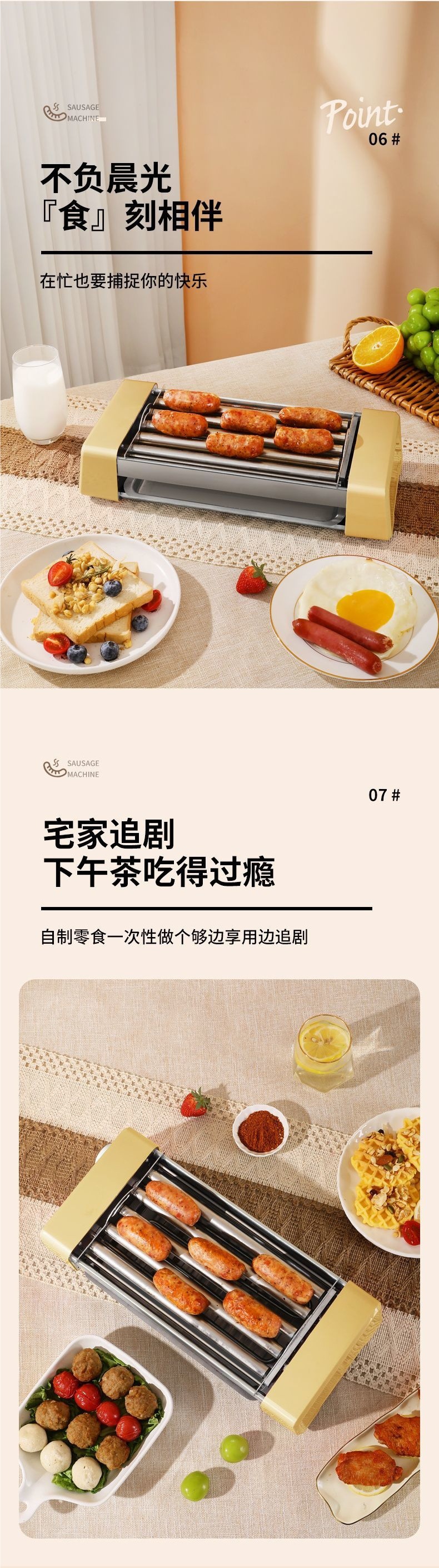 스낵 소시지 기계 가정용 소형 기숙사 완전 자동 핫도그 기계 다기능 3-in-one 전기 바베큐 플레이트 소시지
