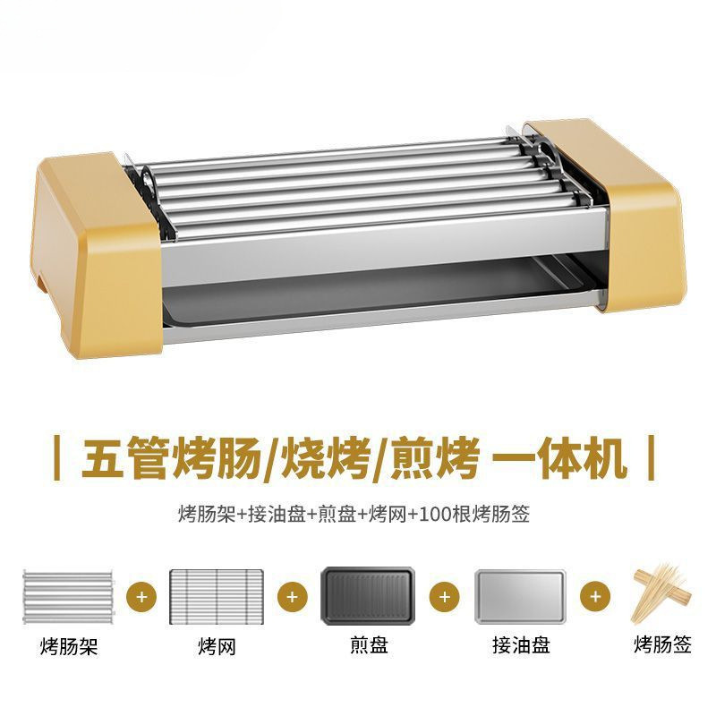 • 소시지 랙과 오일 팬이 포함된 노란색 5관 + 바비큐 꼬치 100개