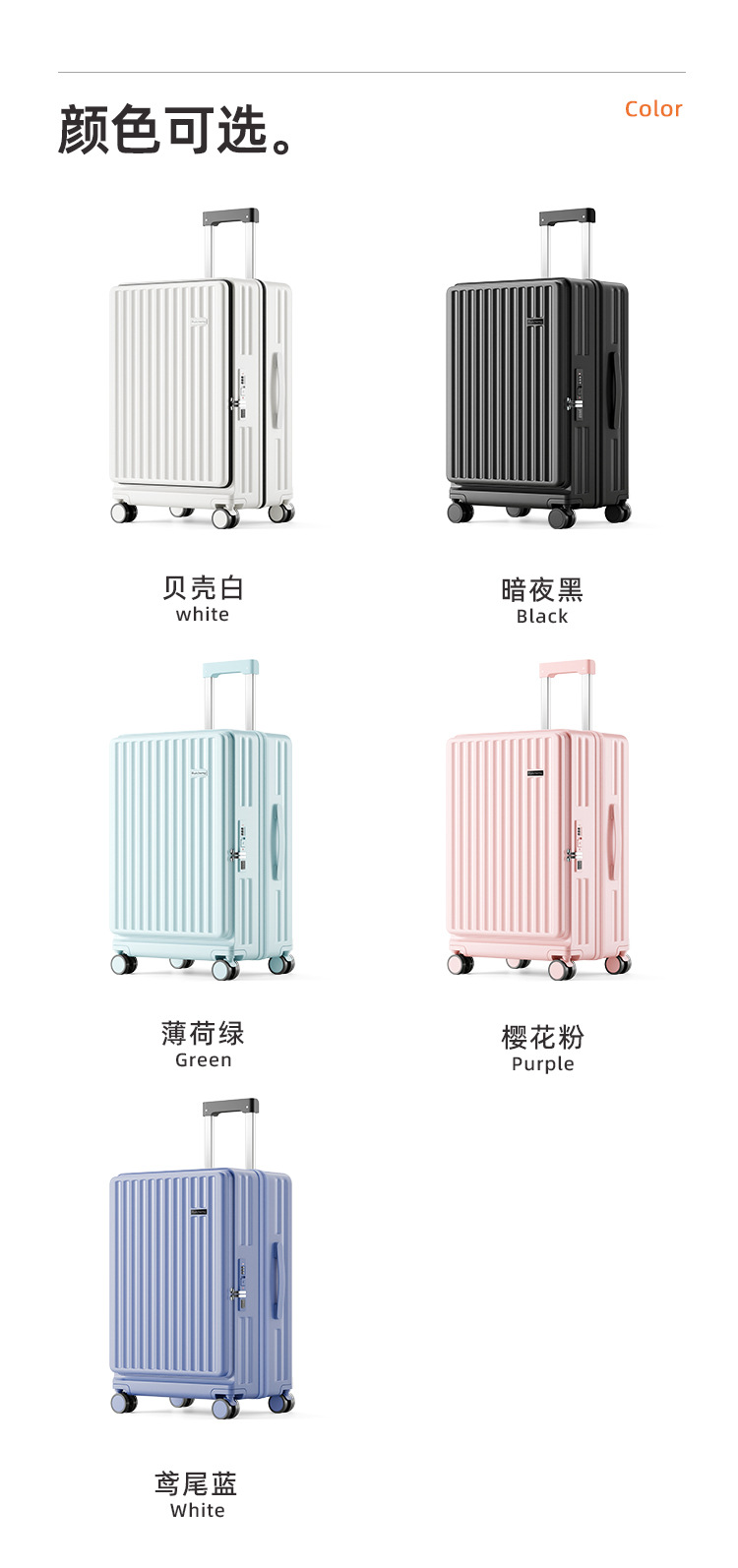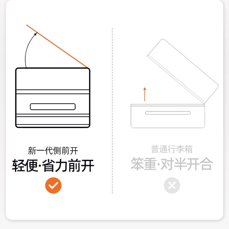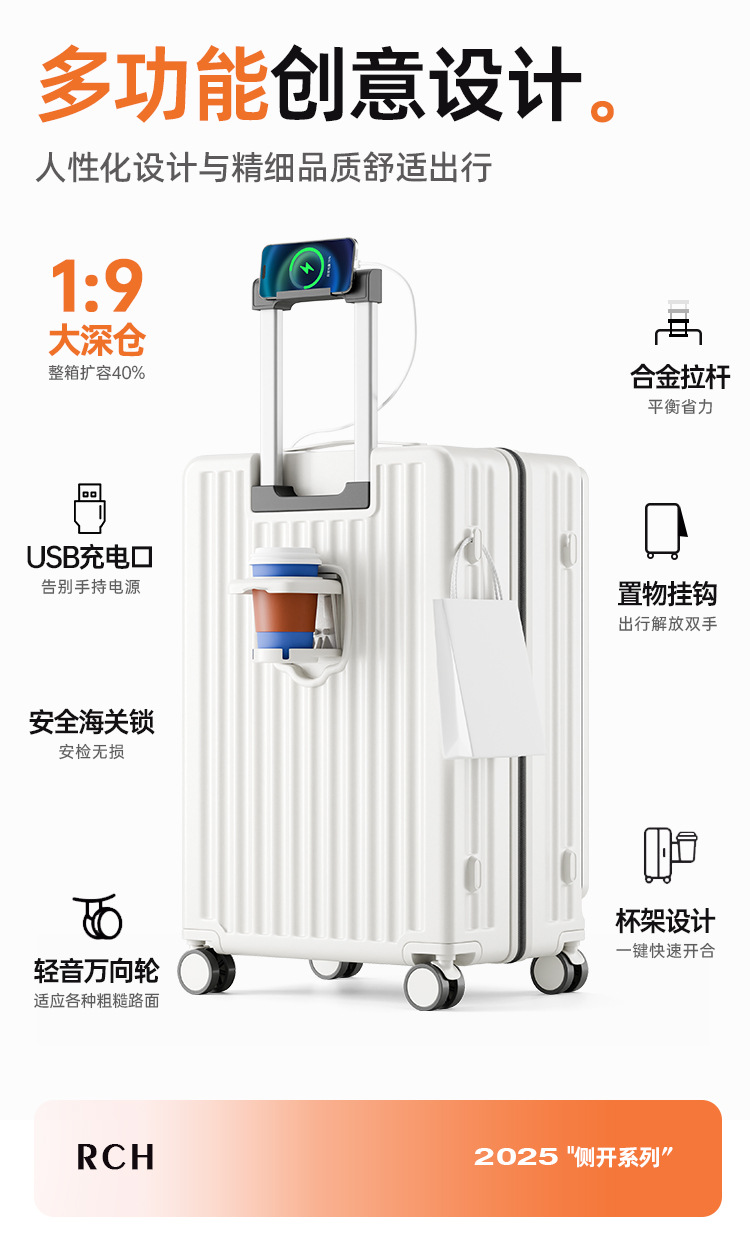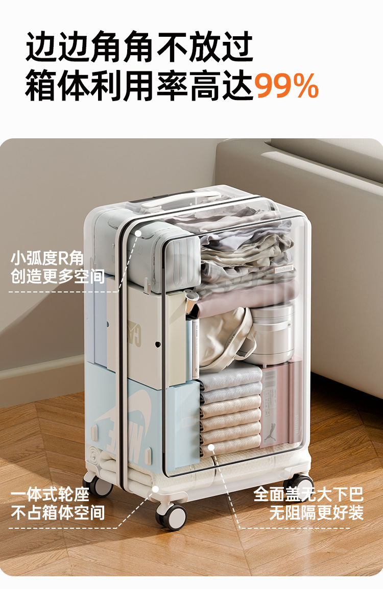 맞춤형 측면 개방형 수하물 트렁크, 여성용 딥 카고, 초대형 용량, 범용 휠, 20inch 확장형 트롤리 여행용 가방스토어 가기