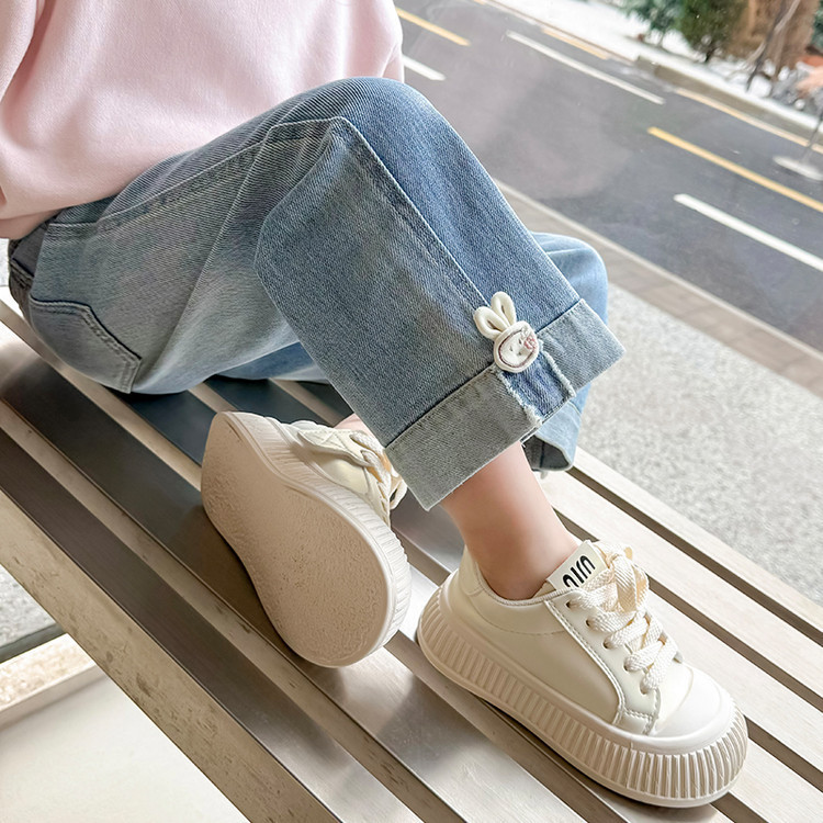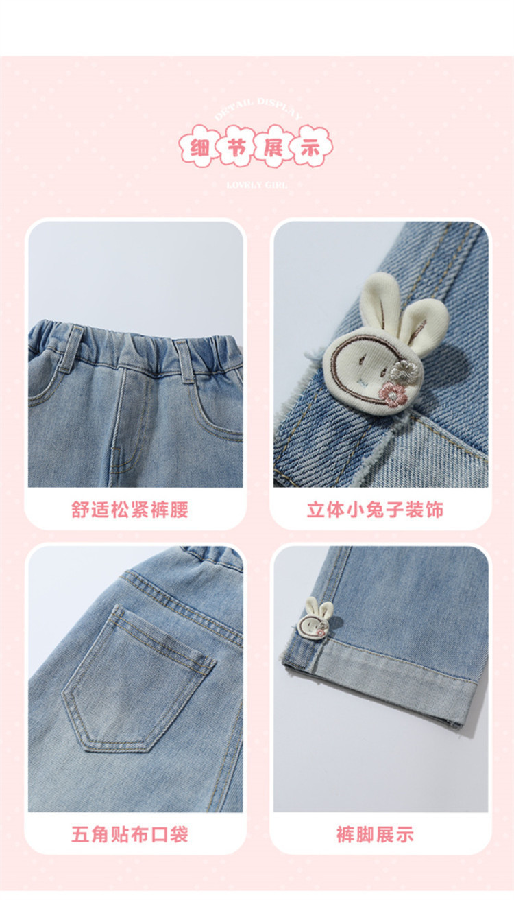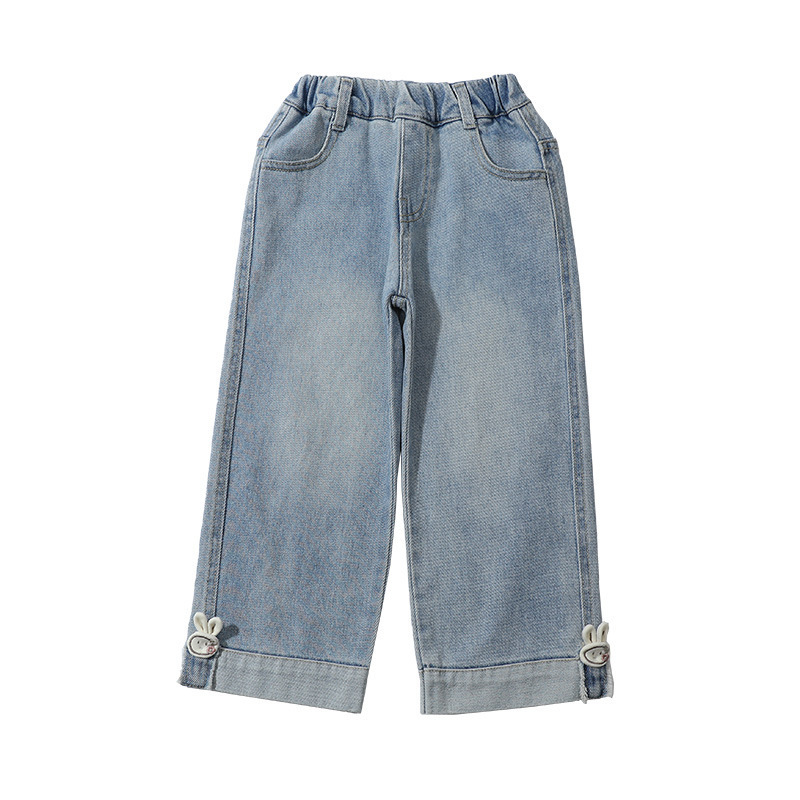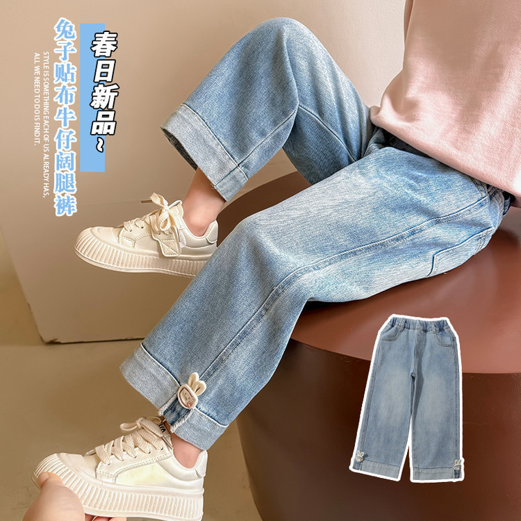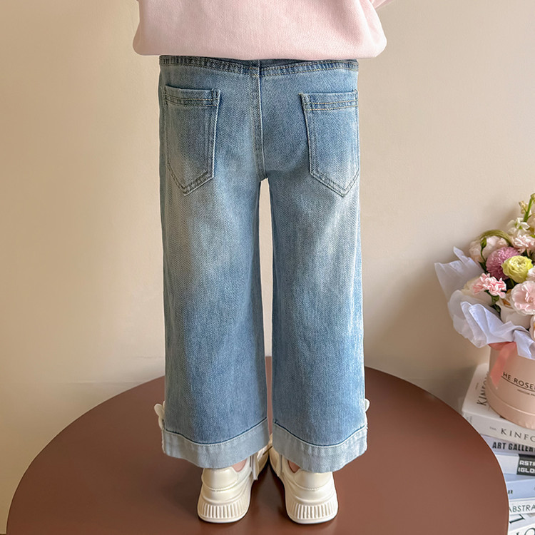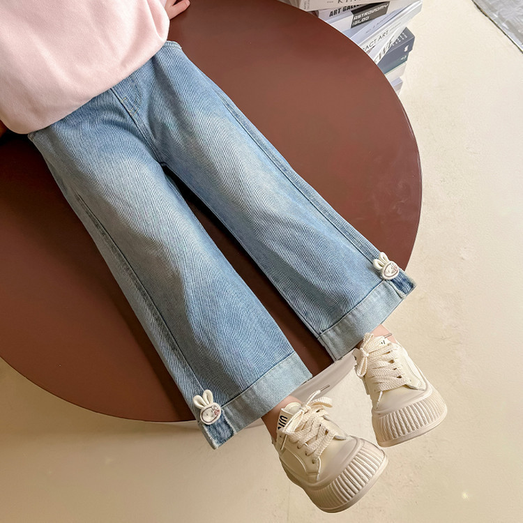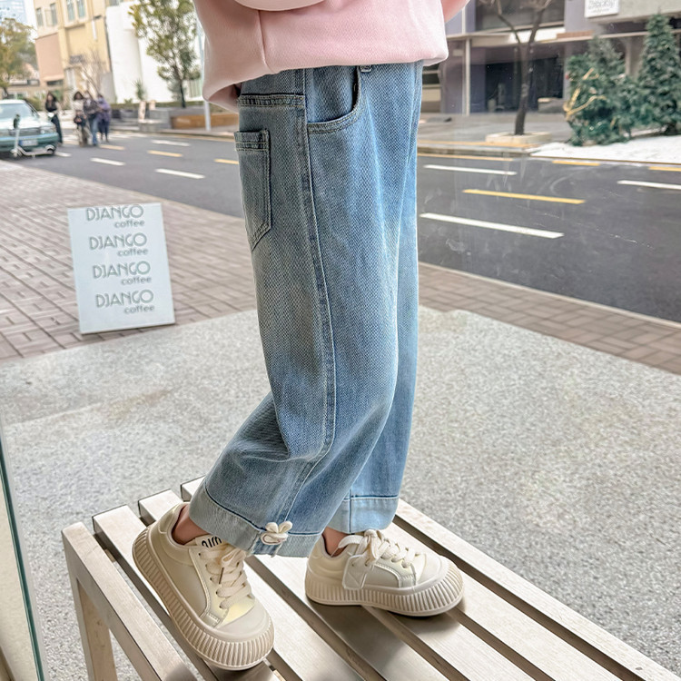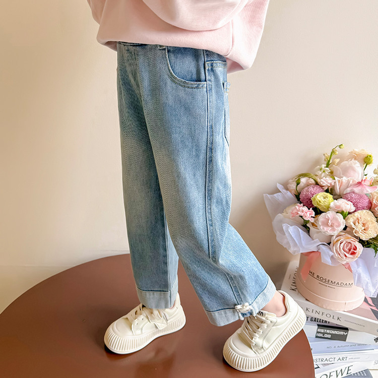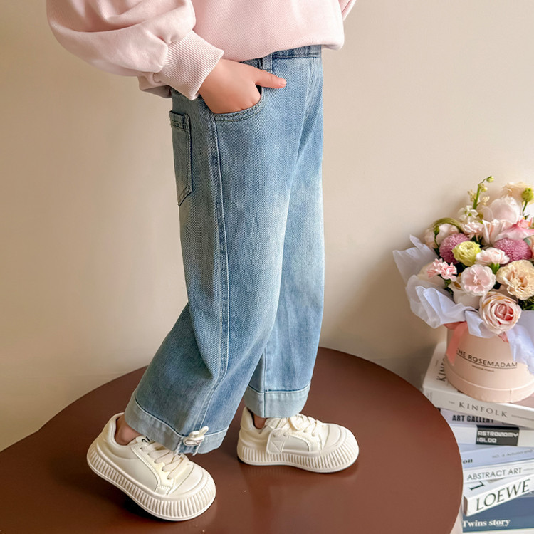 여아 바지 가을 의류 2025 새로운 스타일 중소형 아동 스트레이트 팬츠 여아 스타일 청바지 아동 와이드 팬츠 가을 스타일