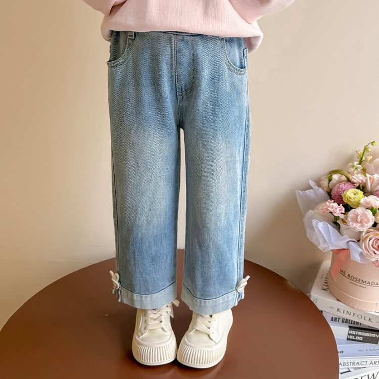 여아 바지 가을 의류 2025 새로운 스타일 중소형 아동 스트레이트 팬츠 여아 스타일 청바지 아동 와이드 팬츠 가을 스타일스토어 가기