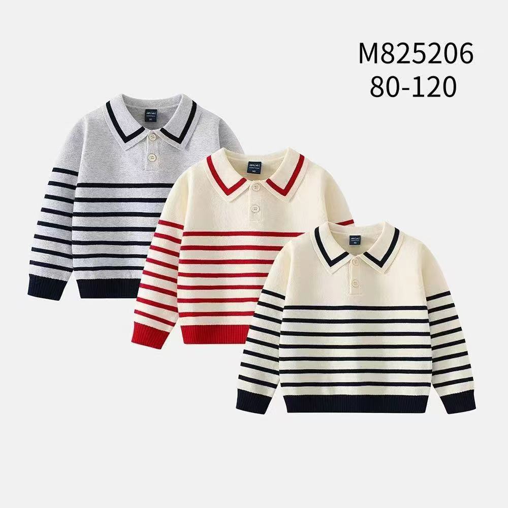 Ins 아동 의류 도매 소년과 소녀 옷깃 스웨터 2025 한국어 버전 어린이 베이비 다목적 스트라이프 코튼 탑스토어 가기