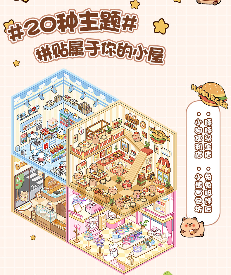 [동일 모델 저가] 미니어처 장면 컬렉션 어린이 장난감 소녀용 조경 스티커 3D 입체 수제 창작스토어 가기