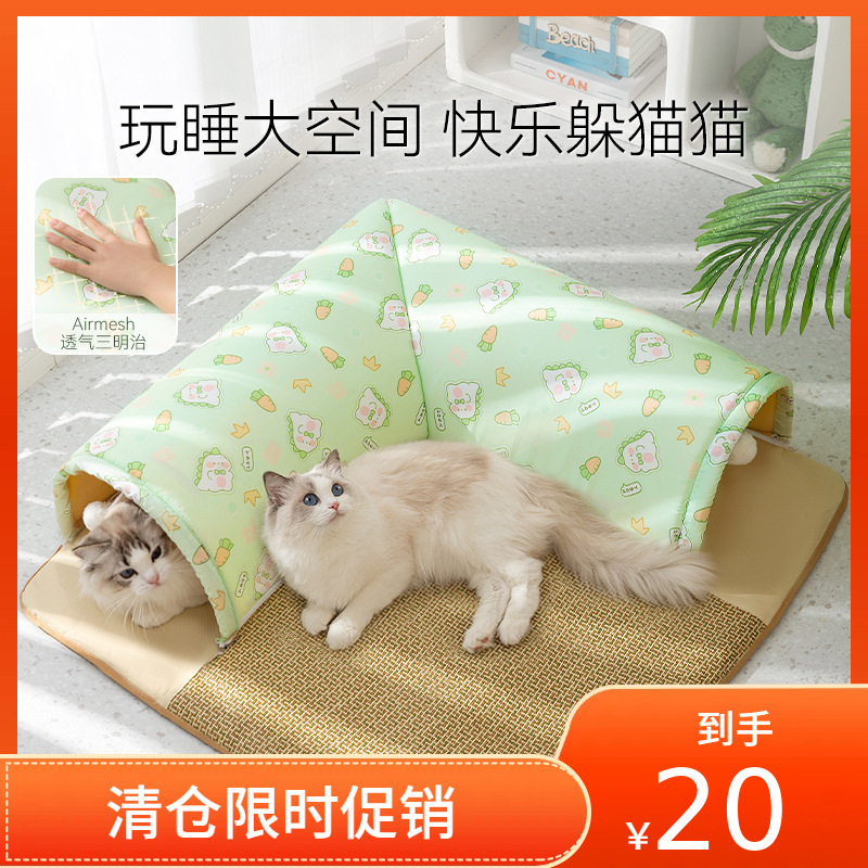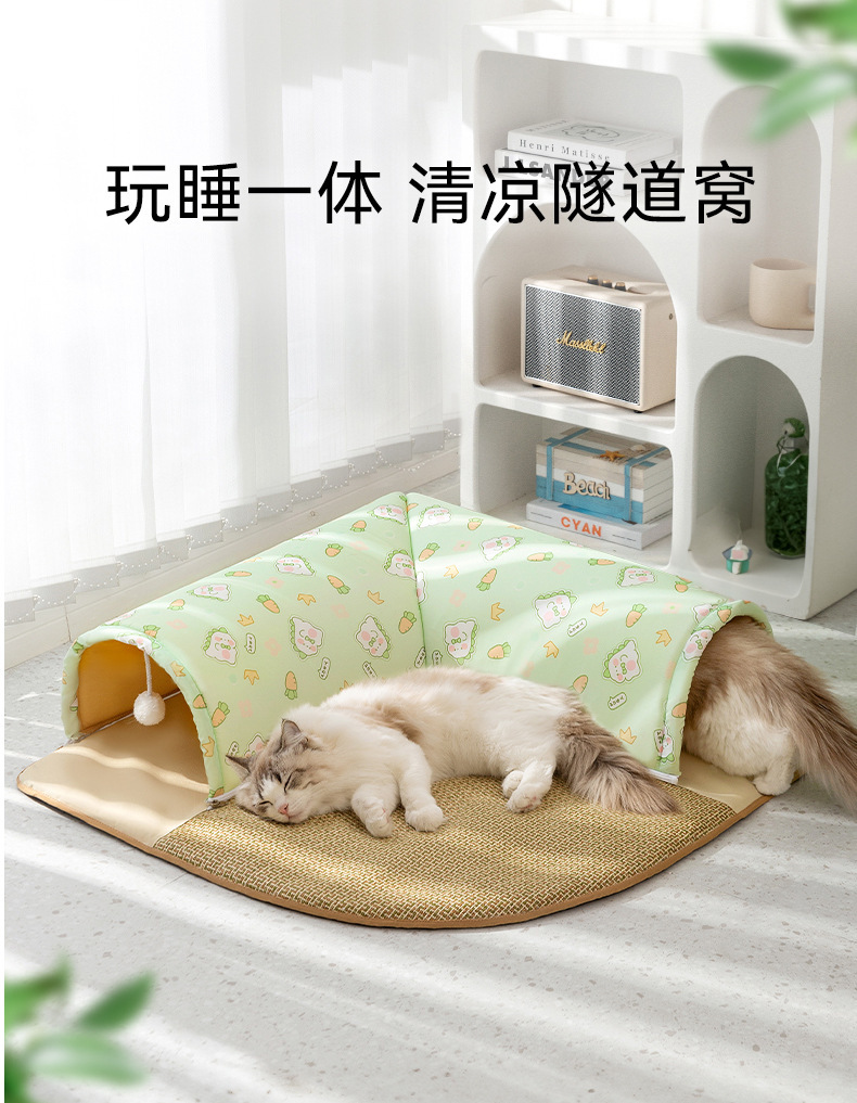 봄과 여름 고양이를 위한 이중 개방형 터널 코너 둥지, 재미있는 놀이 및 수면 일체형 터널 고양이 둥지, 지하 드래곤 장난감, 애완동물 통로스토어 가기