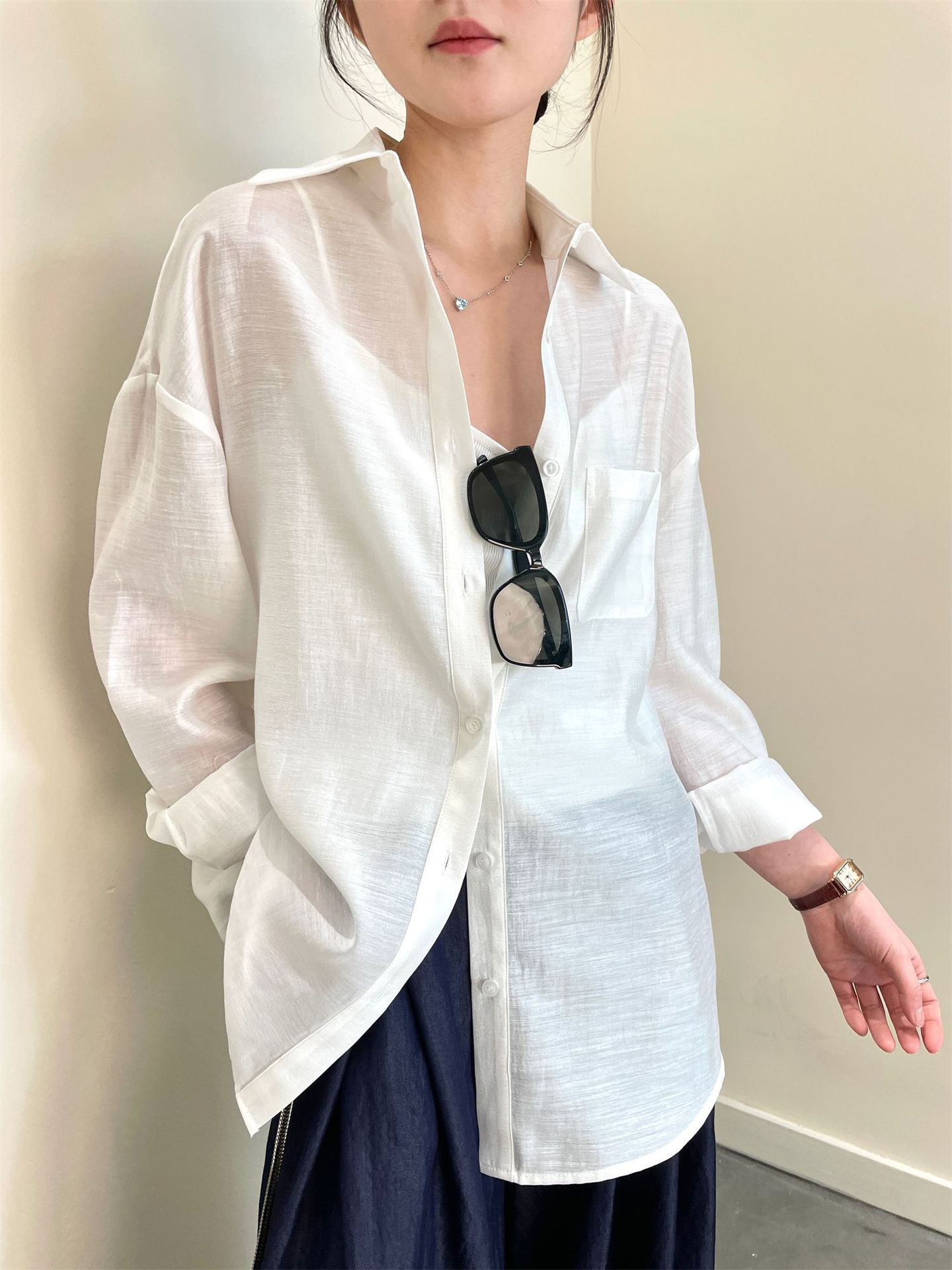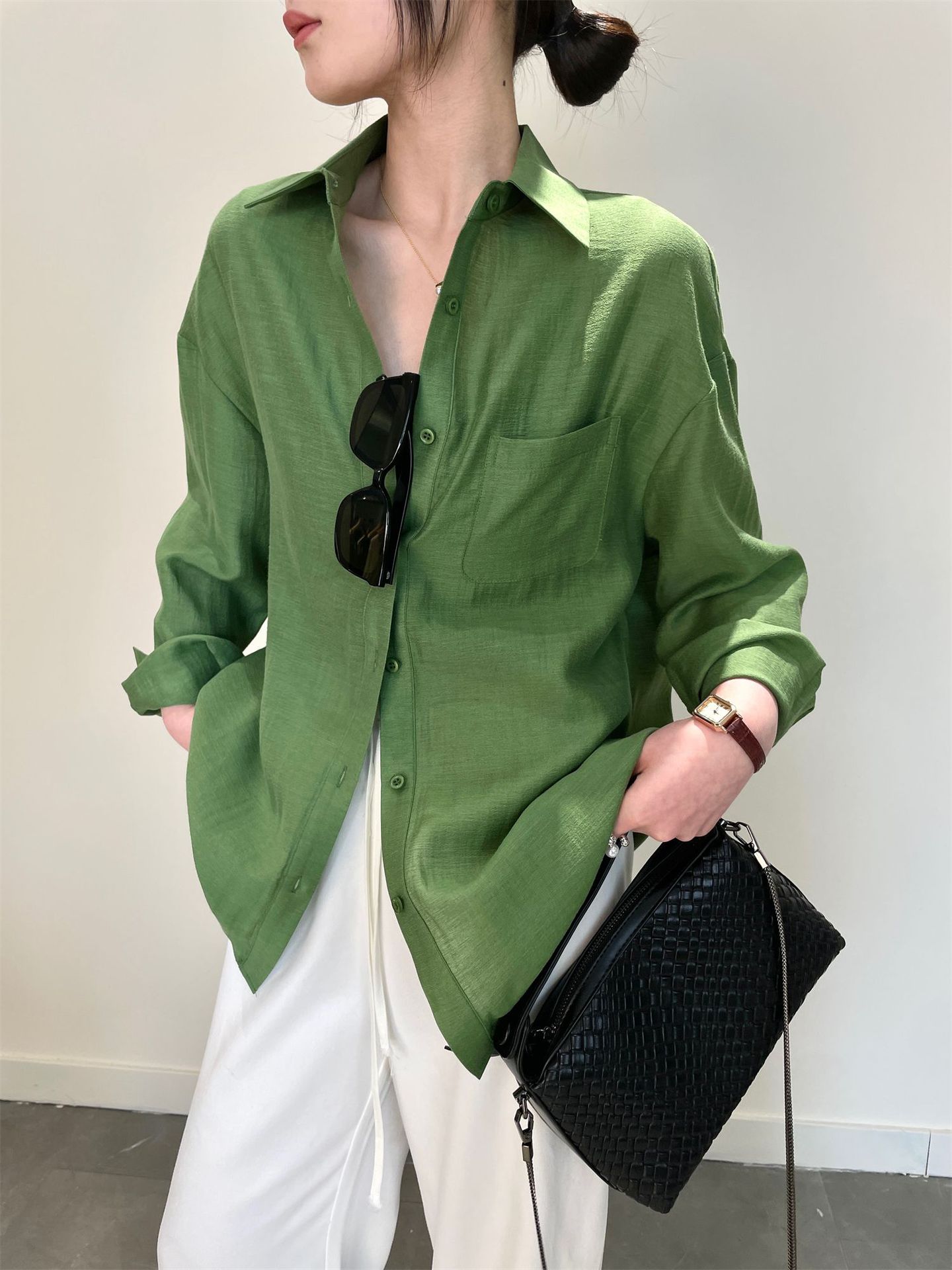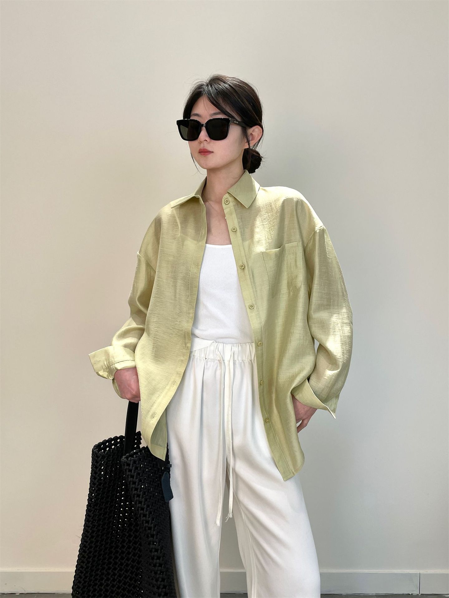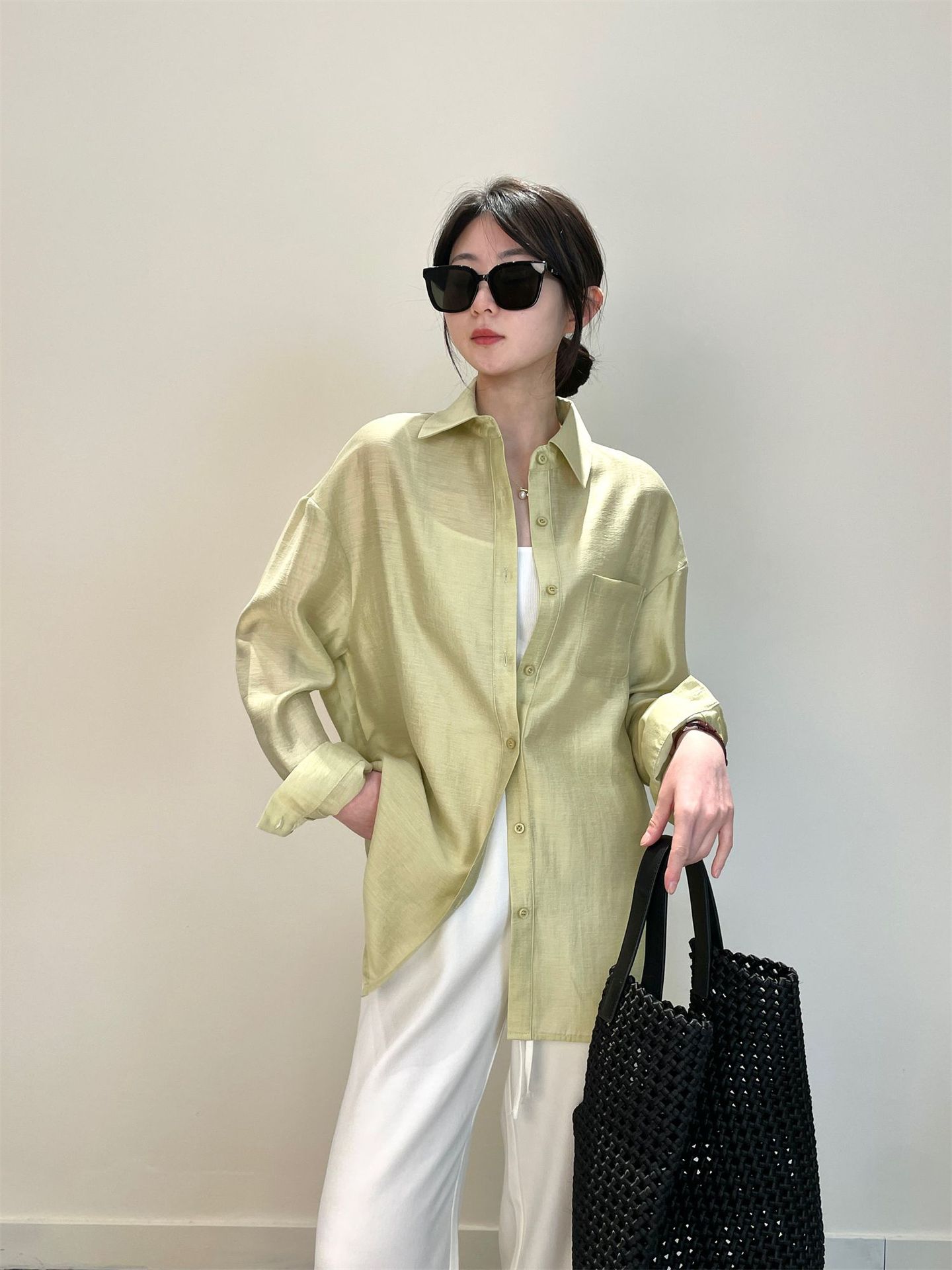 텐셀+아세테이트+린넨 편안하고 질감이 있는 활용도 높은 루즈핏 여성 셔츠 통기성 좋고 시원한 린넨 자외선 차단 셔츠