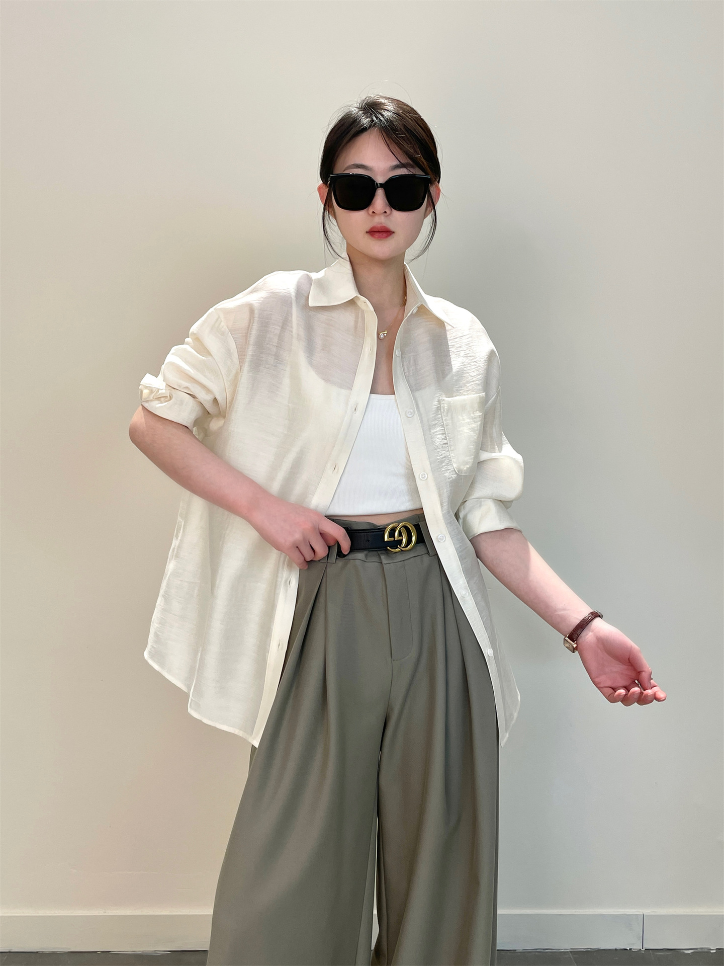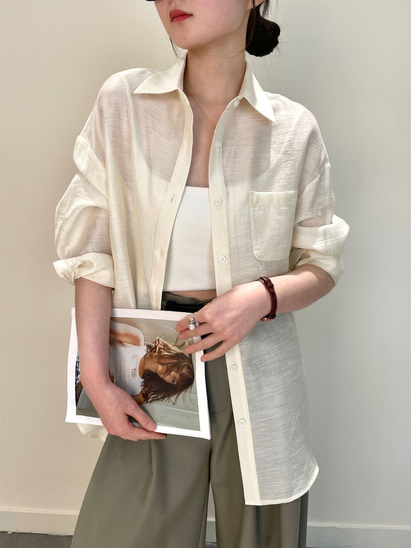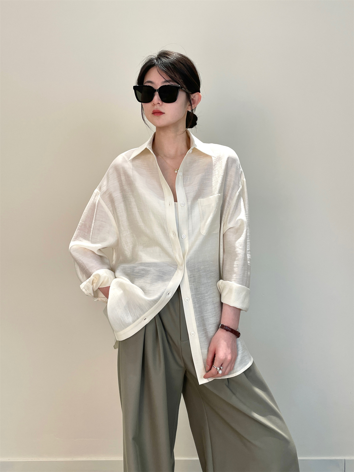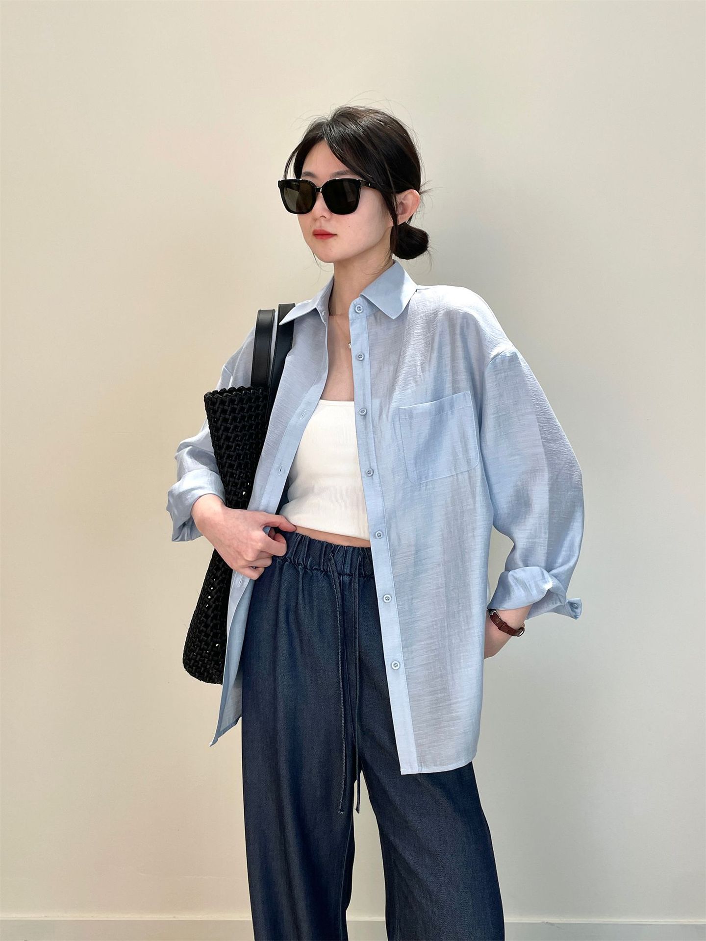 텐셀+아세테이트+린넨 편안하고 질감이 있는 활용도 높은 루즈핏 여성 셔츠 통기성 좋고 시원한 린넨 자외선 차단 셔츠