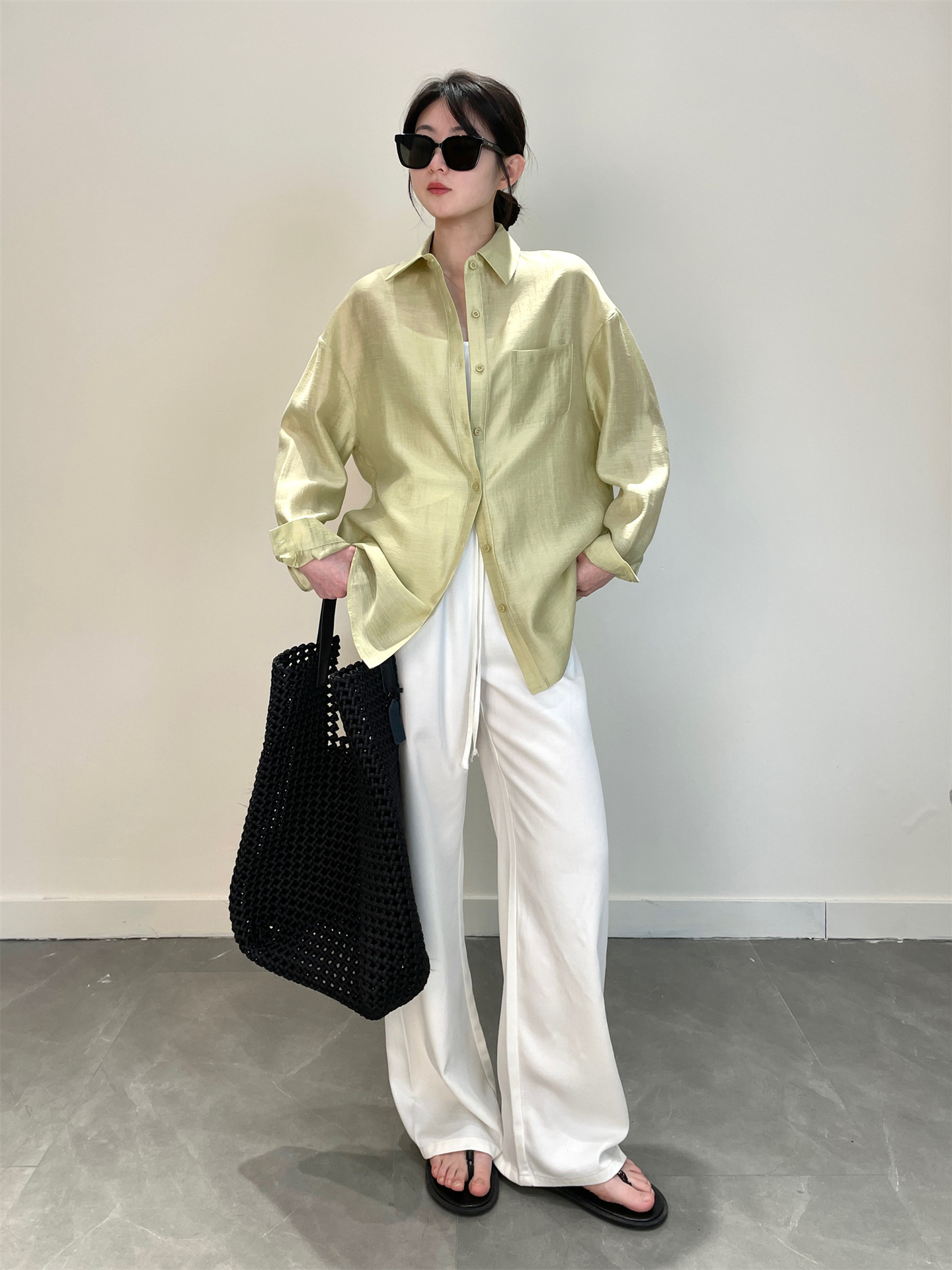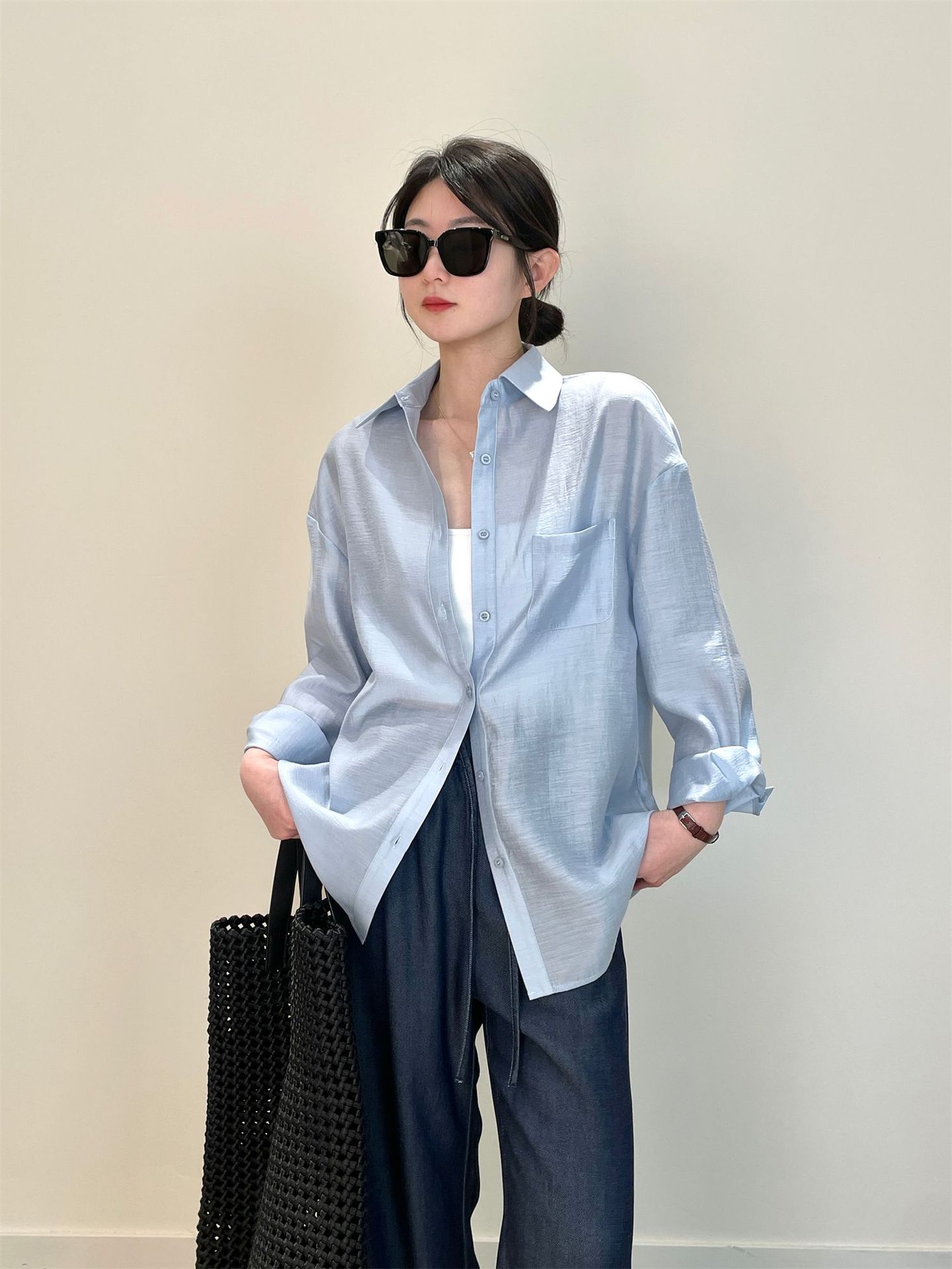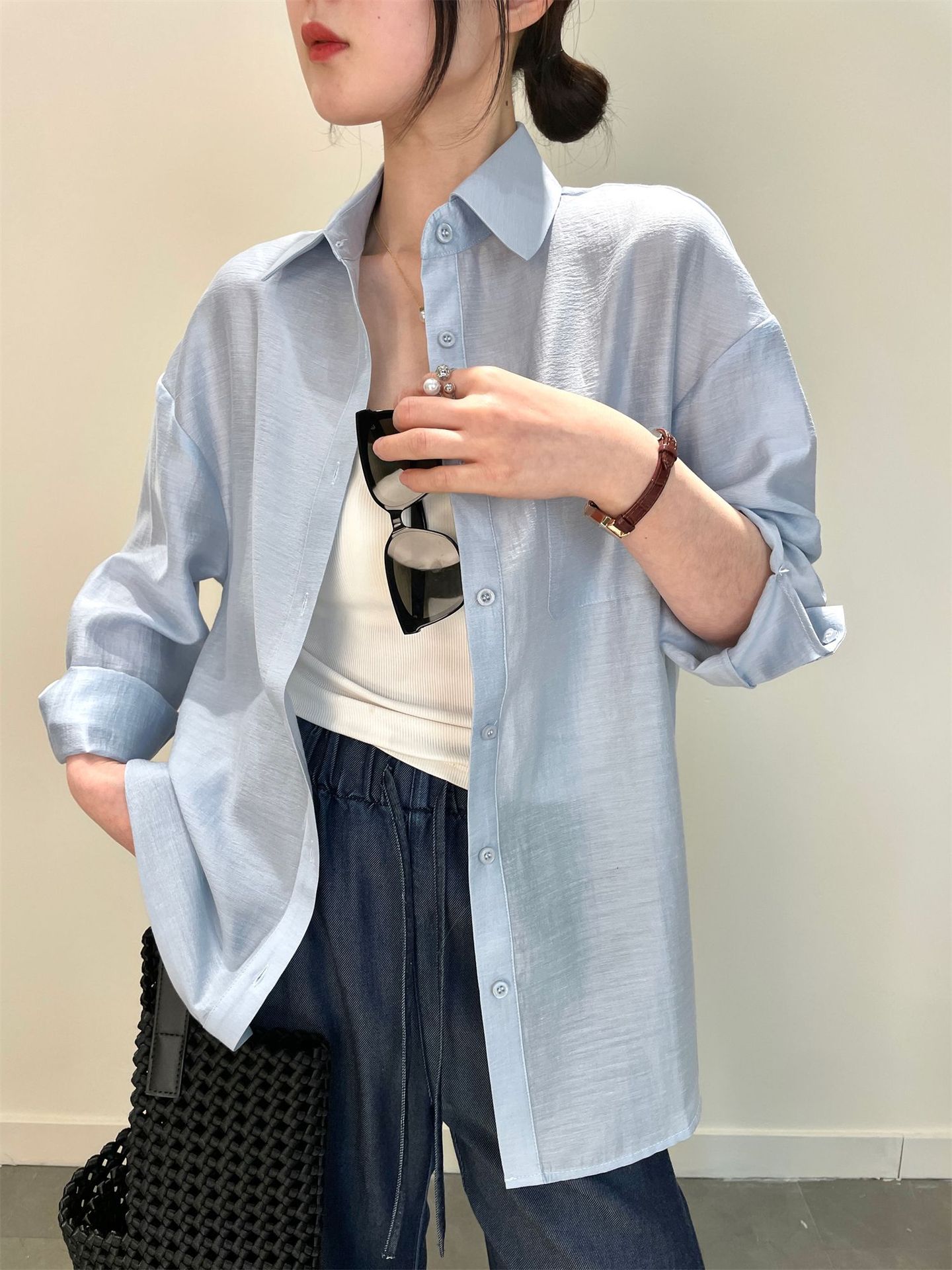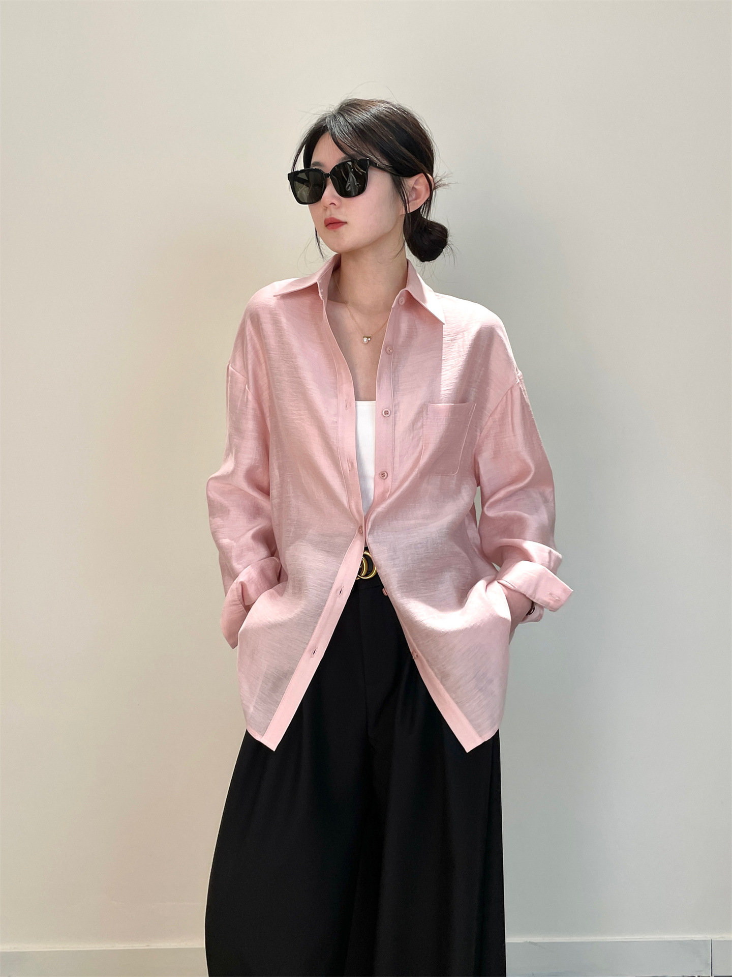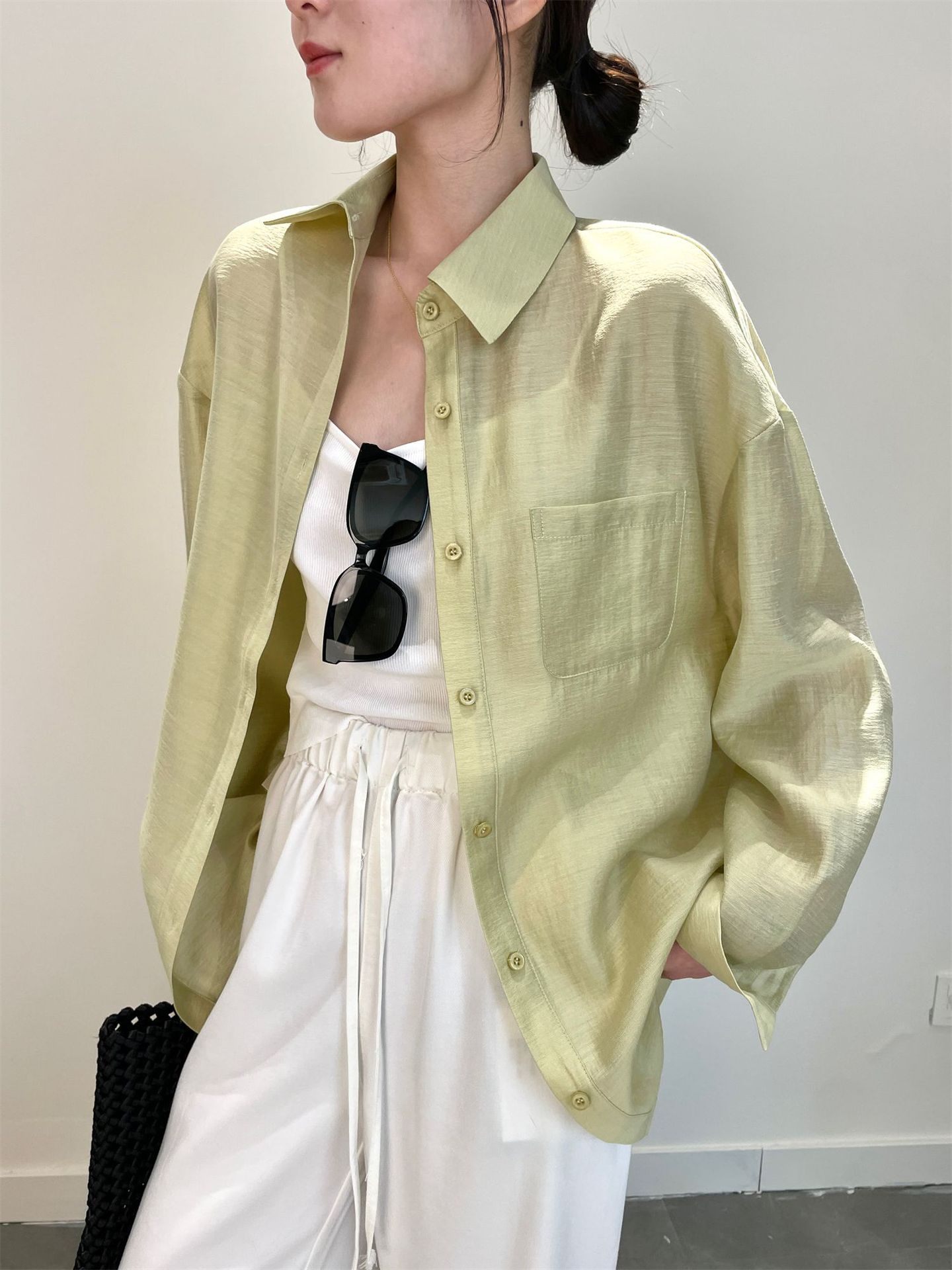 텐셀+아세테이트+린넨 편안하고 질감이 있는 활용도 높은 루즈핏 여성 셔츠 통기성 좋고 시원한 린넨 자외선 차단 셔츠