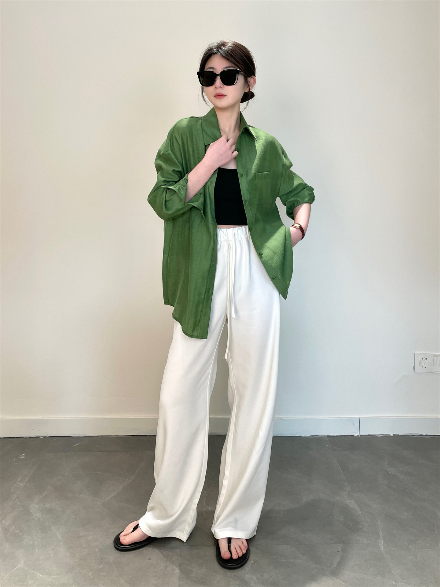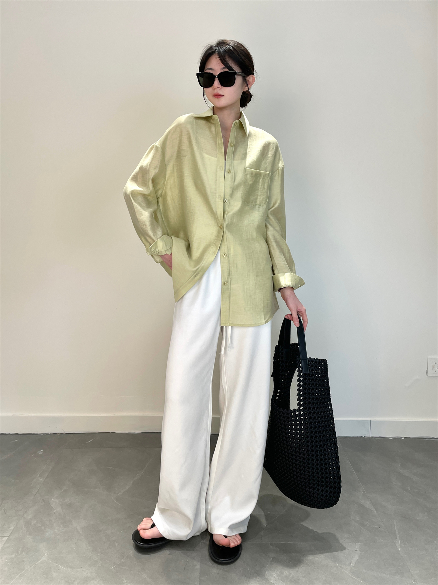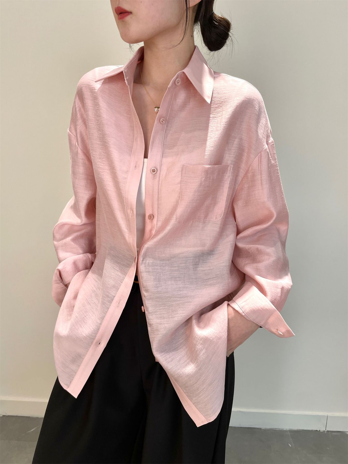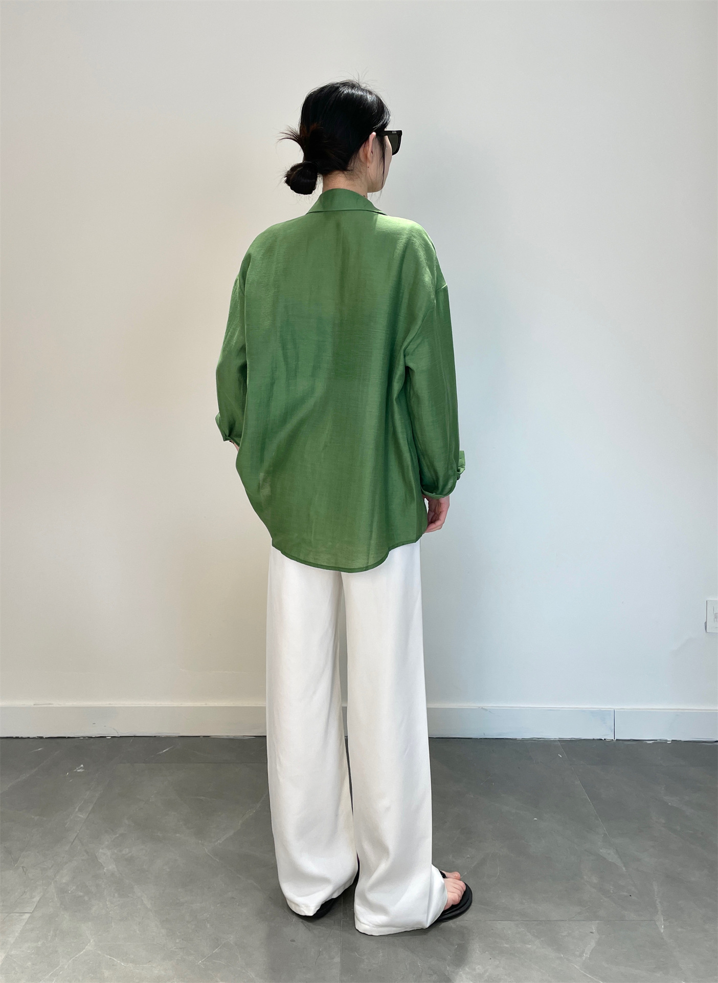 텐셀+아세테이트+린넨 편안하고 질감이 있는 활용도 높은 루즈핏 여성 셔츠 통기성 좋고 시원한 린넨 자외선 차단 셔츠