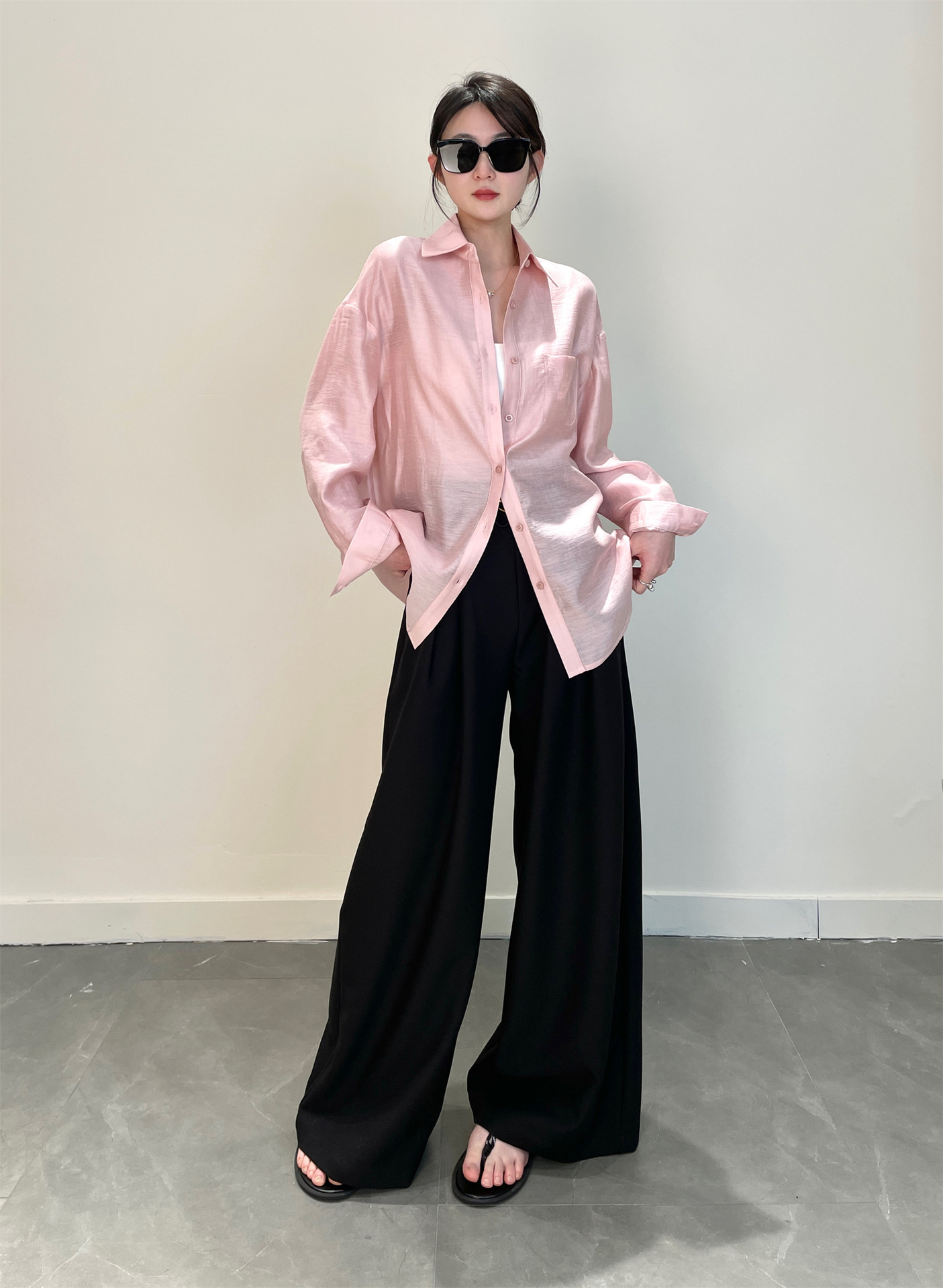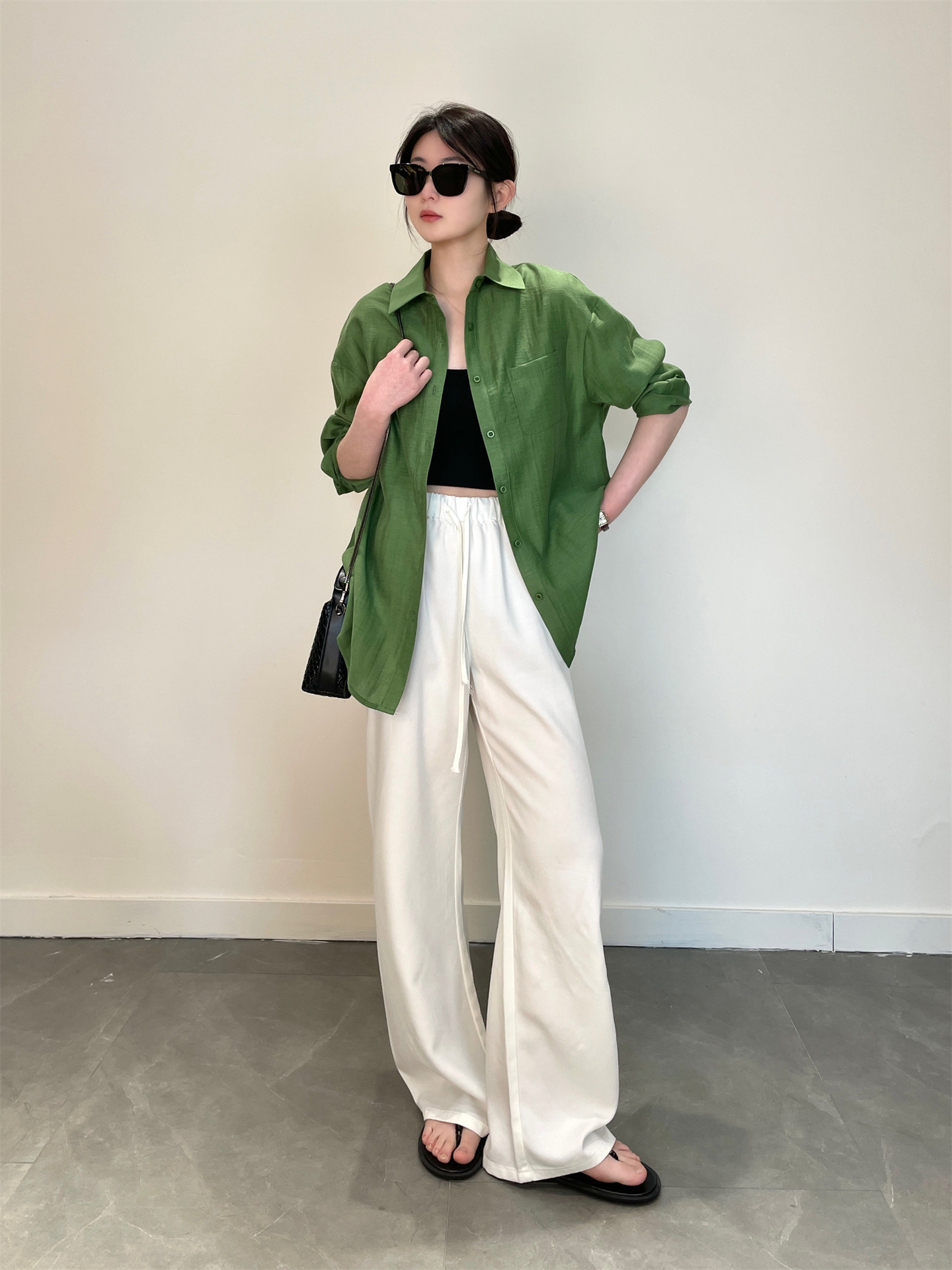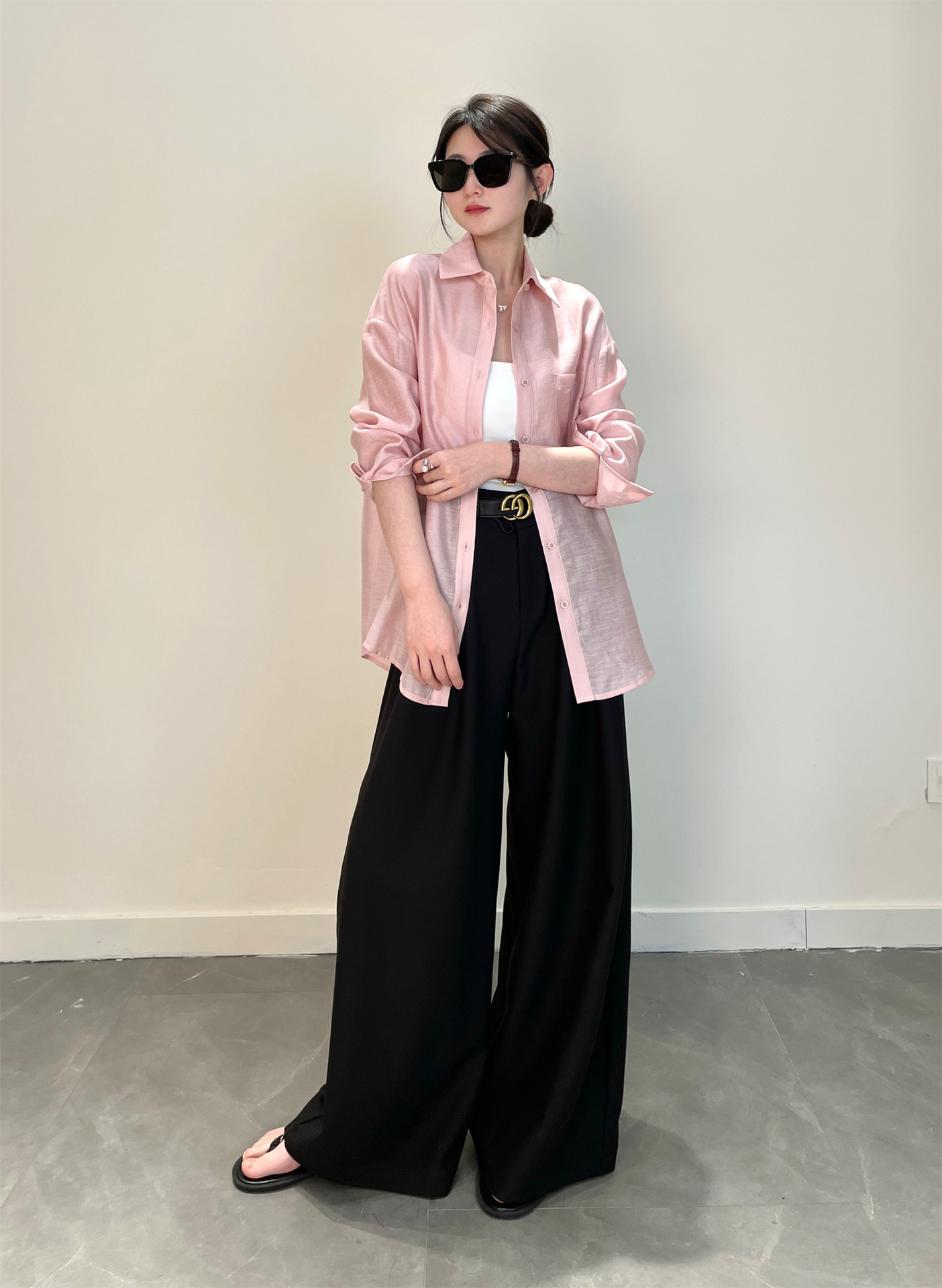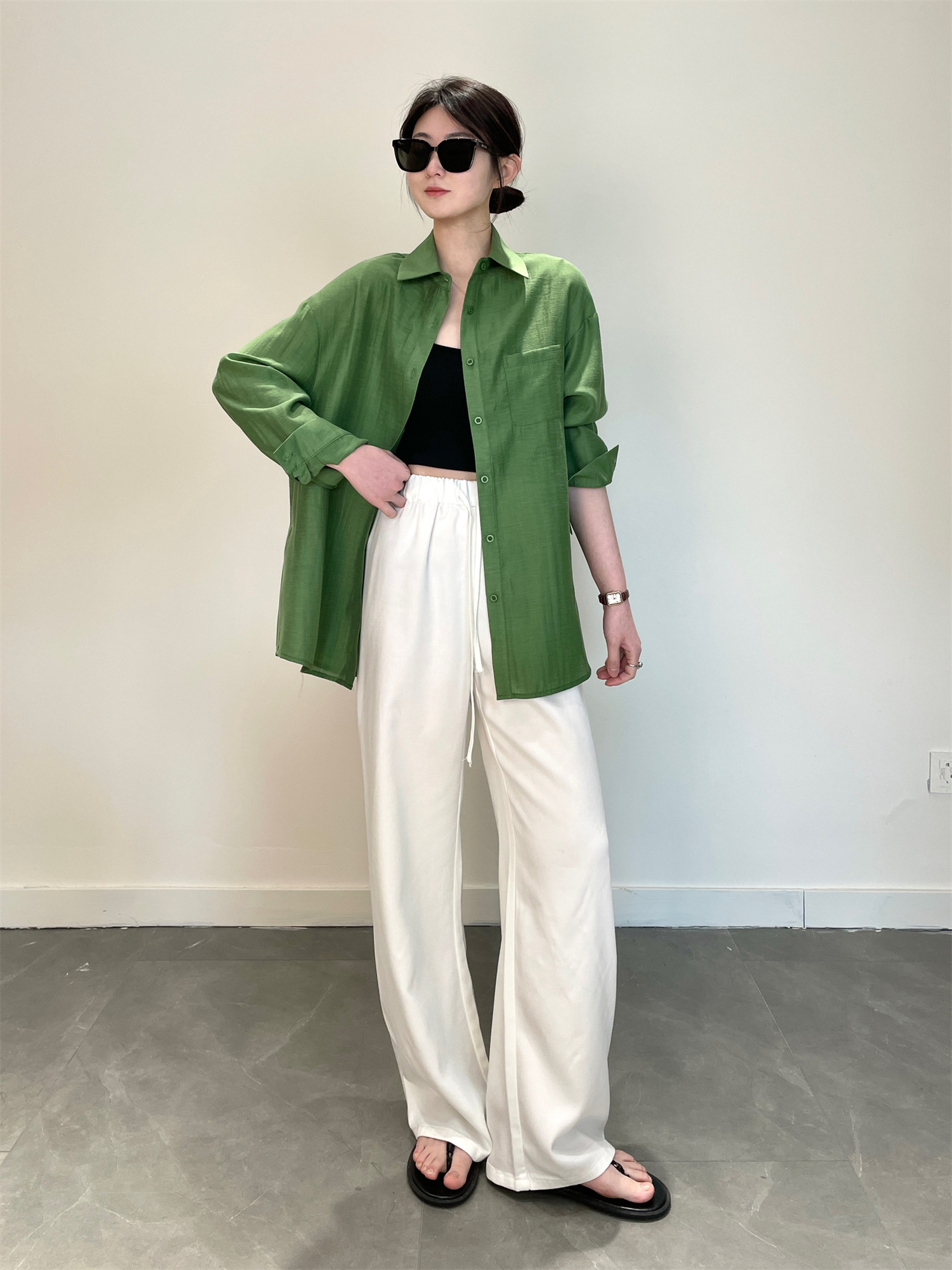 텐셀+아세테이트+린넨 편안하고 질감이 있는 활용도 높은 루즈핏 여성 셔츠 통기성 좋고 시원한 린넨 자외선 차단 셔츠