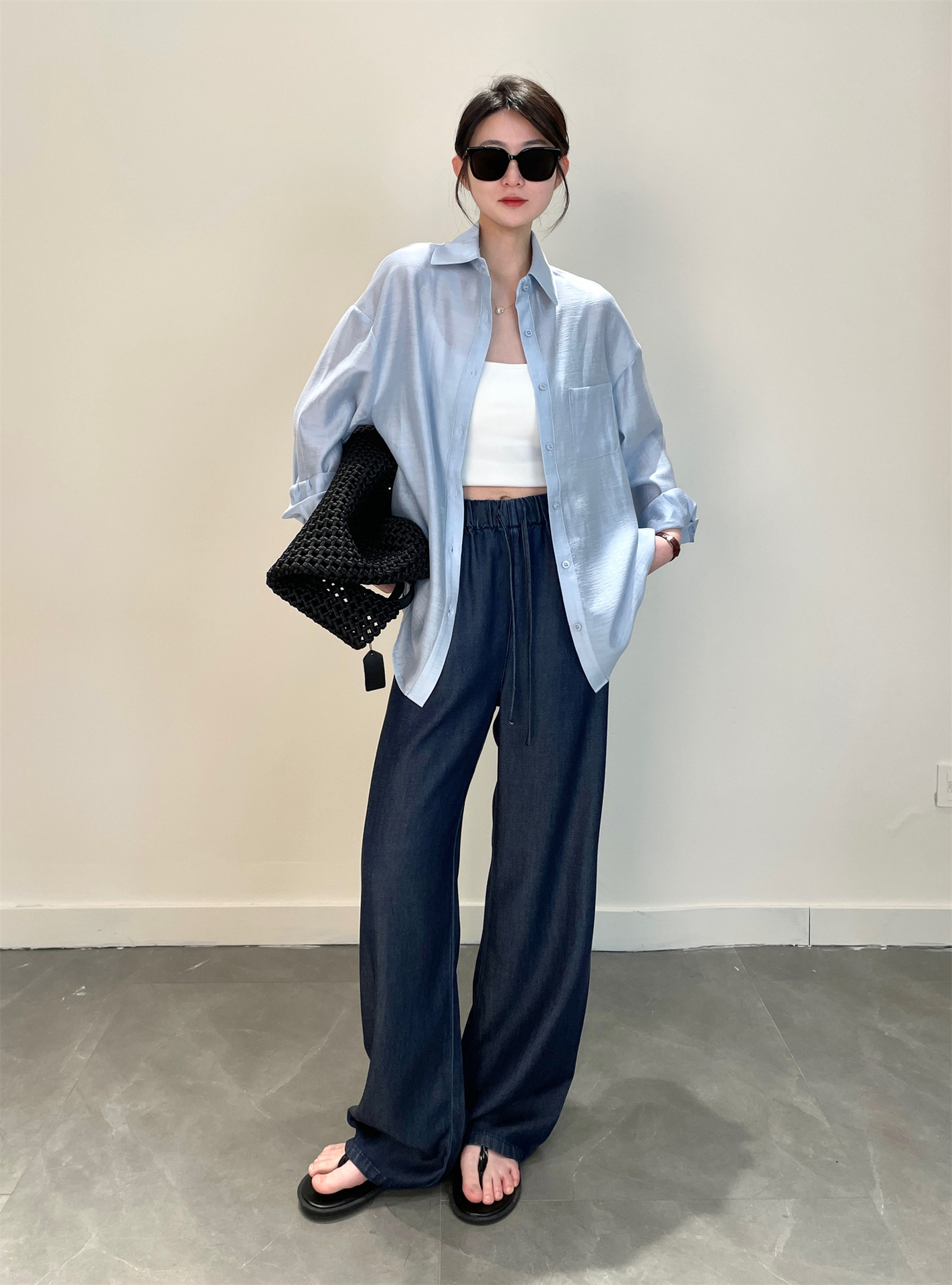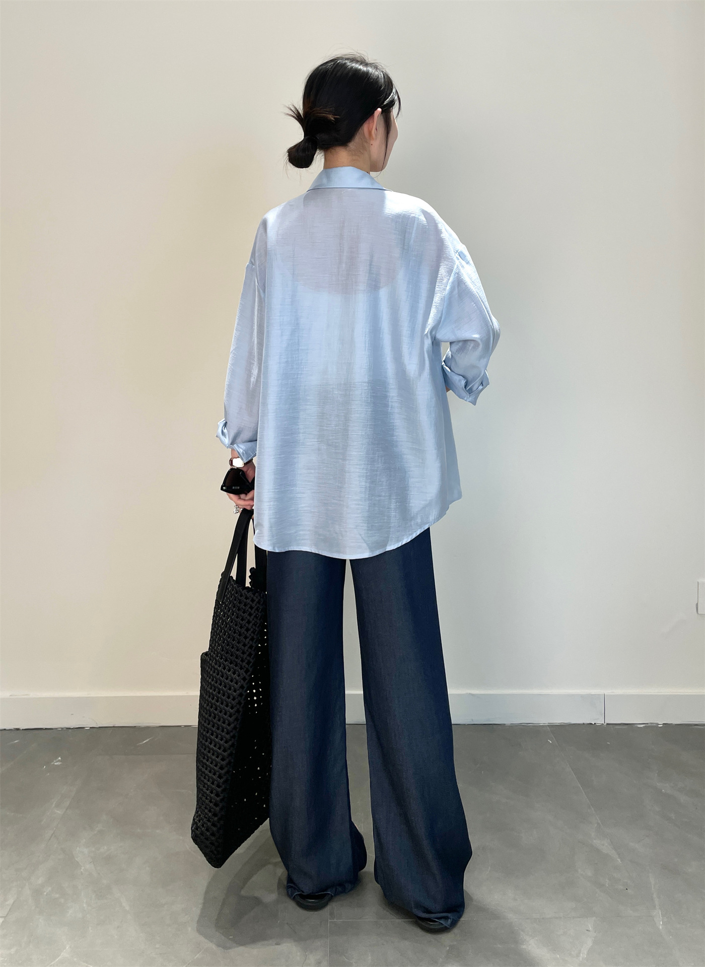텐셀+아세테이트+린넨 편안하고 질감이 있는 활용도 높은 루즈핏 여성 셔츠 통기성 좋고 시원한 린넨 자외선 차단 셔츠스토어 가기