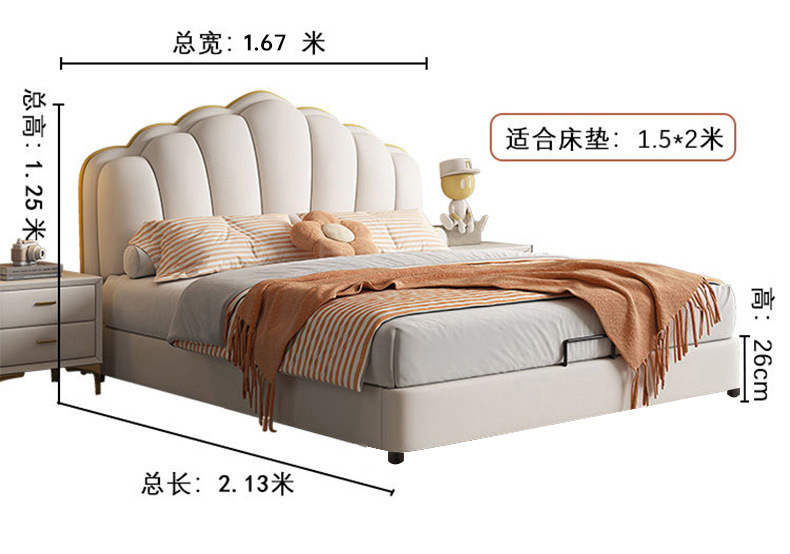 어린이 침대 소녀. 미국식 심플한 가죽 침대. Mi 홈 쉘 더블 침대 침실 로맨틱 스토리지
