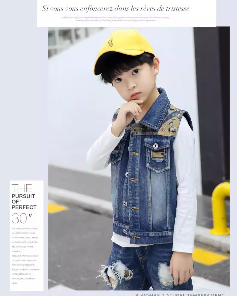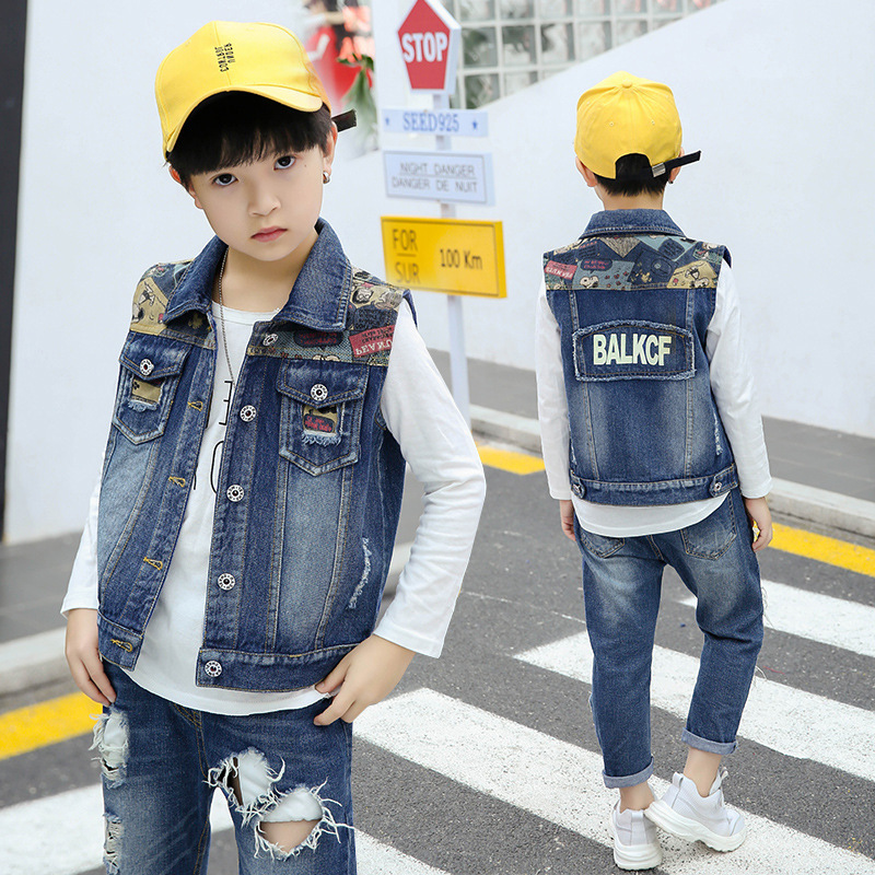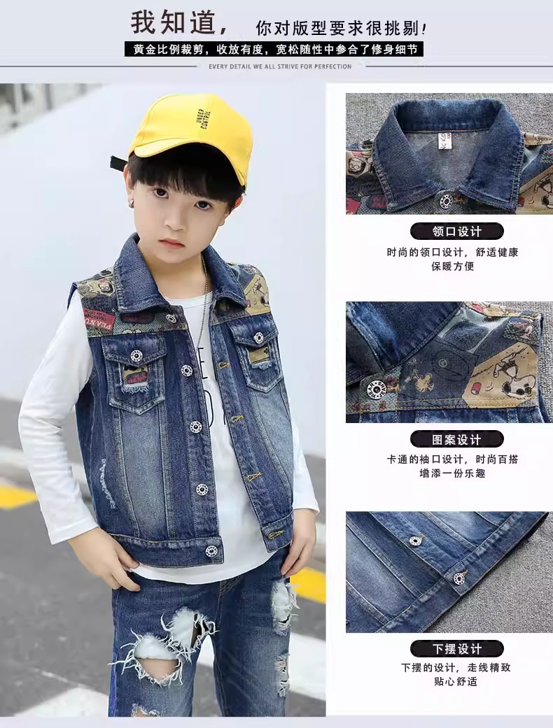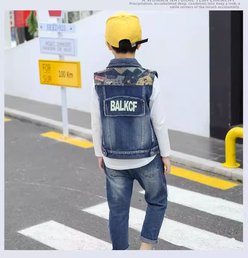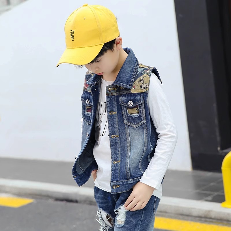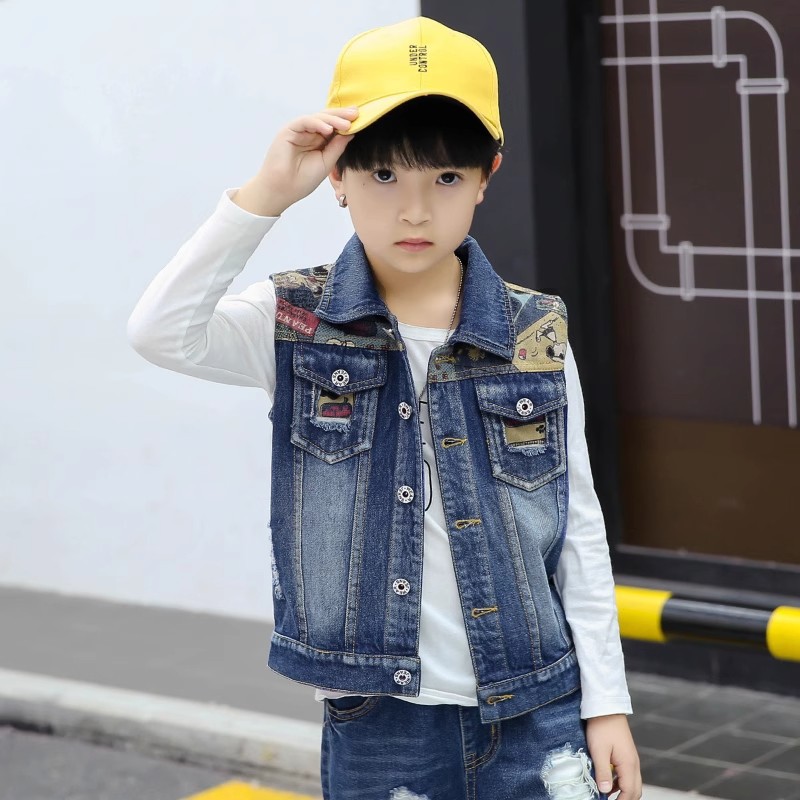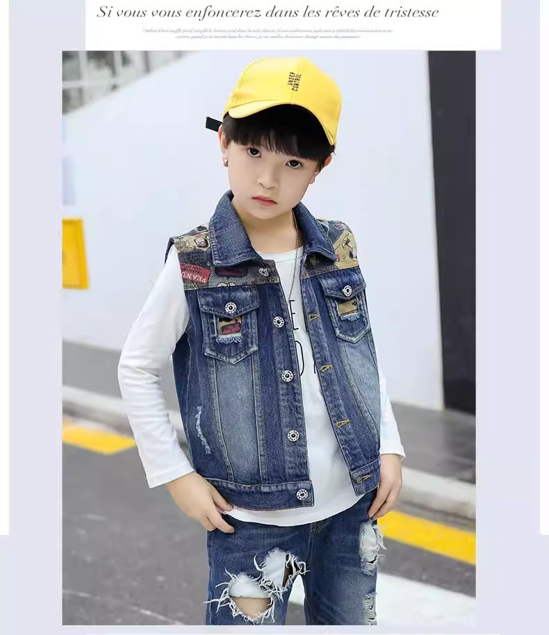 아동용 데님 트렌디 쿨 조끼 재킷 봄, 가을 겉옷 조끼 소년 조끼 세련된 얇은 아기스토어 가기