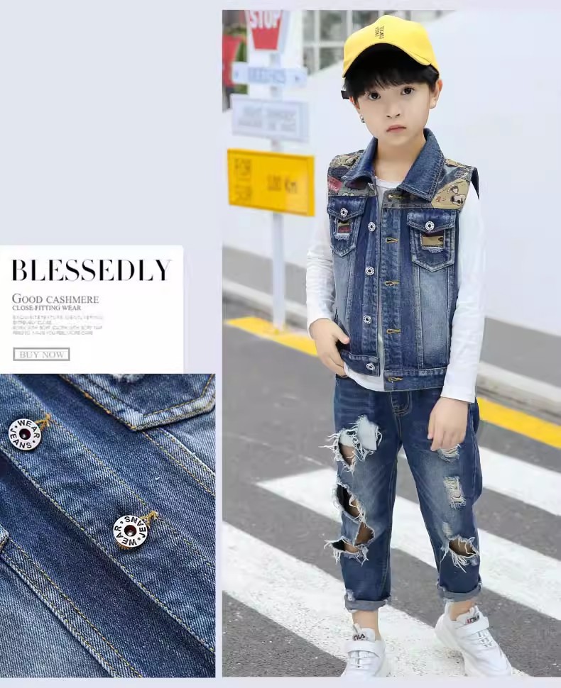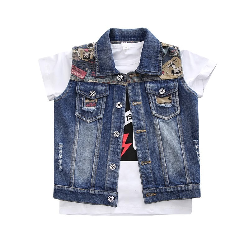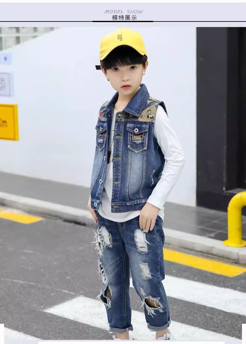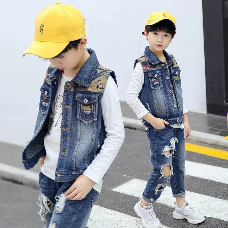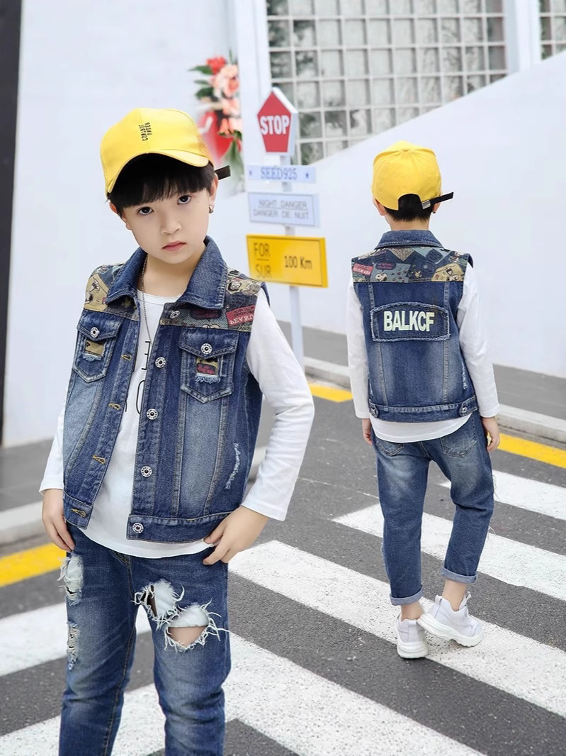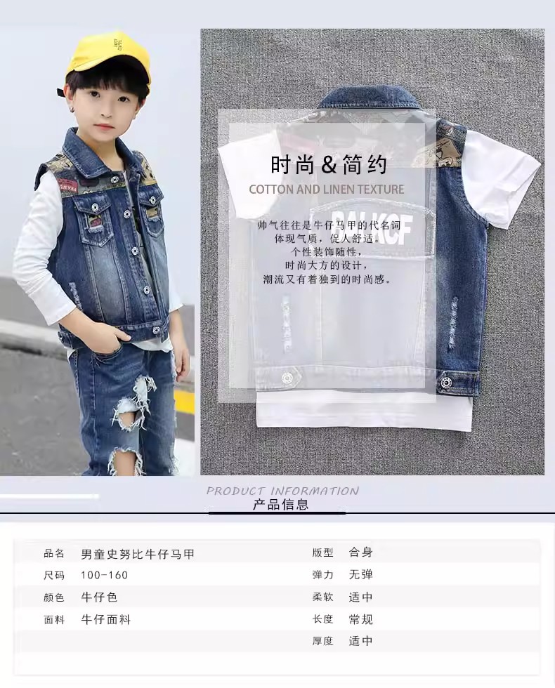 아동용 데님 트렌디 쿨 조끼 재킷 봄, 가을 겉옷 조끼 소년 조끼 세련된 얇은 아기스토어 가기
