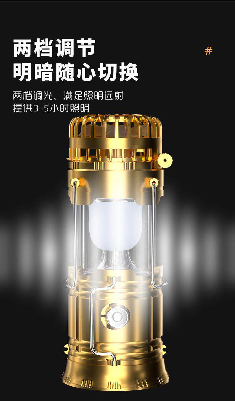 국경 간 태양광 캠핑 조명, 야외용 송풍기 및 충전식 LED 긴 배터리 수동 스위치 캠핑 조명