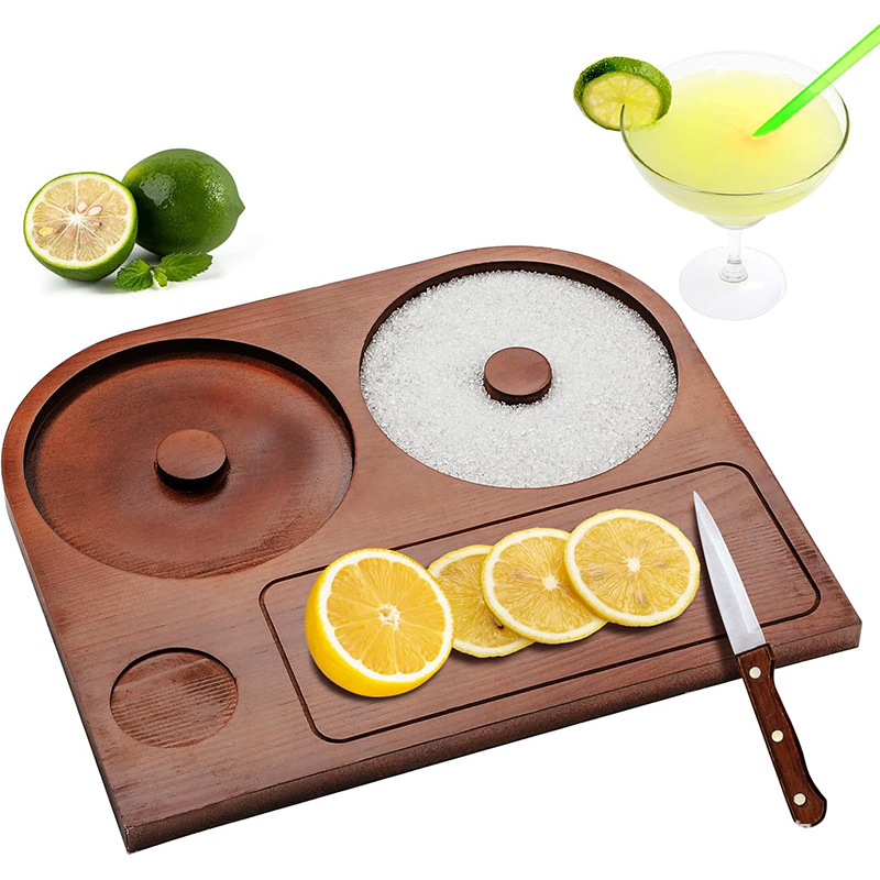 국경 간 목재 소금 접시 바 칵테일 설탕 접시 단단한 나무 와인 잔 소금 가장자리 트레이 위스키 소금 접시