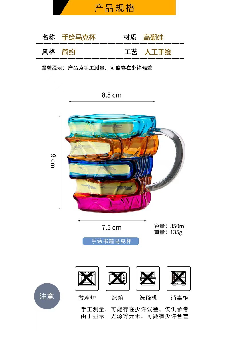 새로운 고붕규산 유리 책 머그잔 손으로 그린 물 컵 크리스탈 유리 책 컵 도매스토어 가기