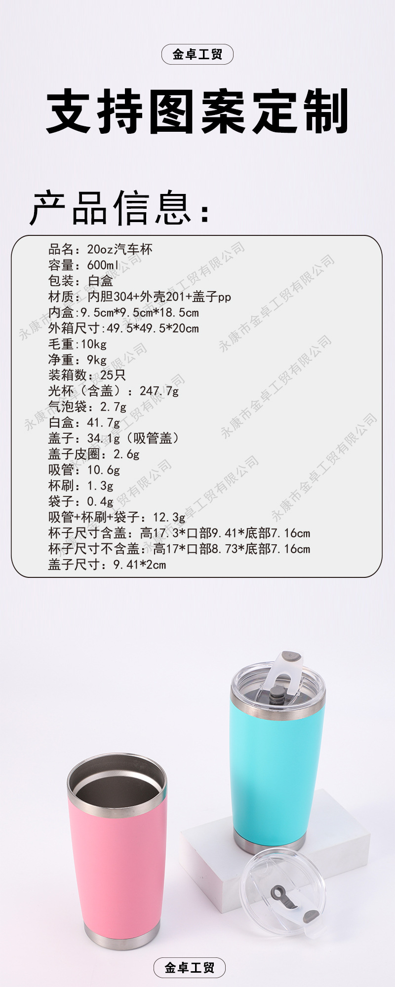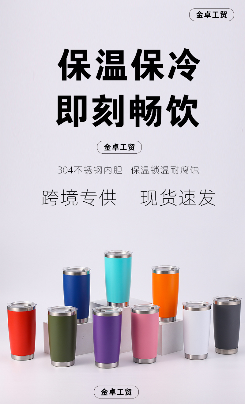 국경을 넘는 전용 공급 20온스 차량용 보온병 304 스테인리스 이중 진공 스프레이 코팅 차량용 아이스 쿨러 콜라 빨대