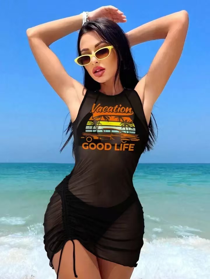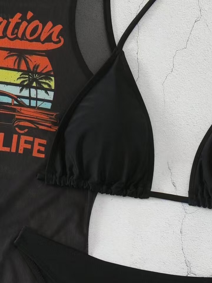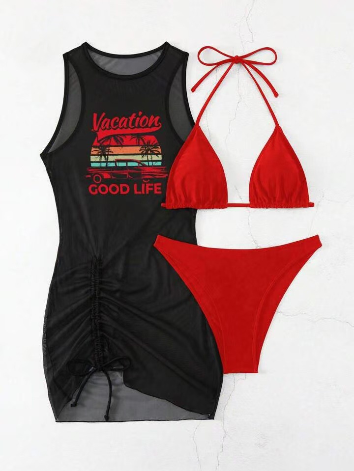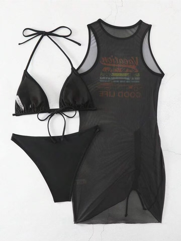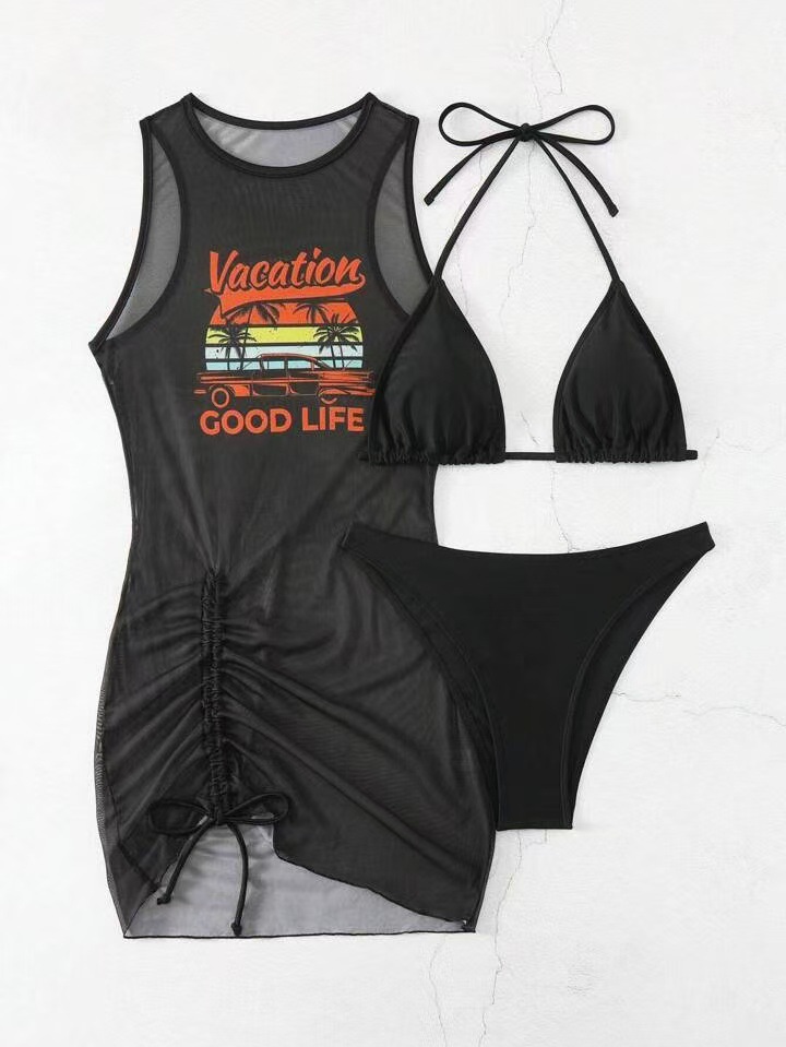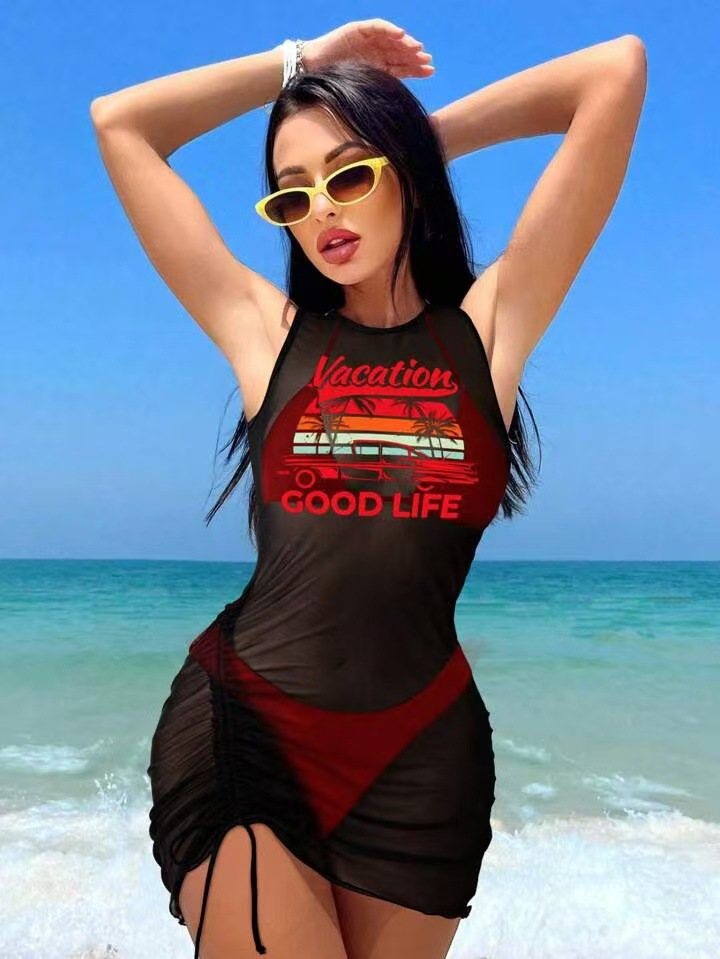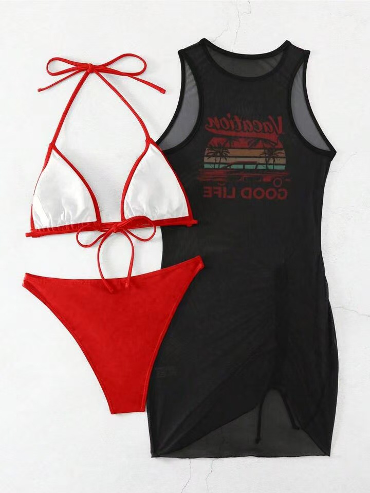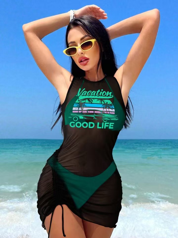 유럽과 미국의 국경 간 패션 비키니 비키니 3피스 블라우스 수영복 여성 섹시 포지셔닝 프린트 해변 휴가