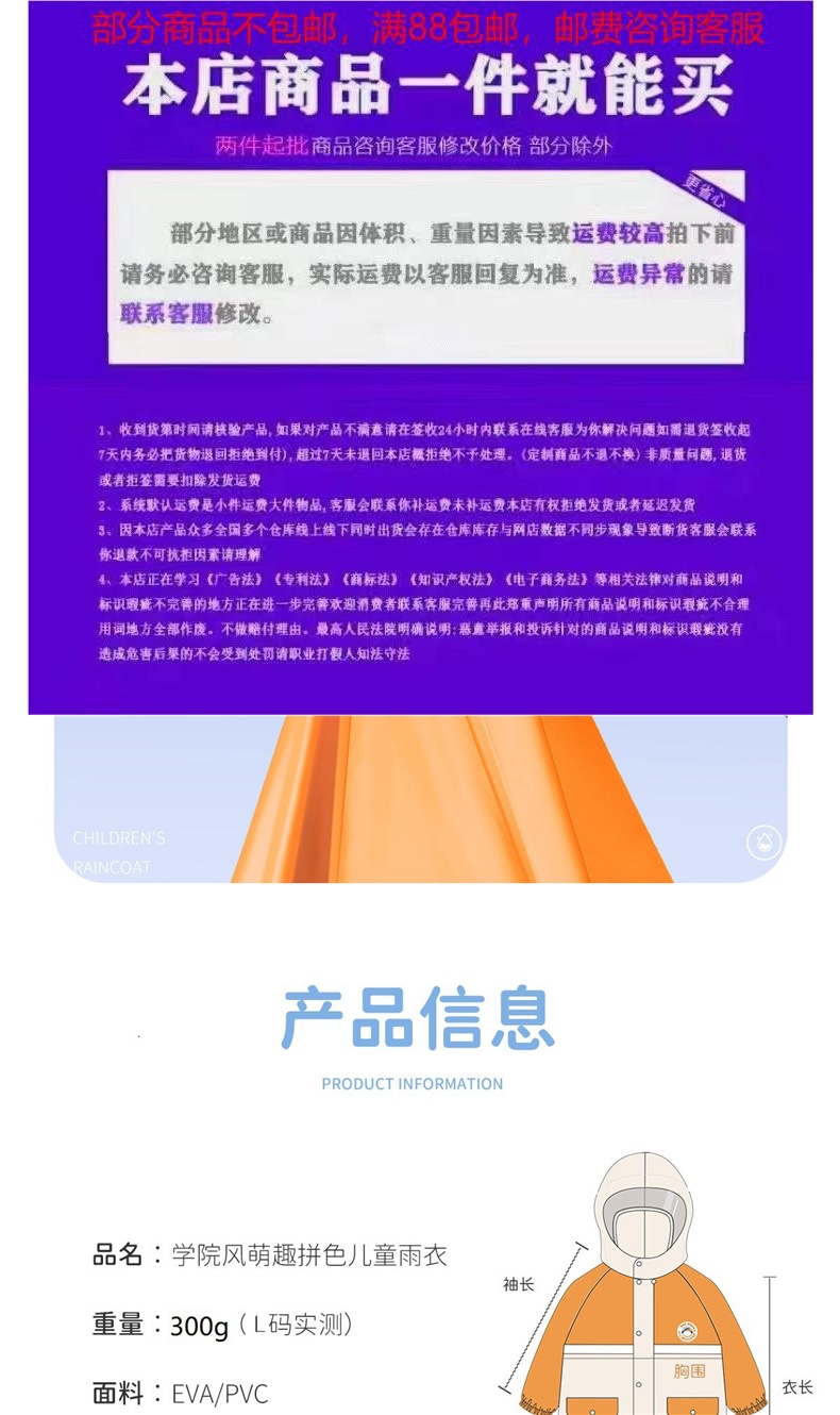 [직배송] 어린이 비옷 도매 대학 스타일 유치원 큰 어린이와 작은 어린이 학교 가방 전체 몸스토어 가기