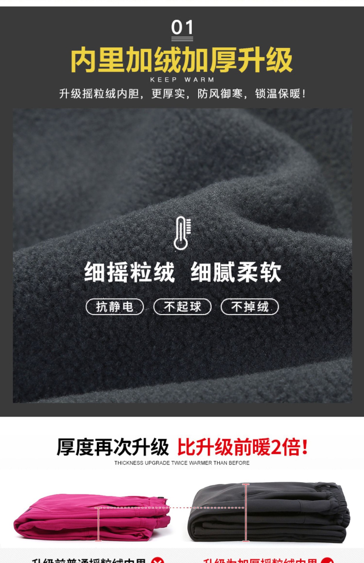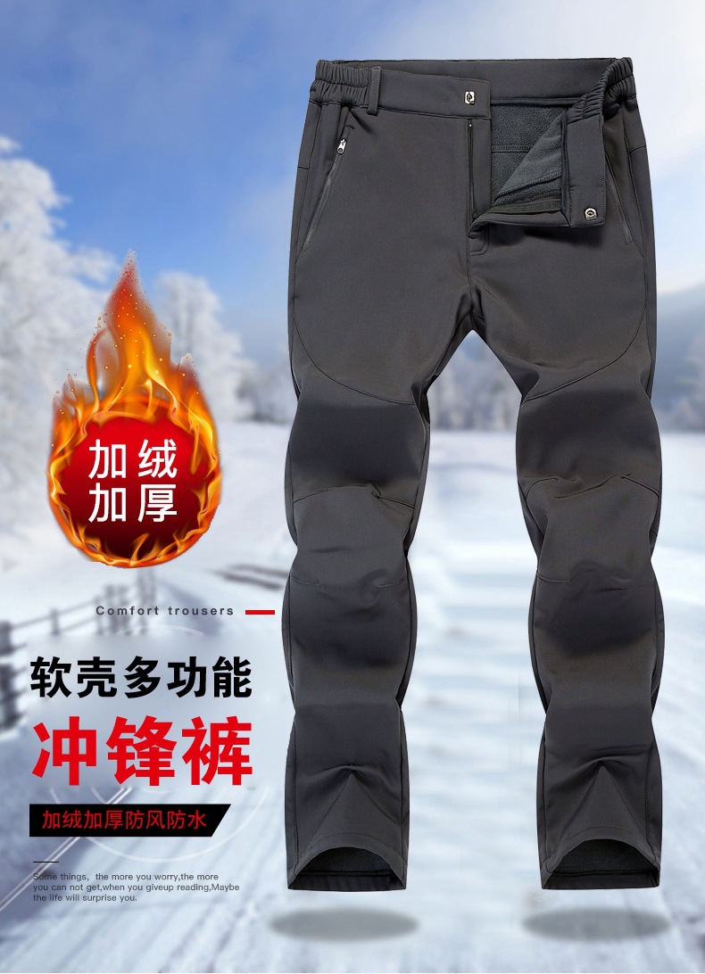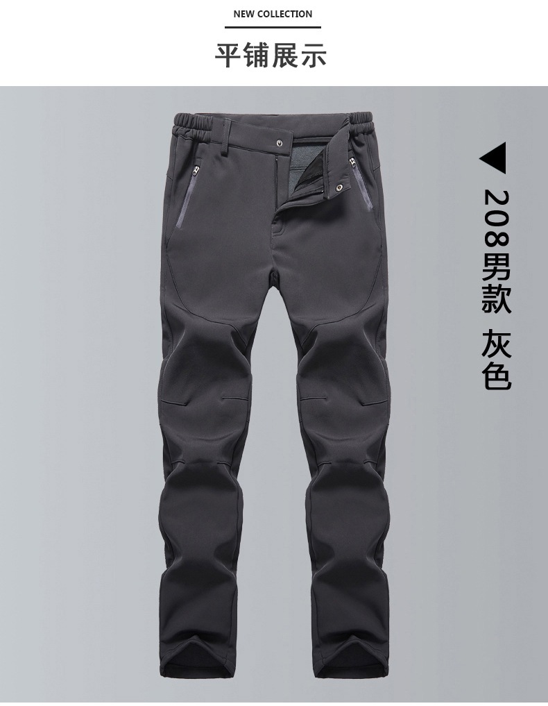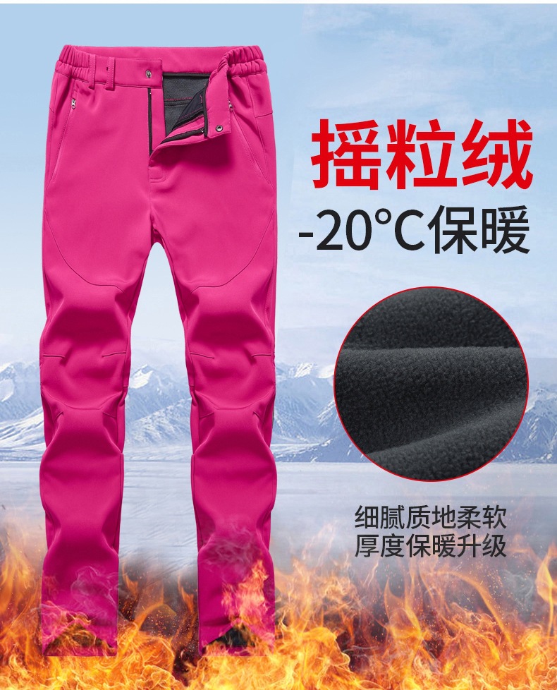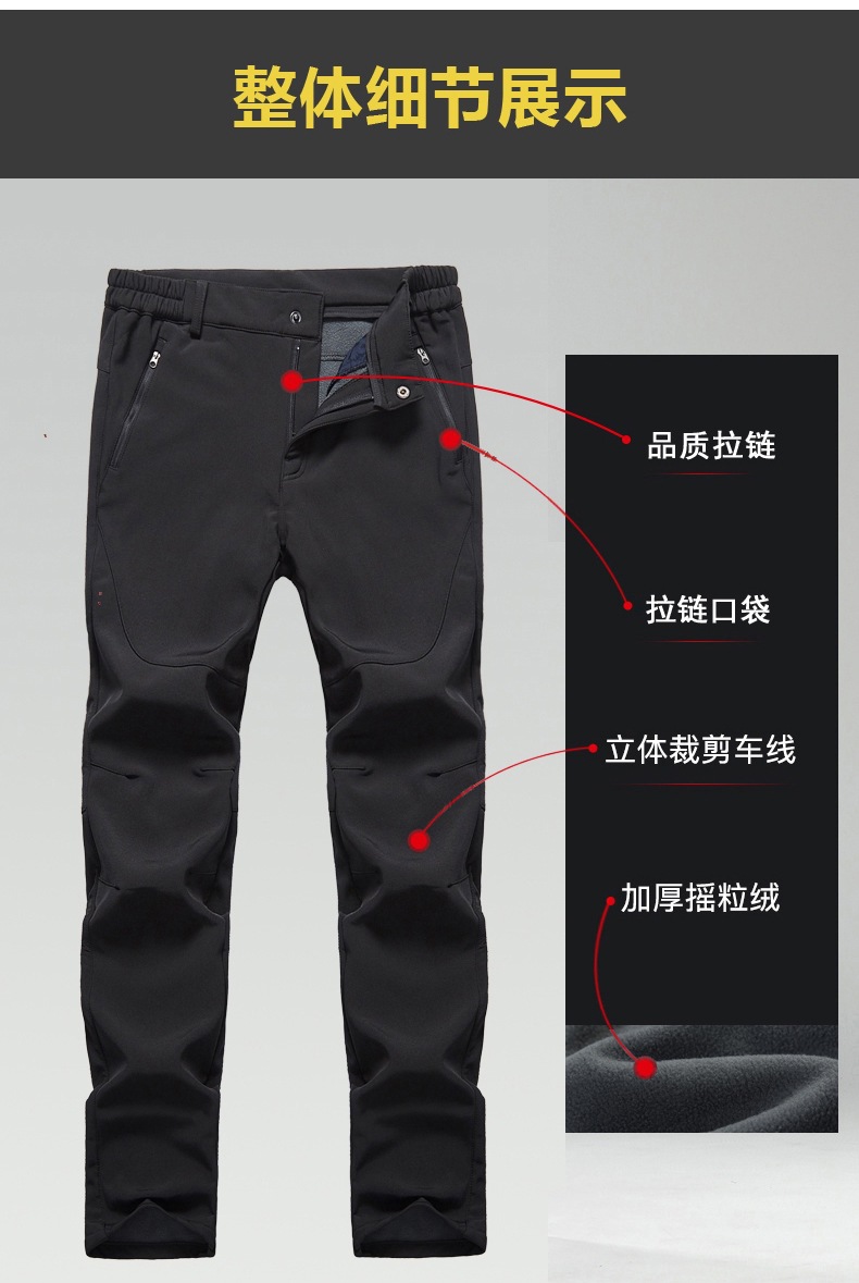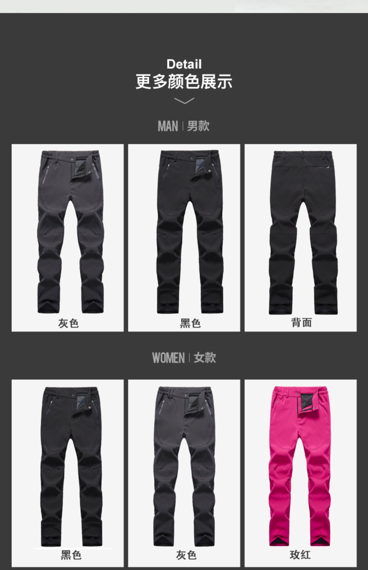 남성용 및 여성용 방수 및 방풍 아웃도어 스키 및 등산 겨울 두꺼운 벨벳 따뜻하고 방수 및 통기성이 뛰어난 소프트 쉘 바지