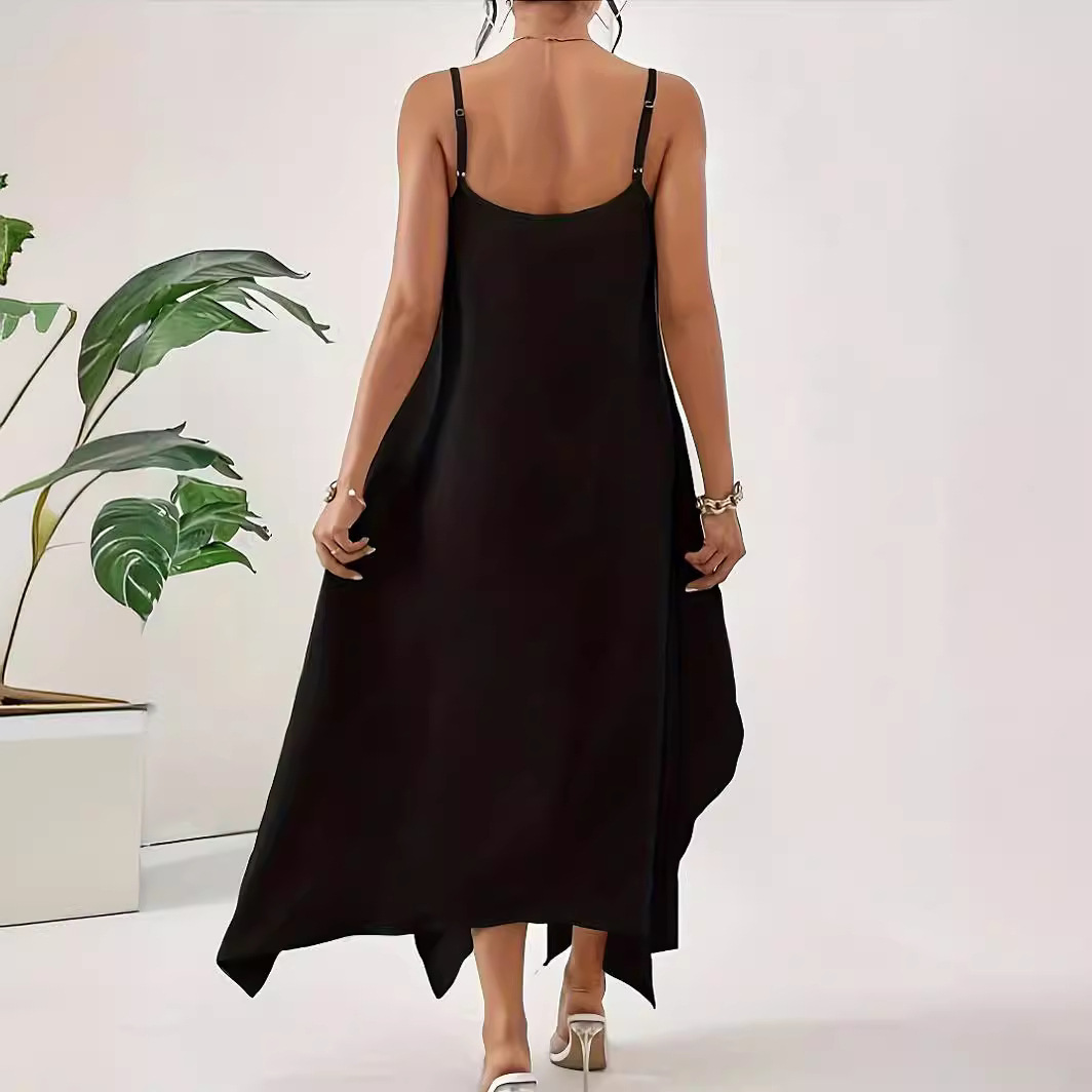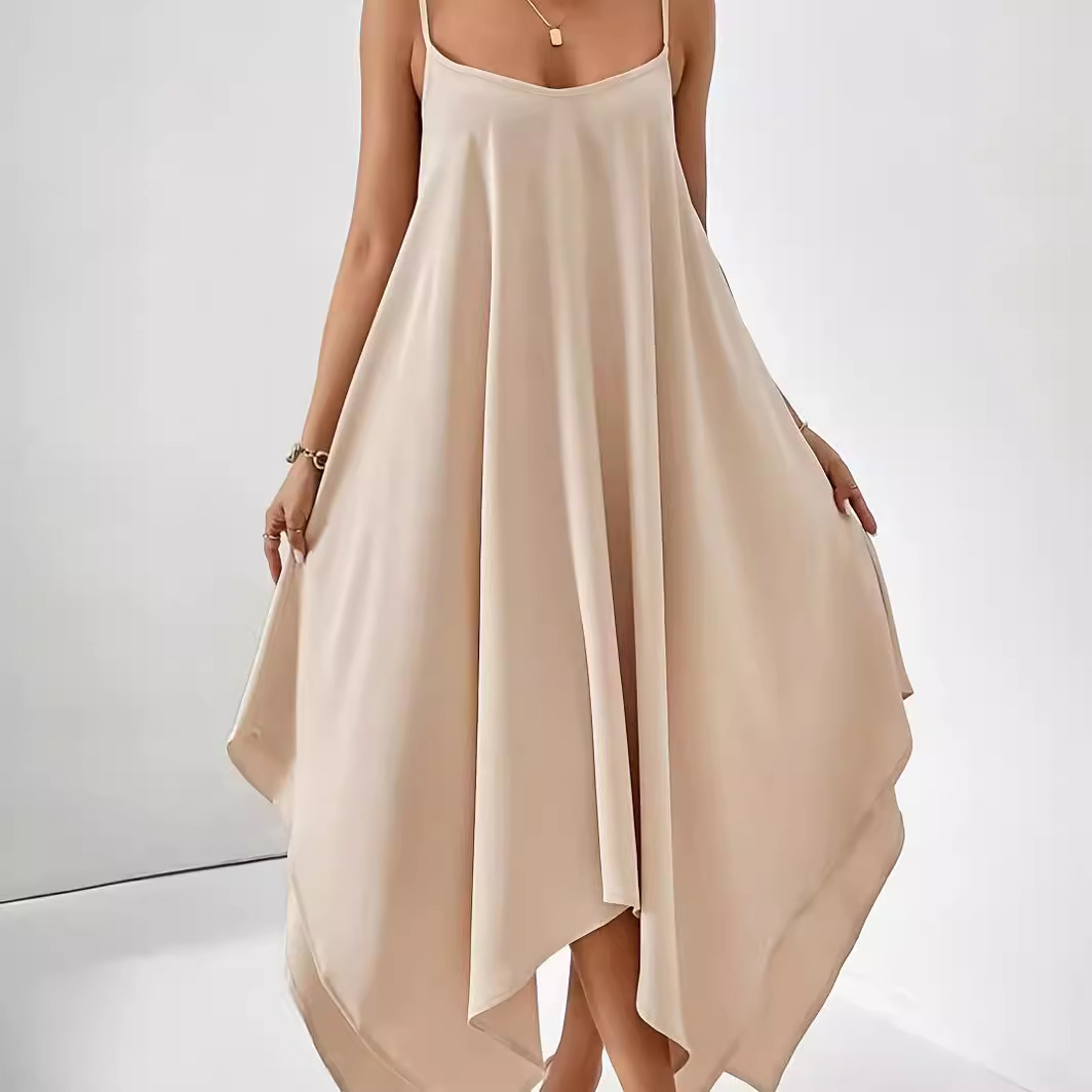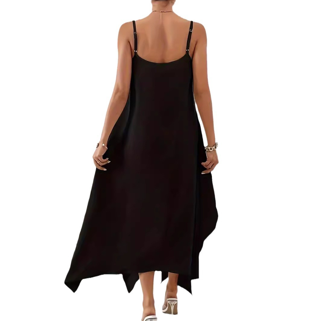 유럽과 미국의 국경 간 여성 여름 새로운 패션 솔리드 컬러 슬링 백리스 불규칙한 민소매 루즈 드레스 롱 스커트