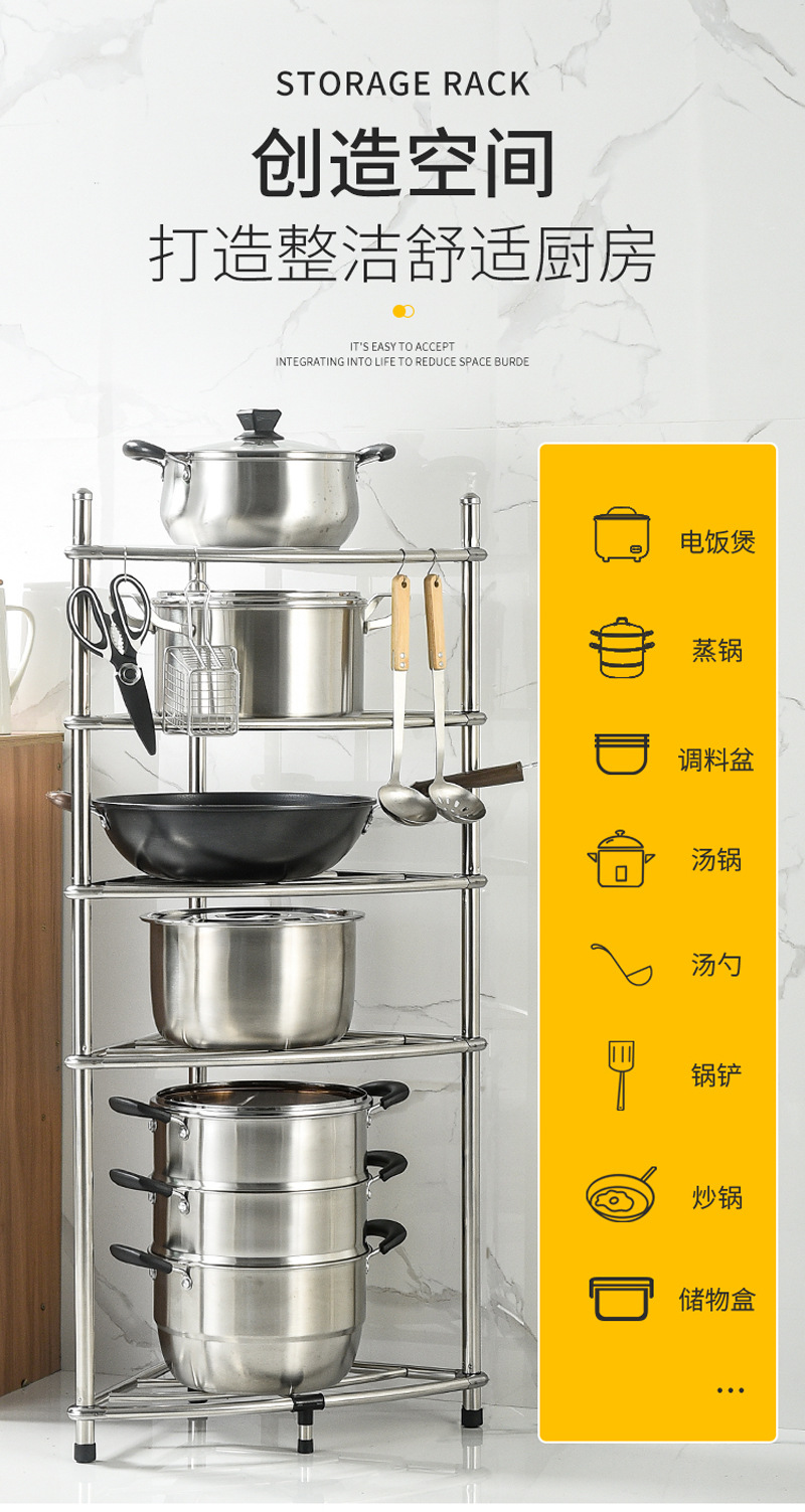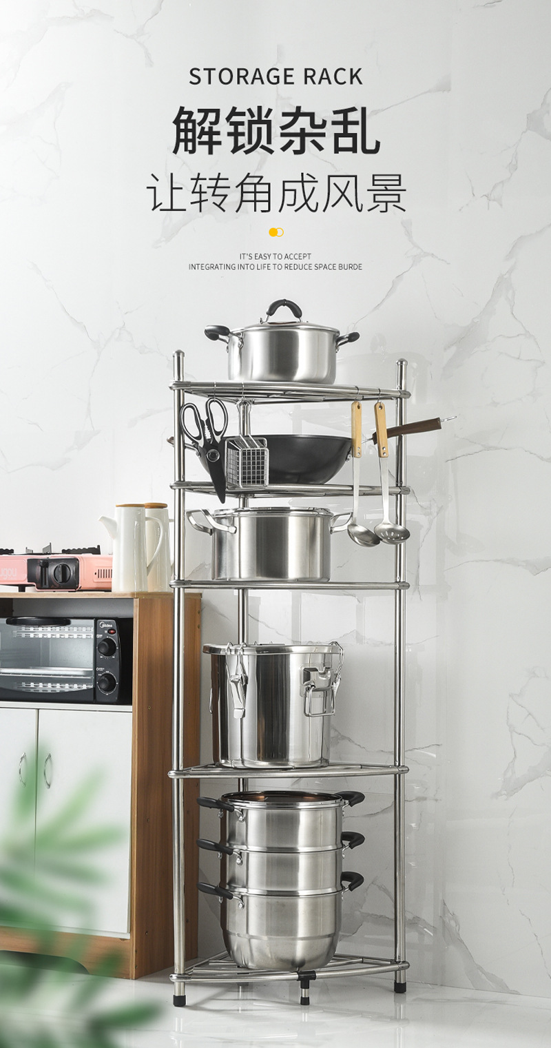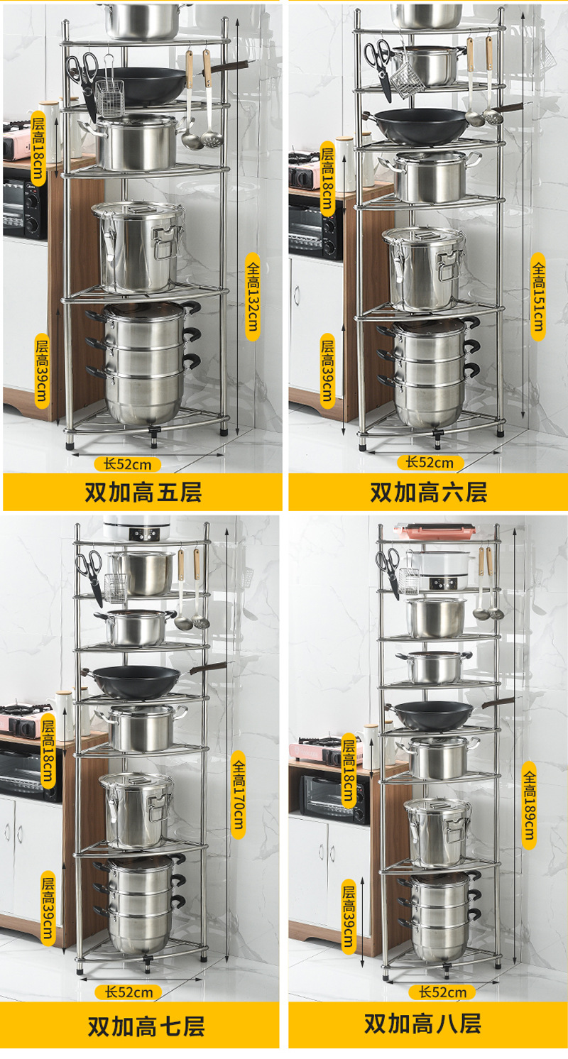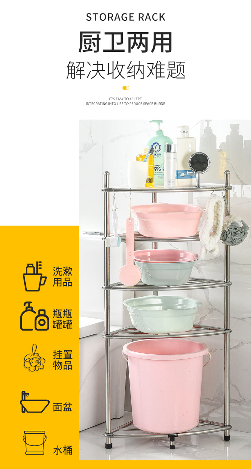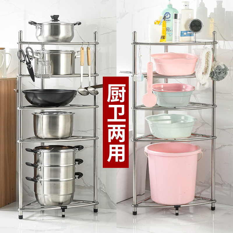 주방 및 욕실 보관 랙 바닥에서 천장까지 다층 스테인레스 스틸 삼각형 보관 랙 냄비 랙 욕실 가정용 세면대 랙 제조업체 직접 공급스토어 가기