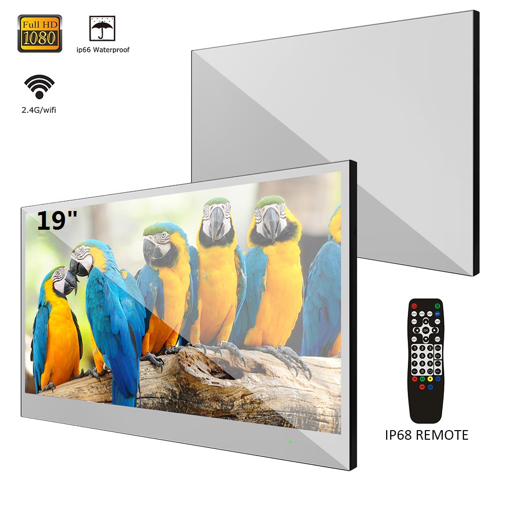 打开时显示节目,在关闭时显示镜子。IP66防水级别,豪华安装在浴室、酒店和厨房,内置强大的2个振动扬声器和IP68防水遥控器,内置500以上APP节目,正版谷歌版权,带Android 11.0系统的智能数字系统,可以访问各种内置APP的频道(内置:NETFLIX,YouTube,Prime video,HBOmax,Disney+等上百种多媒体APP.让您生活变得精彩无限。)