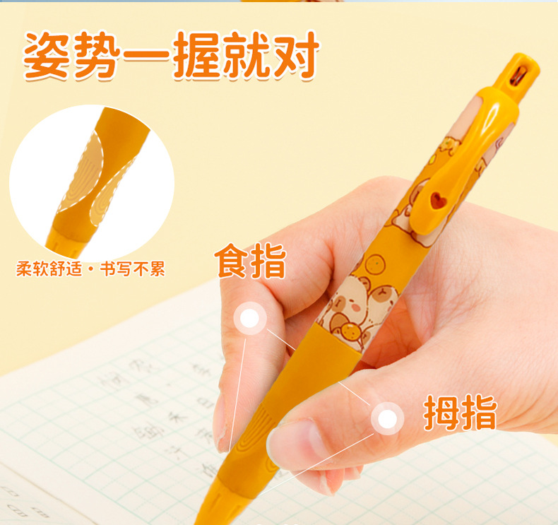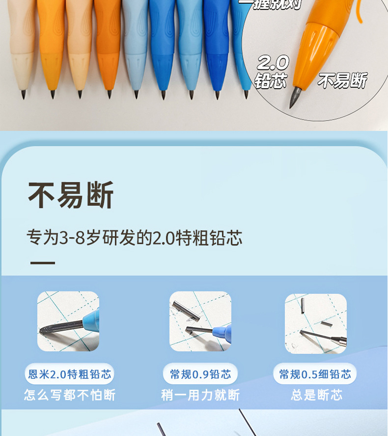 초등학생이 캘리그라피를 연습할 수 있는 자동연필 2.0 연속심, 그립 자세를 교정할 수 있는 연필깎이가 내장된 특수연필