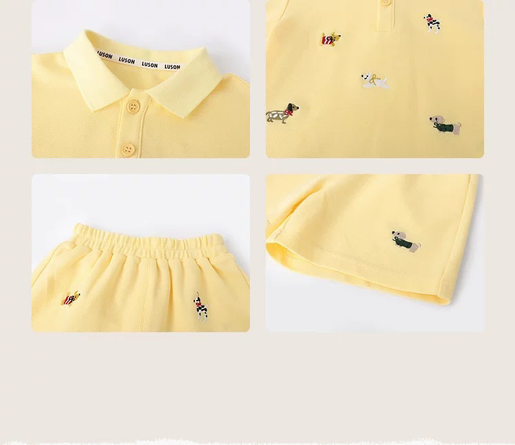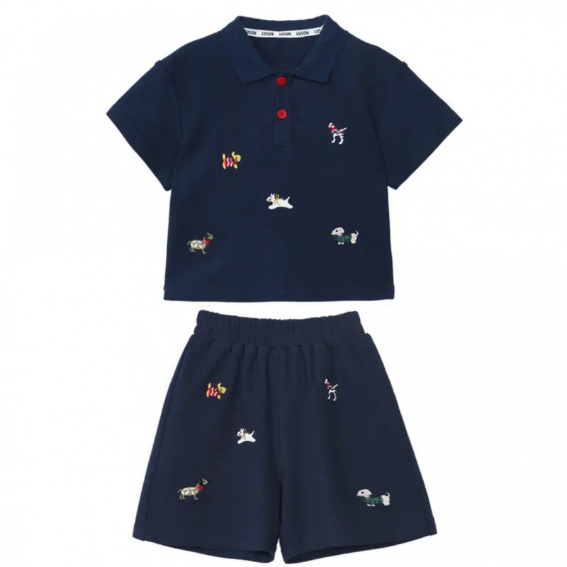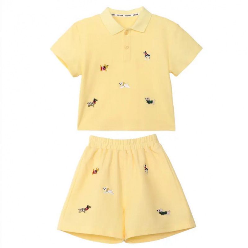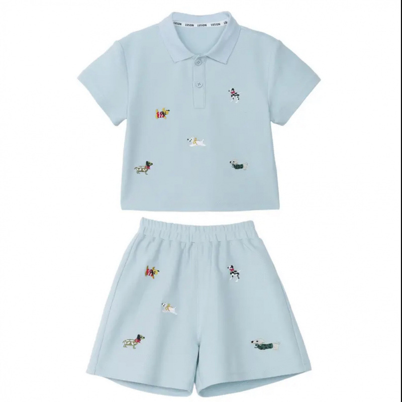 아기 소년 여름 폴로 정장 반팔 티셔츠 아동 의류 아기 얇은 수 놓은 만화 반바지 투피스 세트