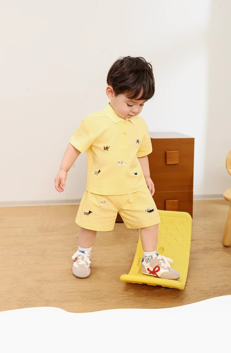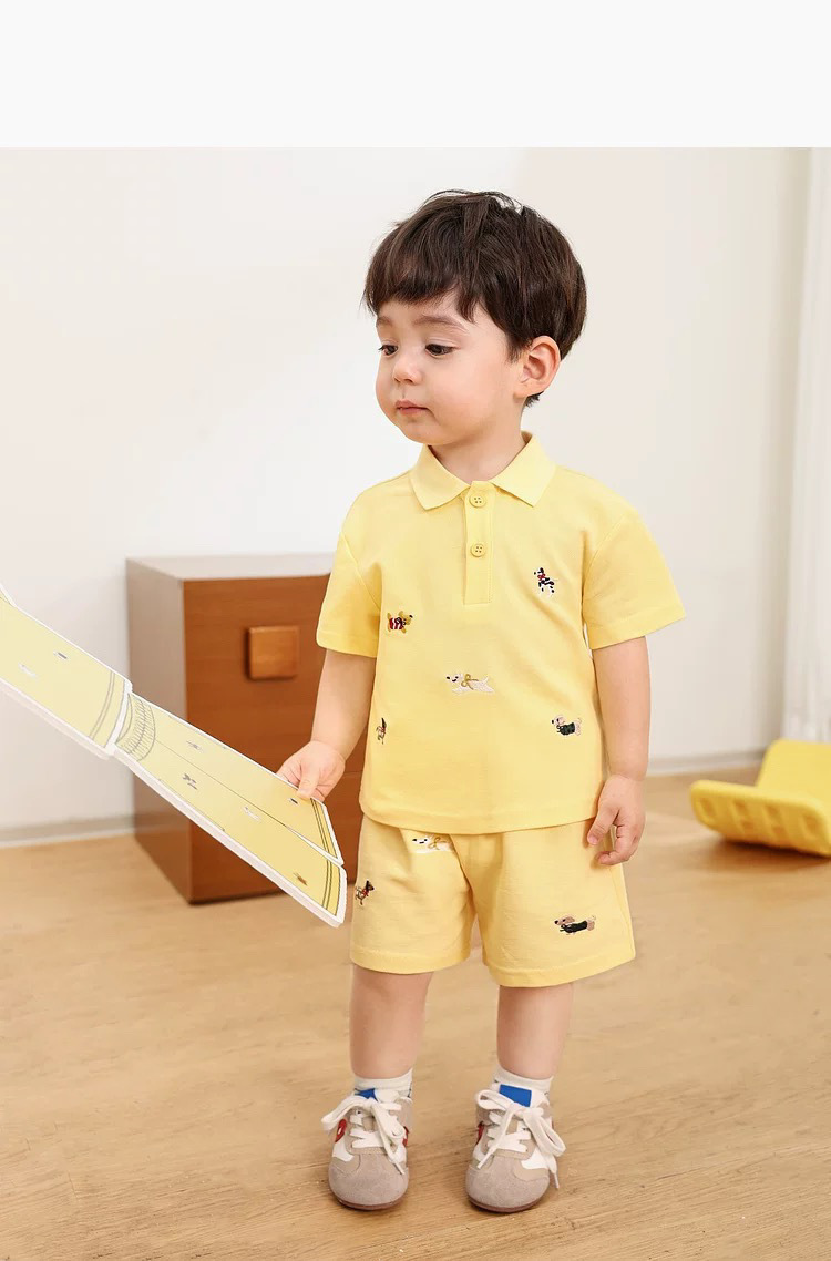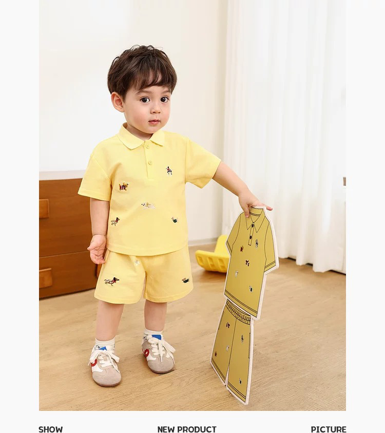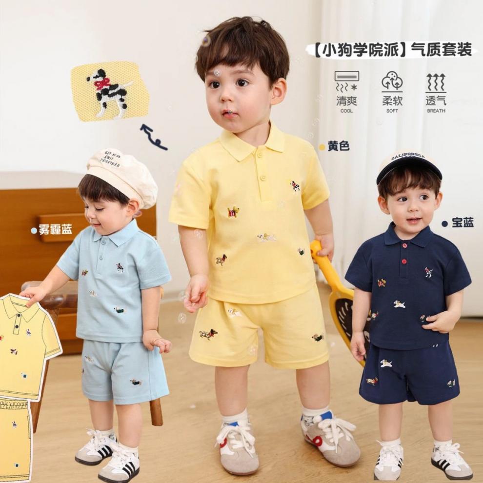 아기 소년 여름 폴로 정장 반팔 티셔츠 아동 의류 아기 얇은 수 놓은 만화 반바지 투피스 세트스토어 가기