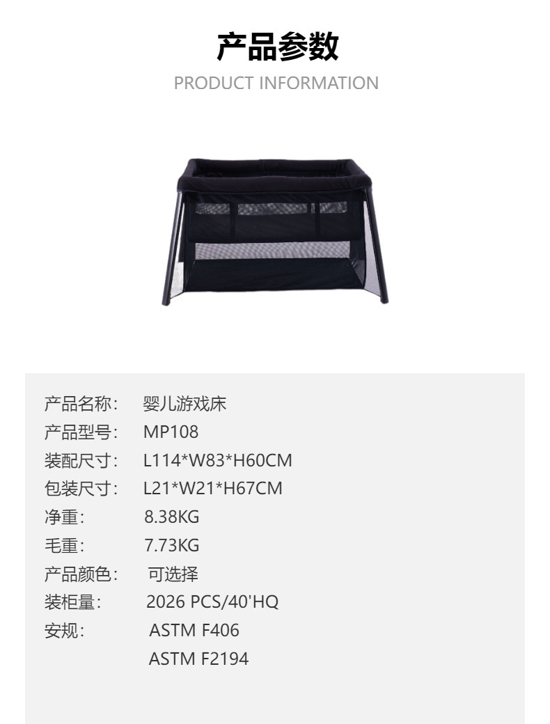 MUE 접이식 어린이 게임 침대 MP108 실내 및 실외 어린이 인형 집 휴대용 접이식 게임 침대