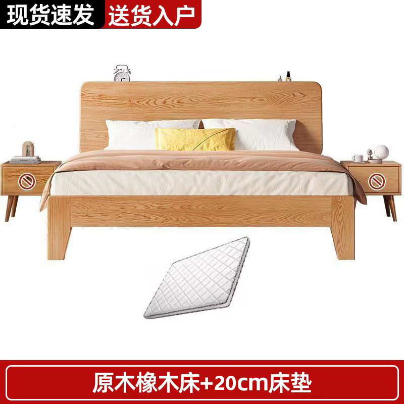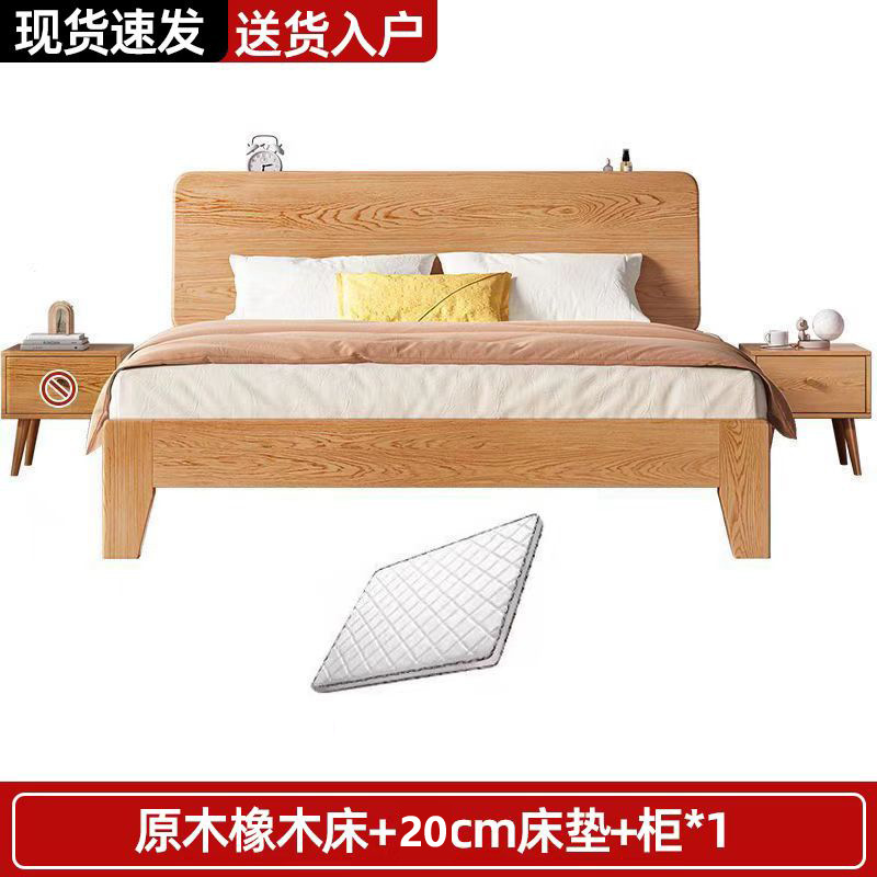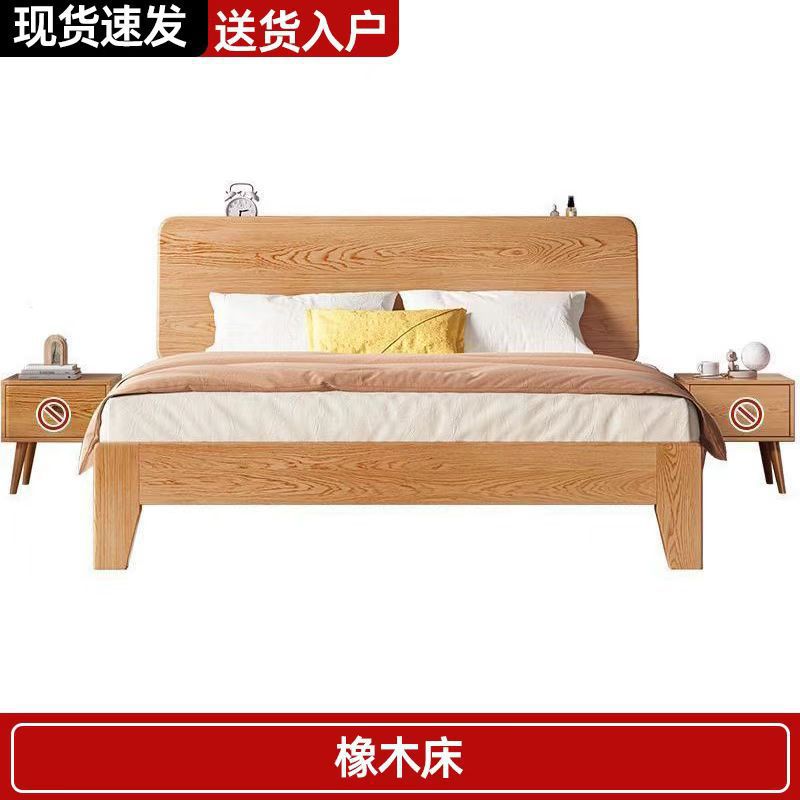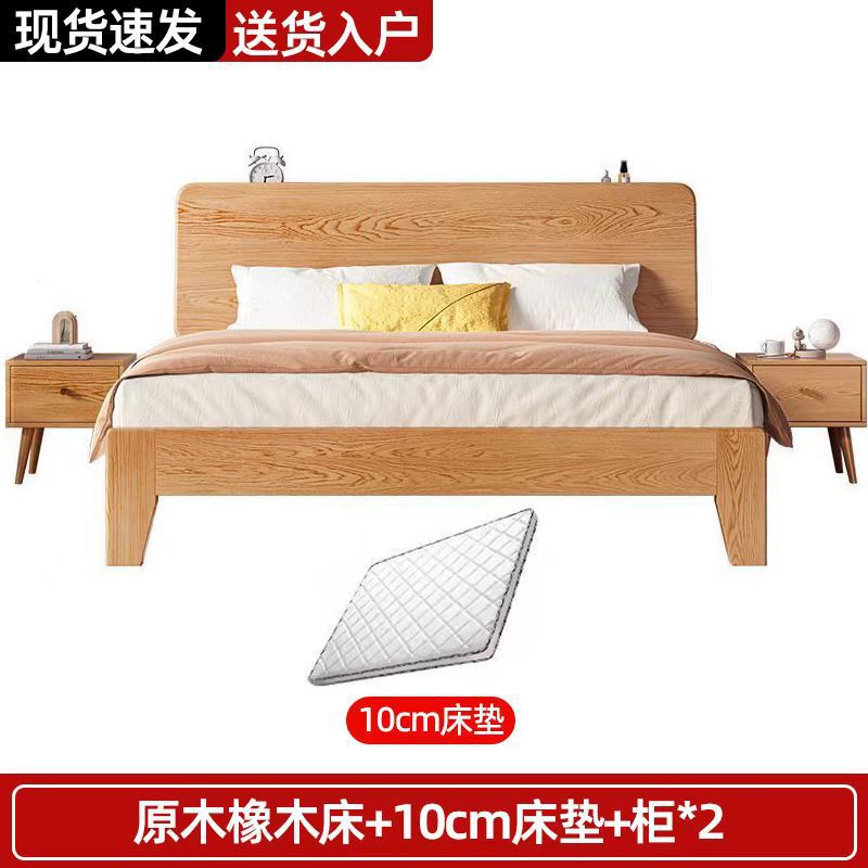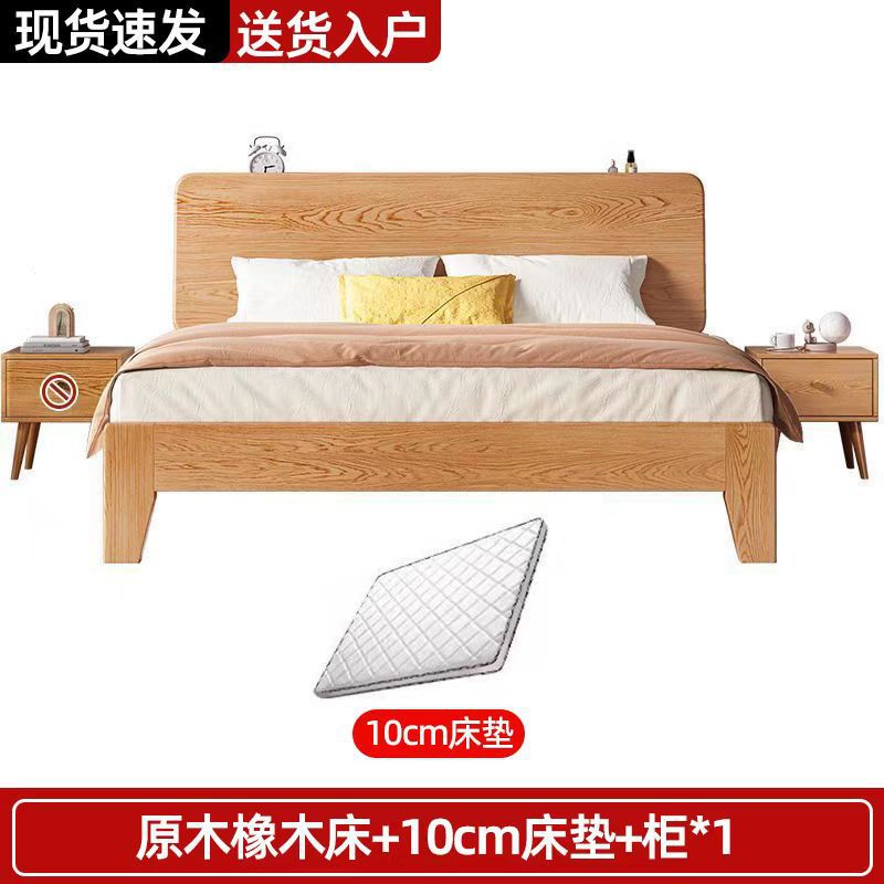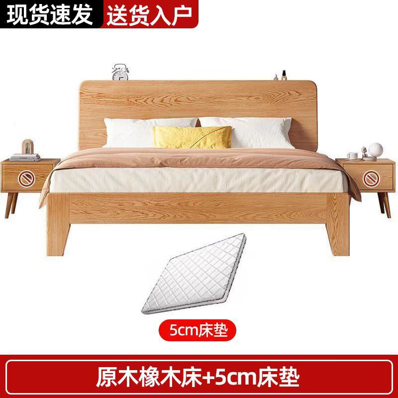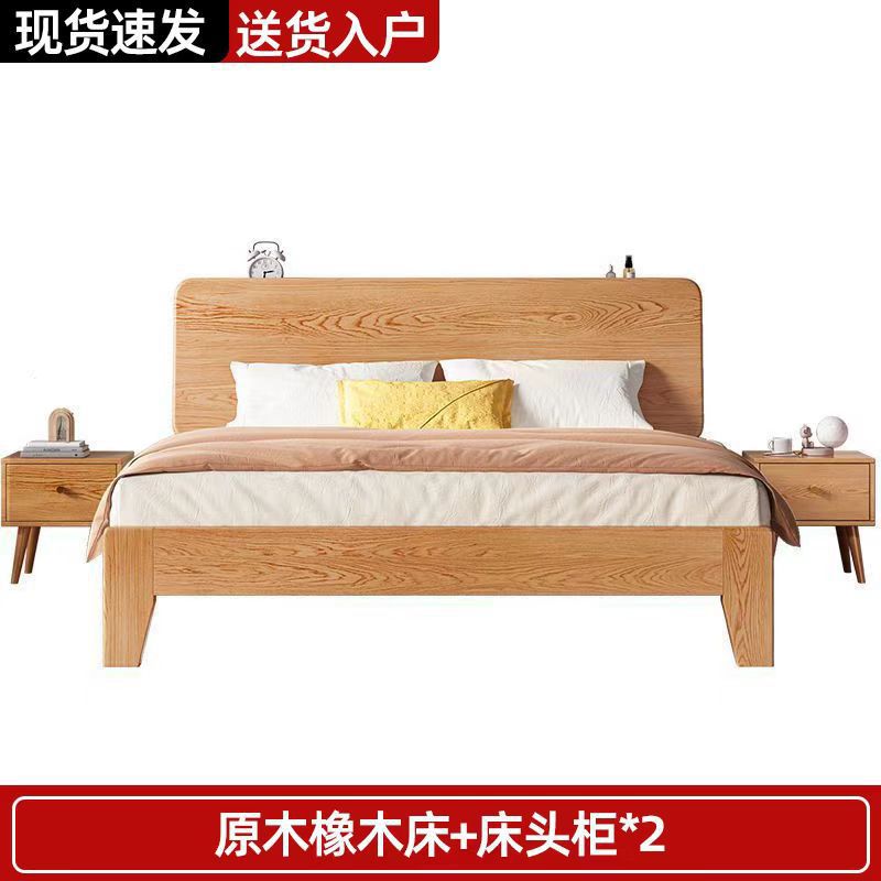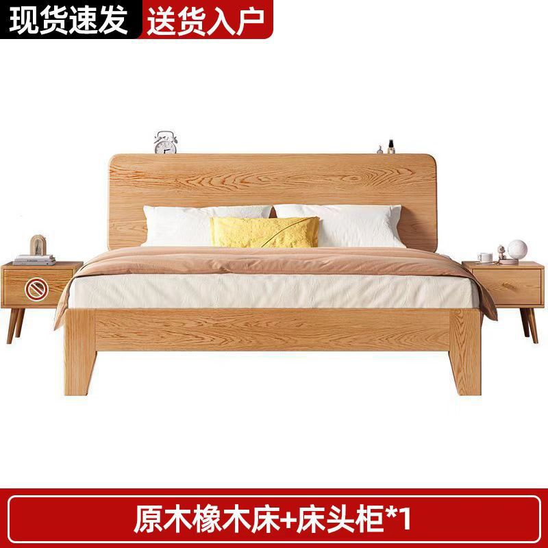 북유럽 고무 나무 침대 더블 단단한 나무 침대 1.5m 작은 아파트 1.8m 홈 마스터 침실 1.2m 싱글 침대 프레임스토어 가기
