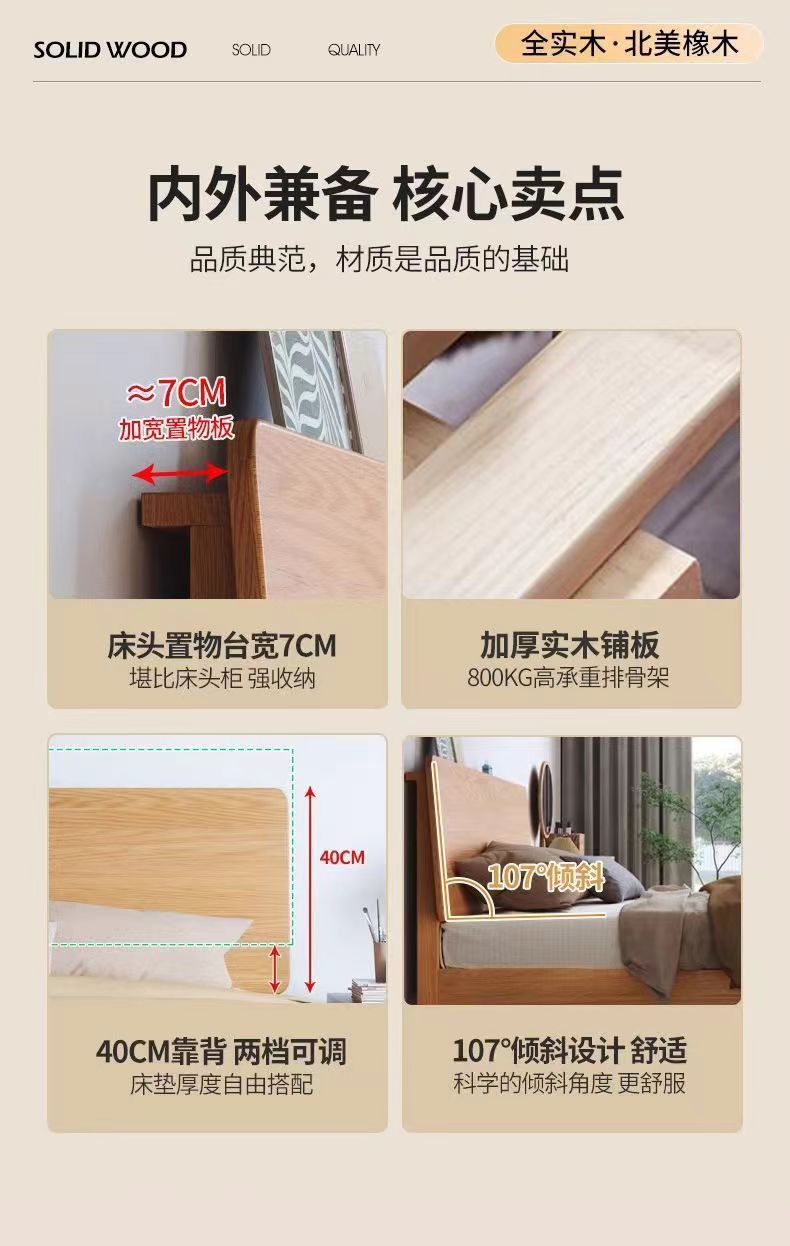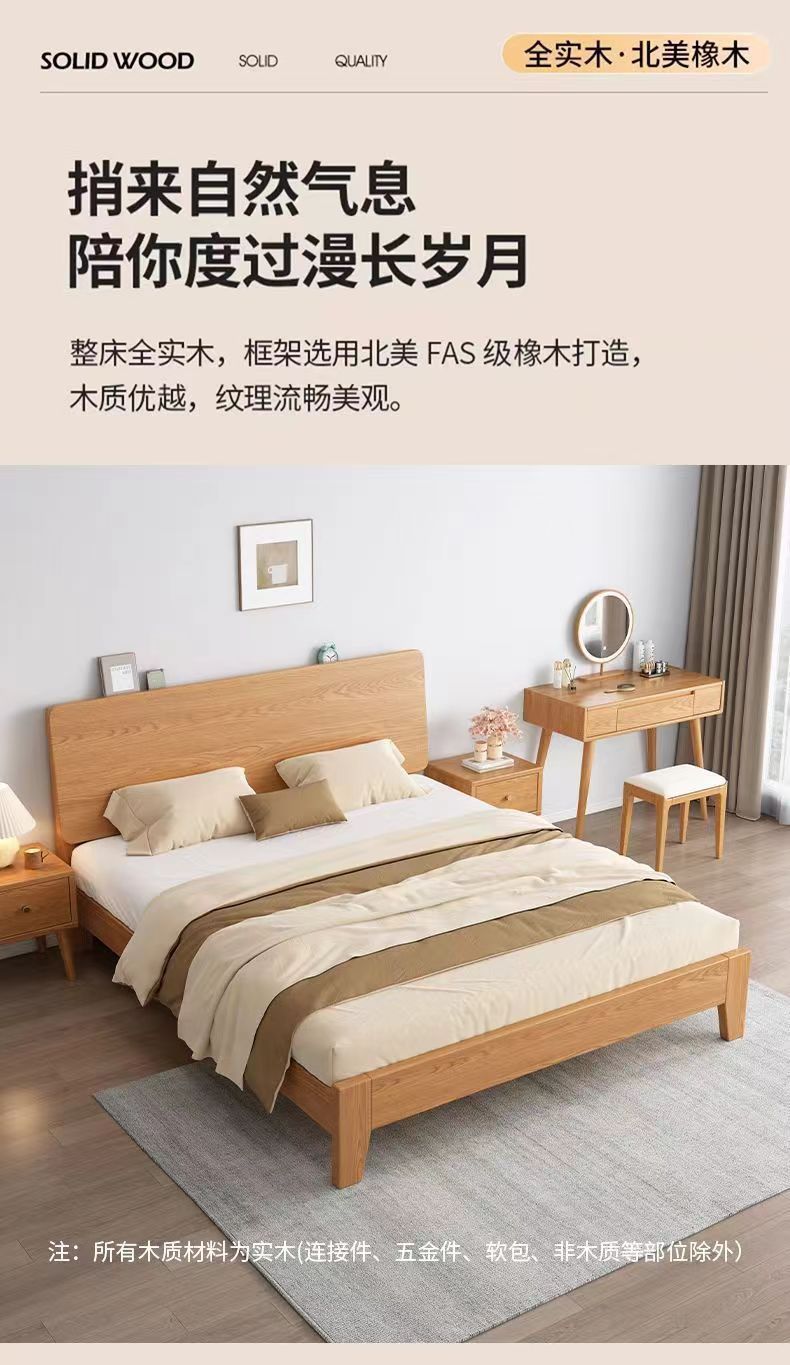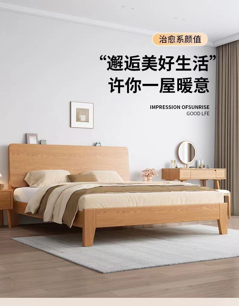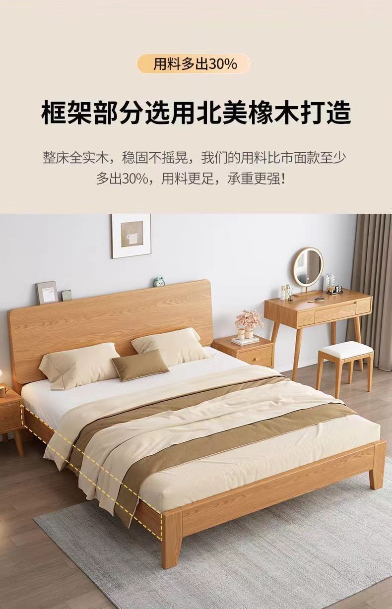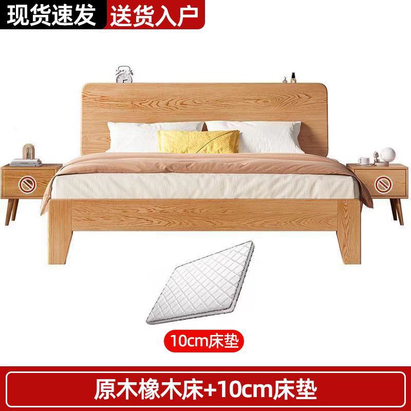 북유럽 고무 나무 침대 더블 단단한 나무 침대 1.5m 작은 아파트 1.8m 홈 마스터 침실 1.2m 싱글 침대 프레임스토어 가기